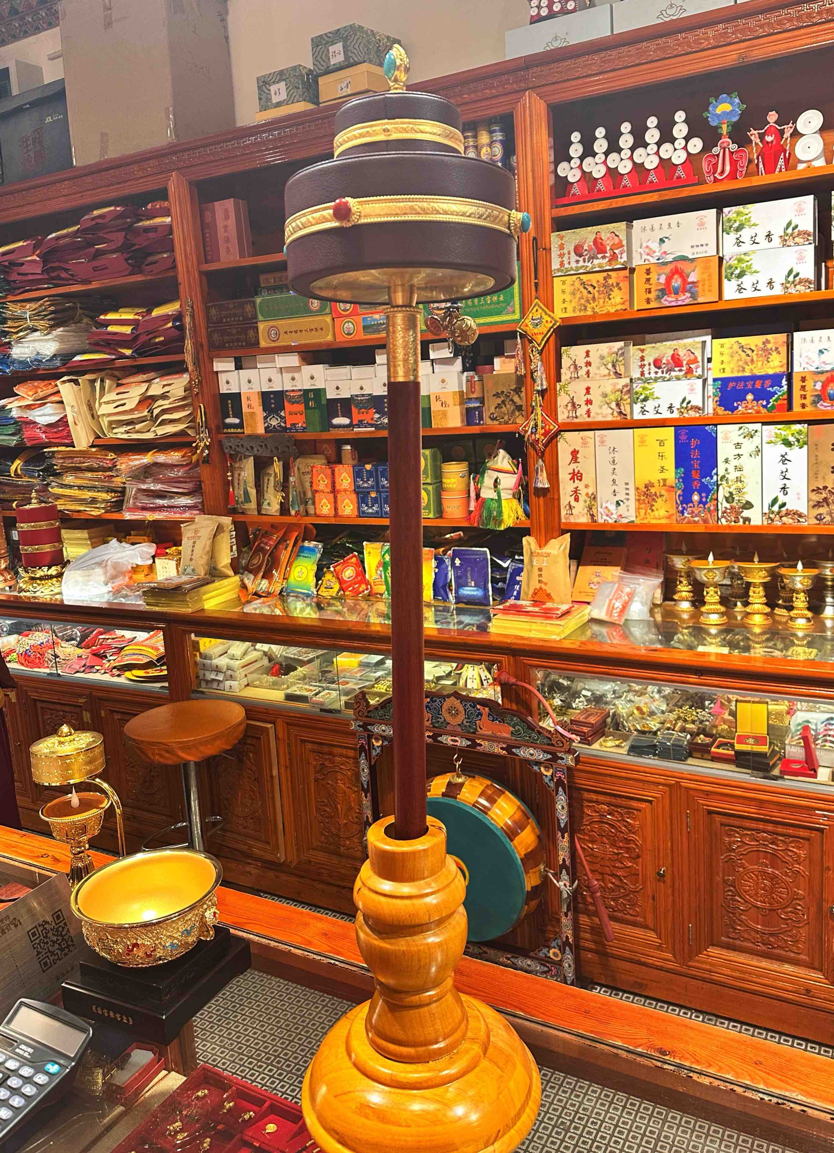 藏式特大号手摇转经筒底座财神幡座实木座法器密宗供佛摆件