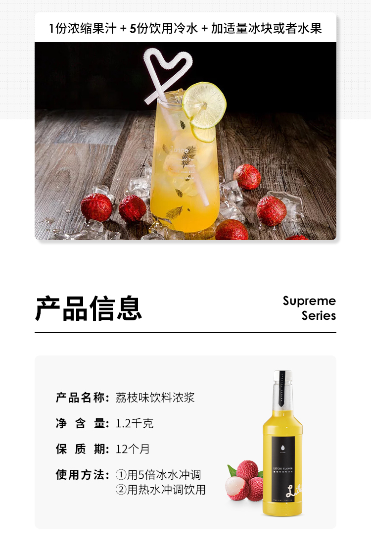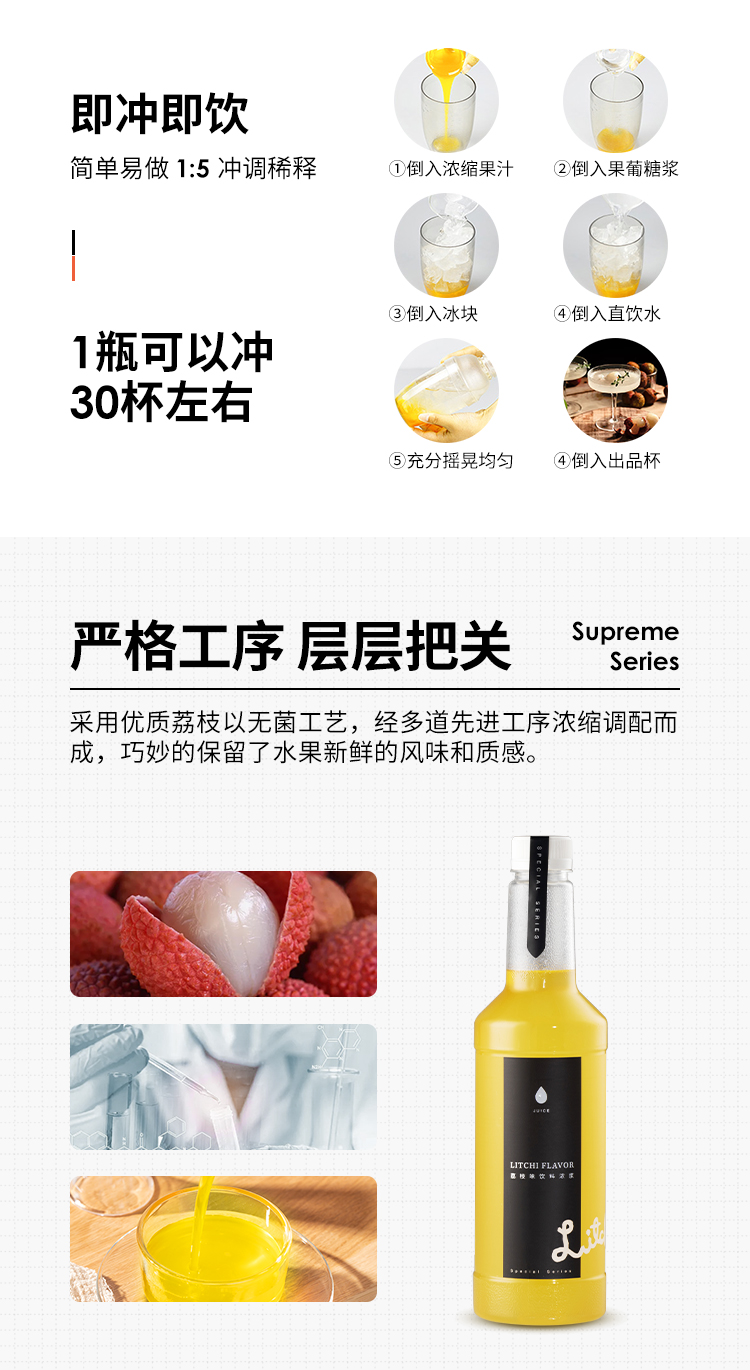 【经销商专区】【爵世果汁系列】荔枝味饮料浓浆1200克/瓶*6瓶/箱 天然水果糖浆荔枝汁