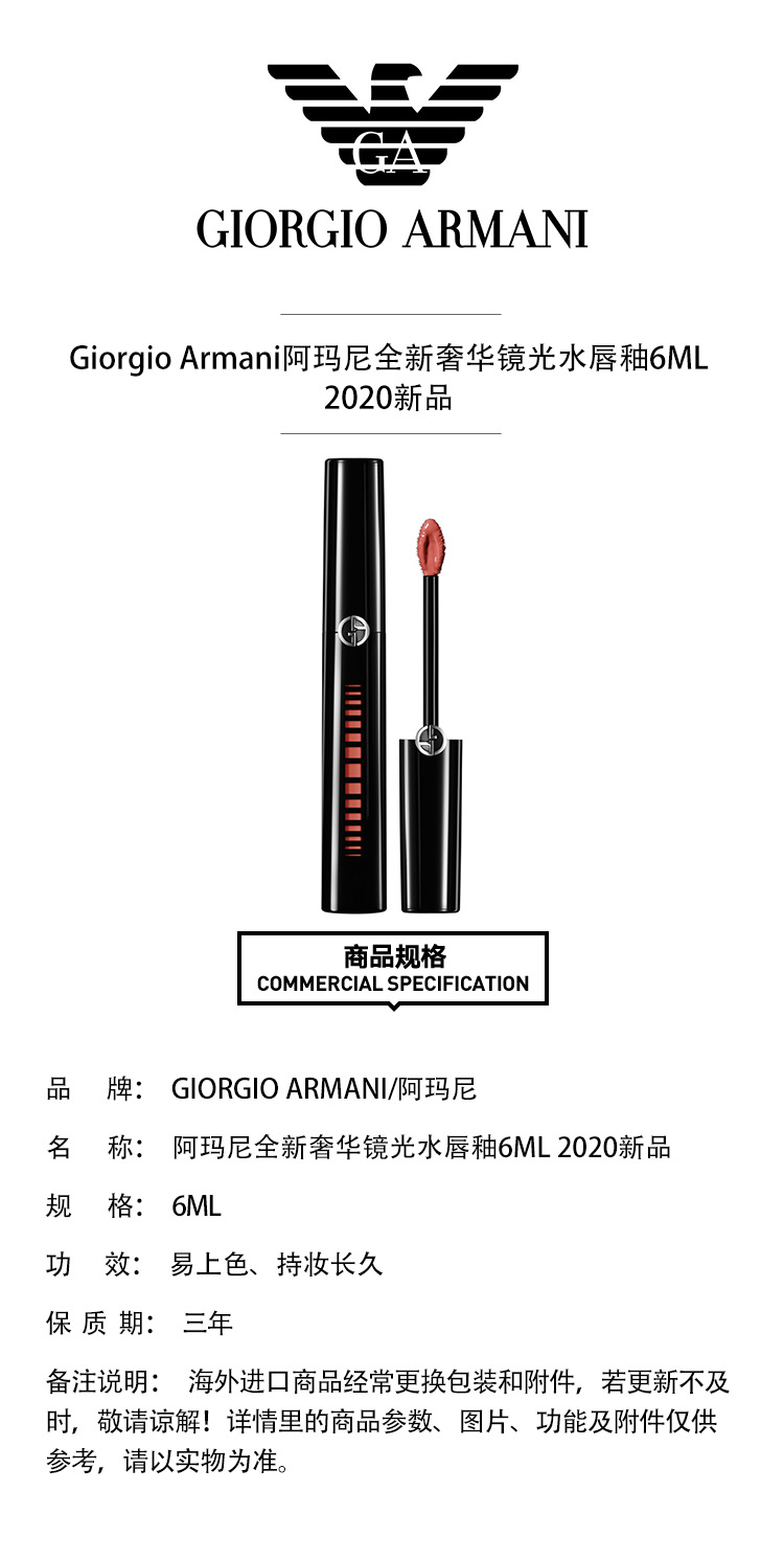 Giorgio Armani/乔治阿玛尼 全新奢华镜光水唇釉6ML 2020新品