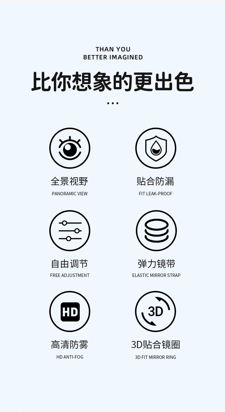 【大框游泳眼镜 护目镜近视泳镜】成人防水防雾 高清游泳镜 360°一览无余 国庆出游