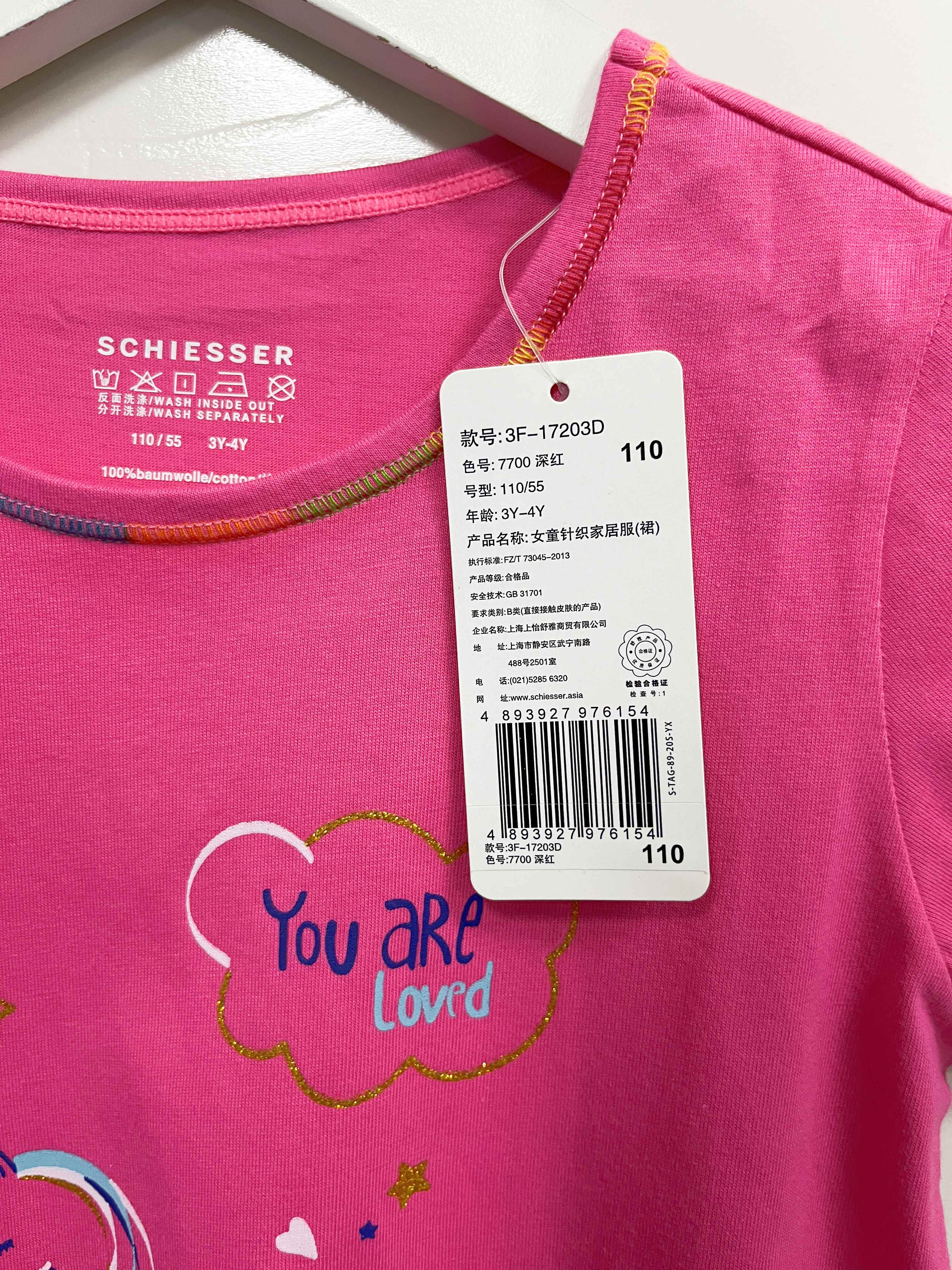 SCHIESSER德国舒雅女童纯棉可爱小独角兽A版小裙3F/17203D