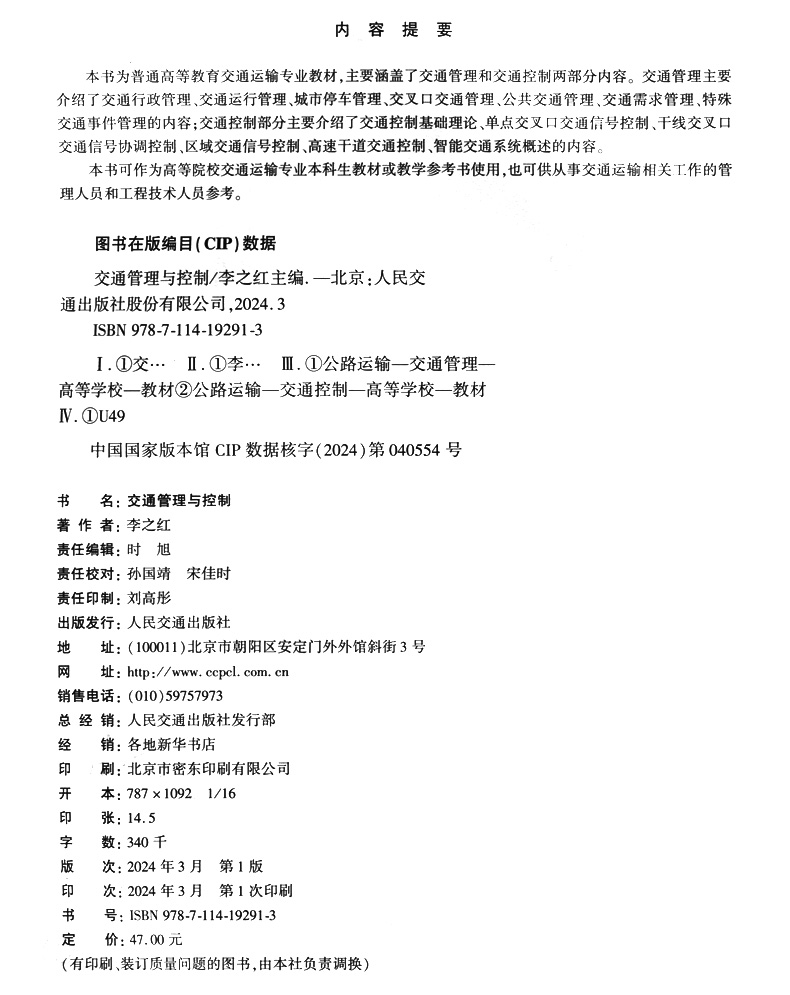 书名:交通管理与控制