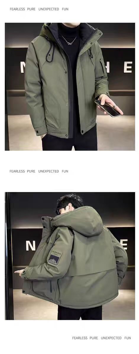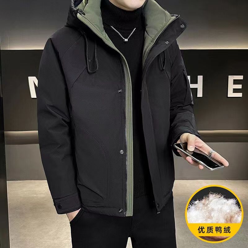 【优质鸭绒防风防水❗️亲肤舒适耐磨抗皱】男士防寒服冬季新款加厚保暖冬装美式休闲白鸭绒连帽外套男。jb