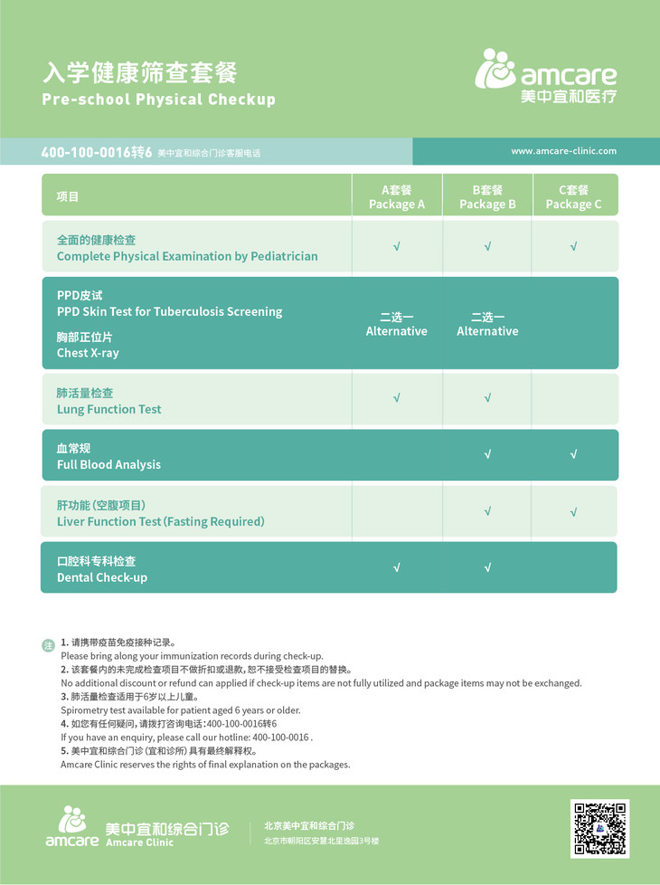 入学入园健康筛查C套餐(适用于北京美中宜和门诊部)