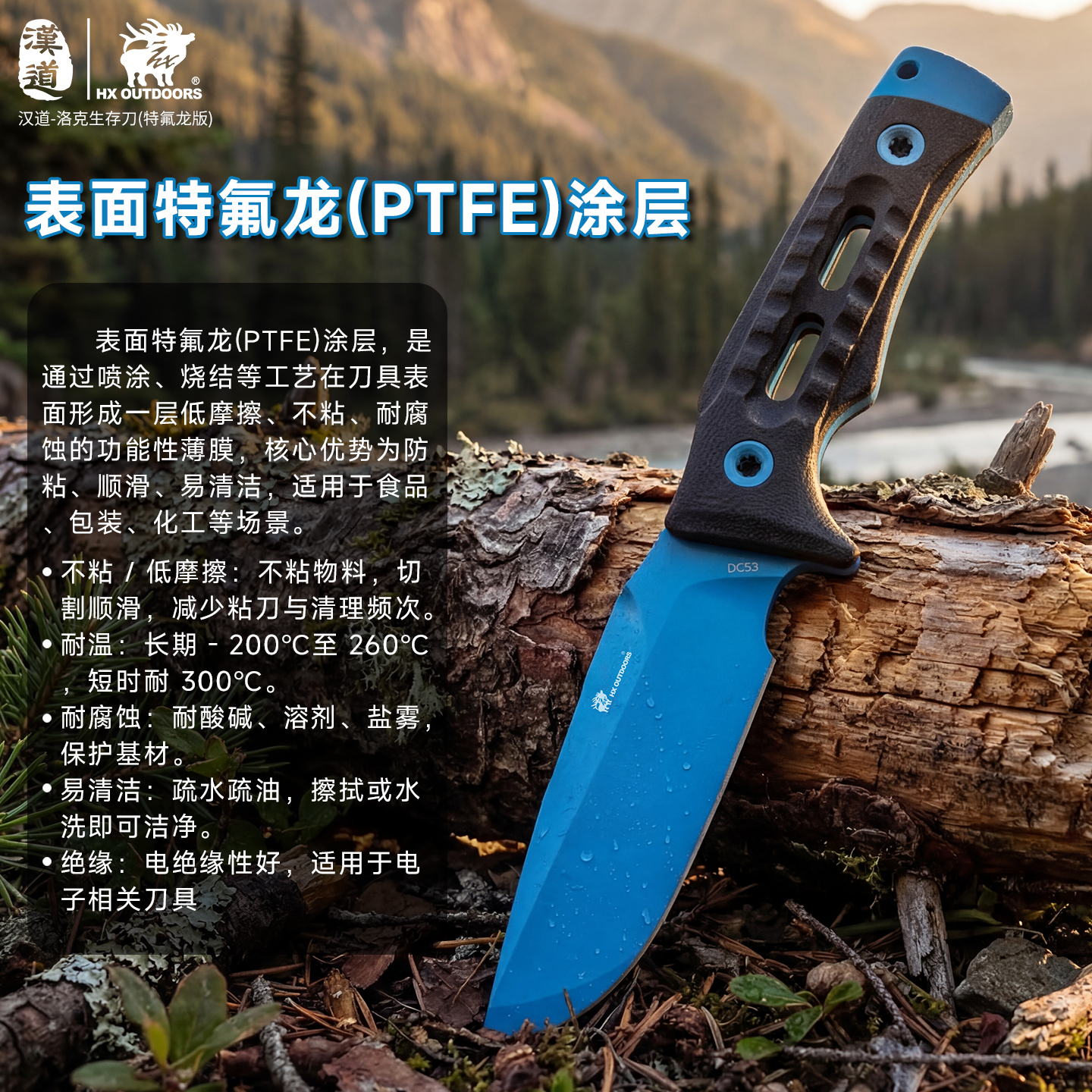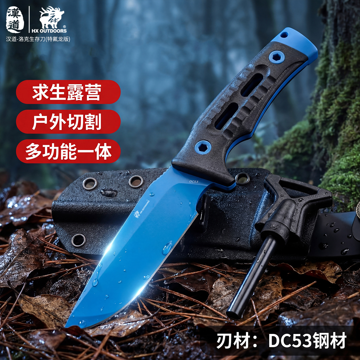 汉道洛克DC53蓝色魅影家用厨房户外露营手把肉锋利小刀生存刀