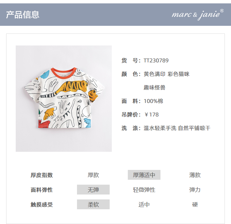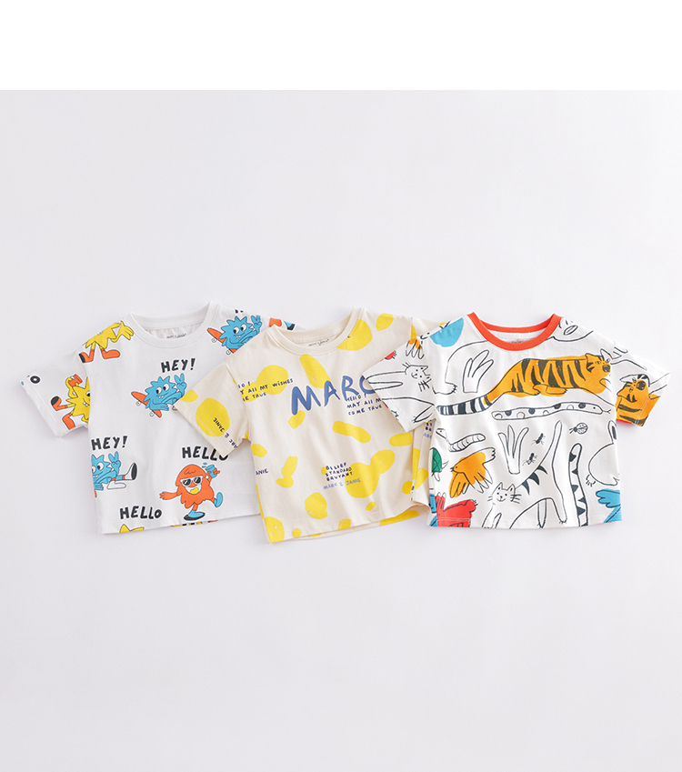马克珍妮夏装新款 男童趣味涂鸦全棉短袖T恤230789