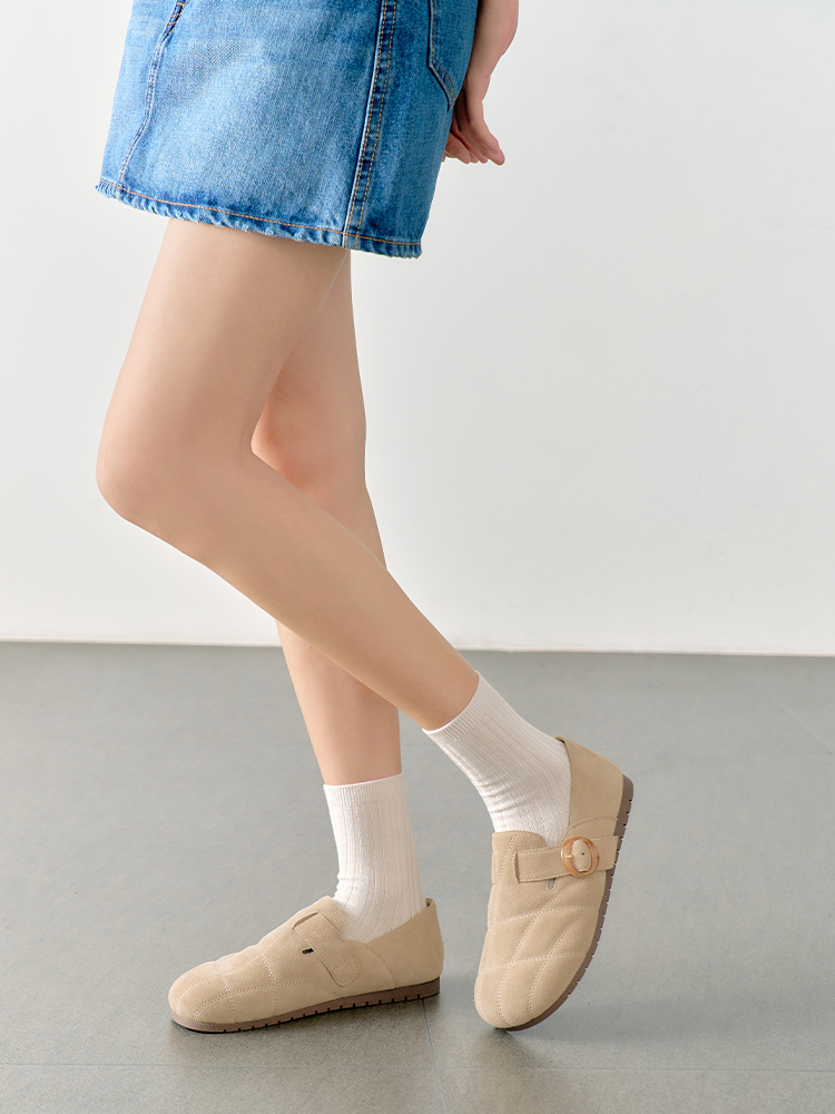 星期六26夏新款优雅绒面通勤粗跟穆勒拖SSE2111C9E