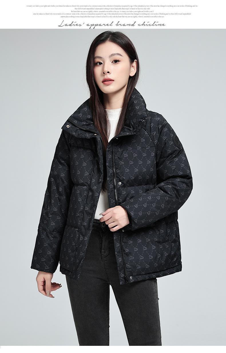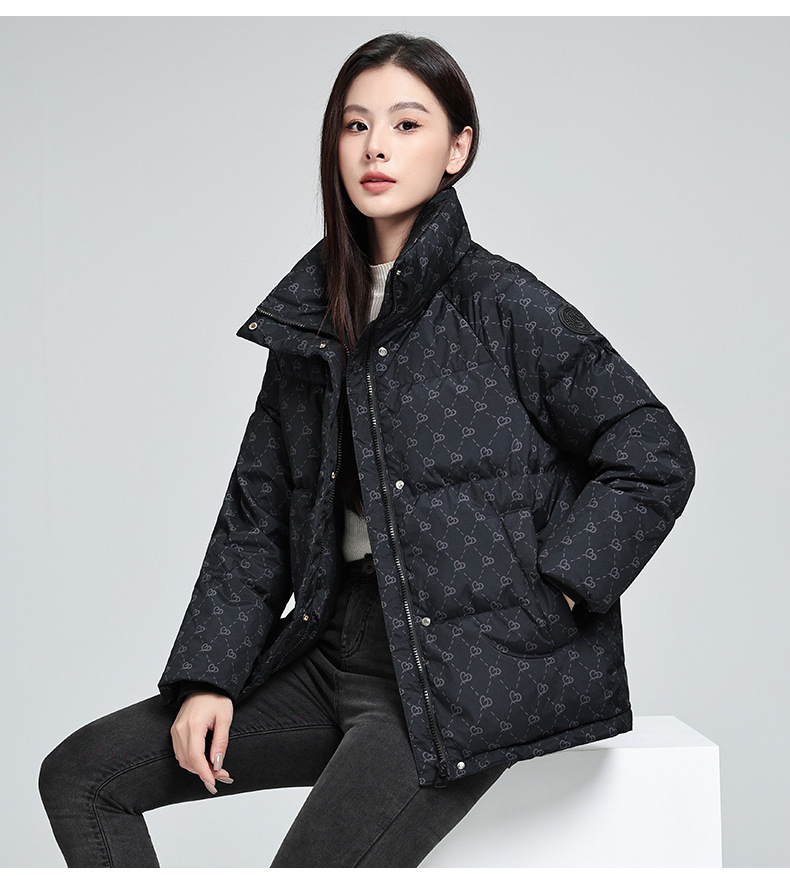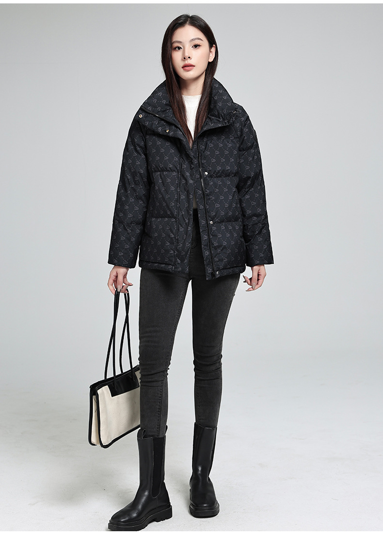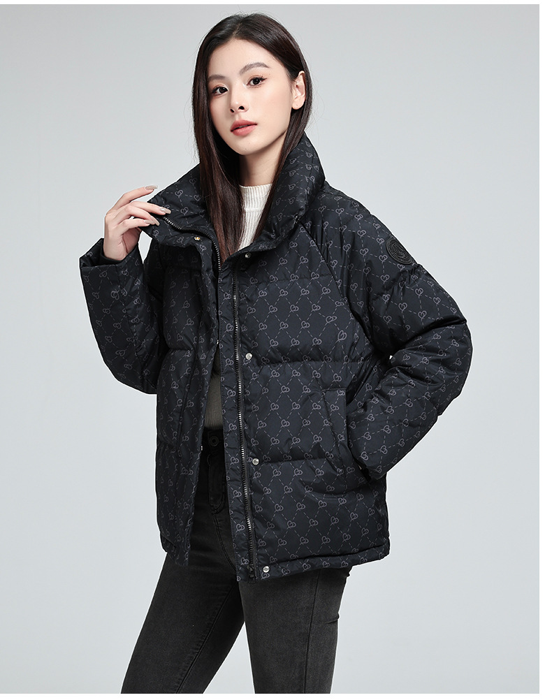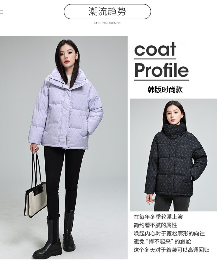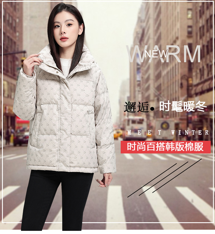 棉衣女短款 冬季新款韩版显瘦加厚印花立领百搭棉祅棉服女外套