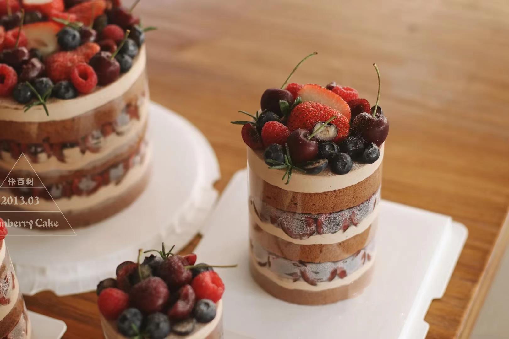 「食材」100%法国 / 新西兰动物奶油,巧克力蛋糕胚,法国纯可可脂巧克力,智利车厘子,樱桃酒,马蹄,红颜草莓,蓝莓,覆盆子,黑糖波波。