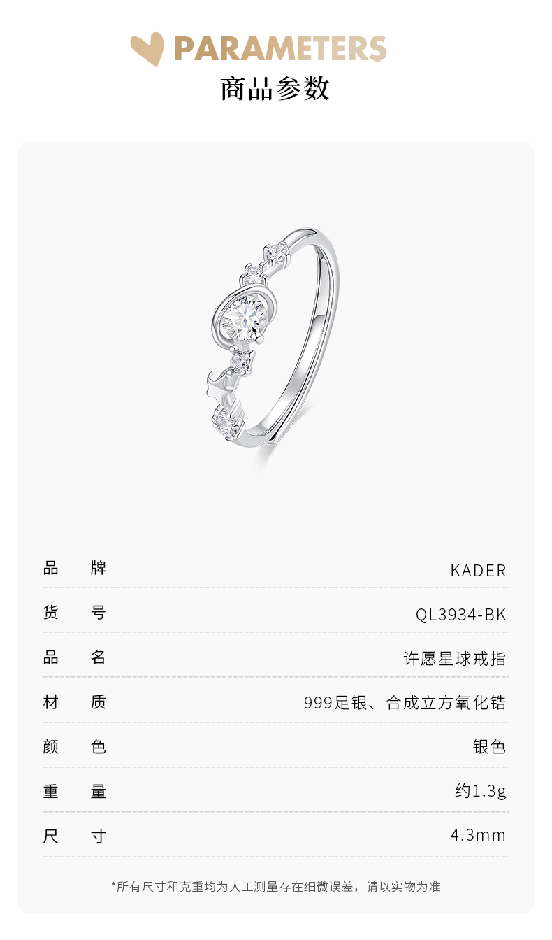 卡蒂罗KADER 许愿星球女戒 轻奢女友气质小众设计高级感时尚百搭纯银单戒可调节 浪漫约会闪耀吸睛