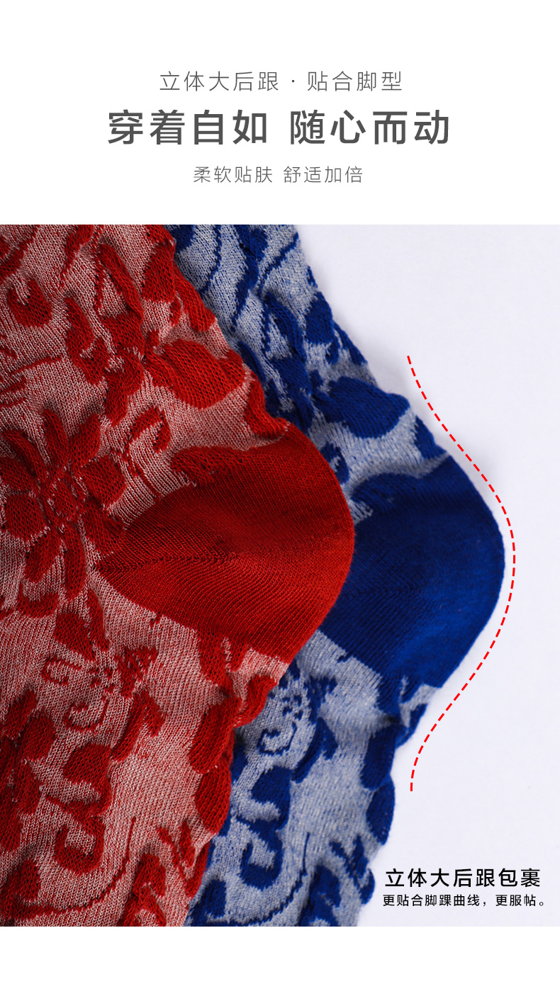 【任选6双99.5】春秋女夏季短邦袜中邦袜双针工艺国潮唐仕女刺绣女船袜