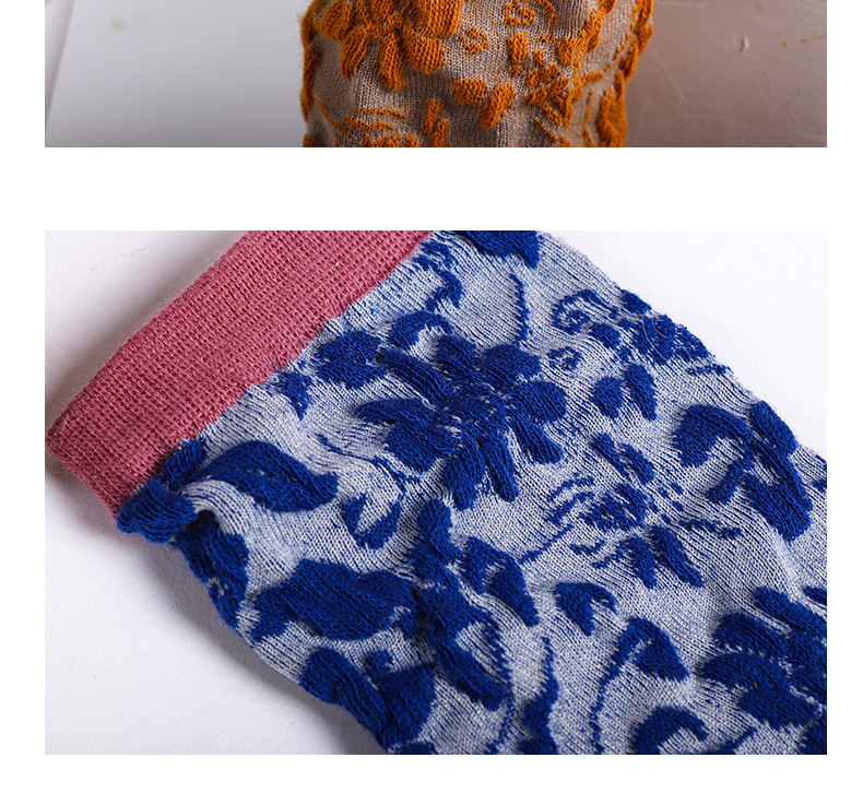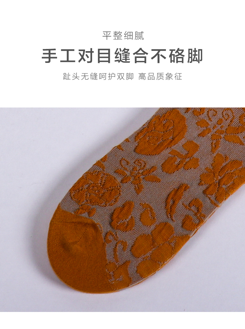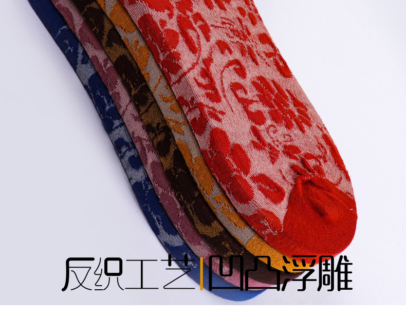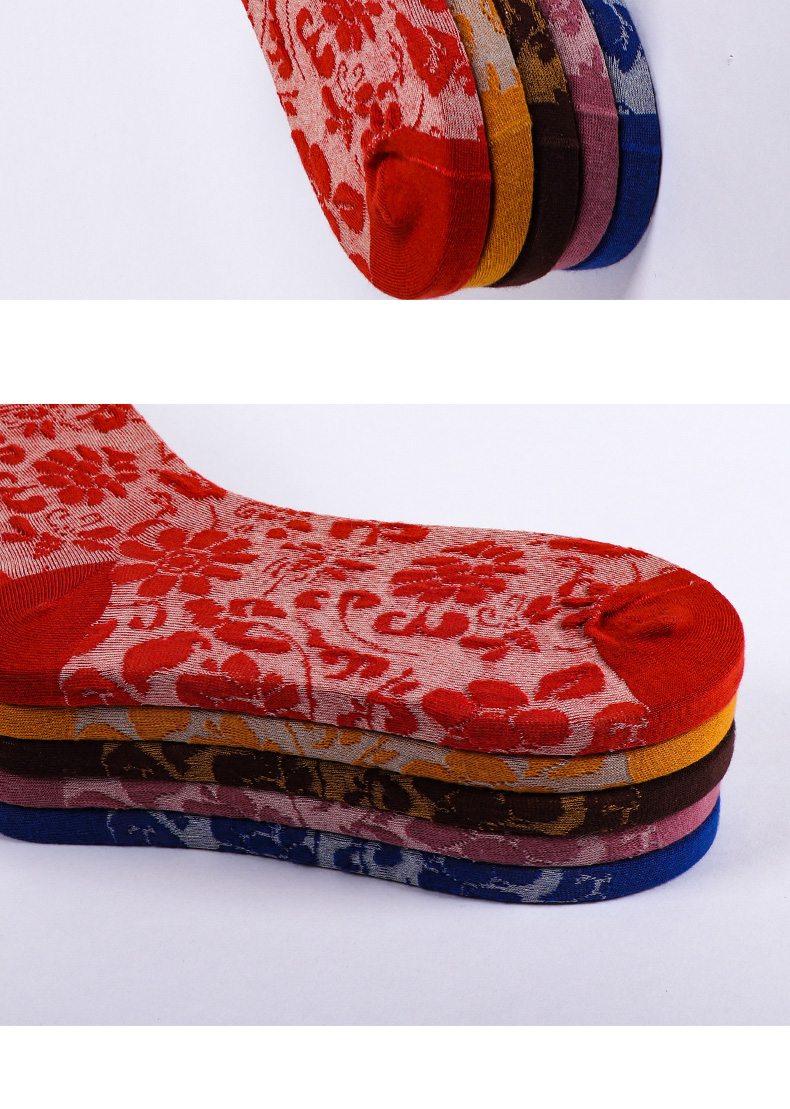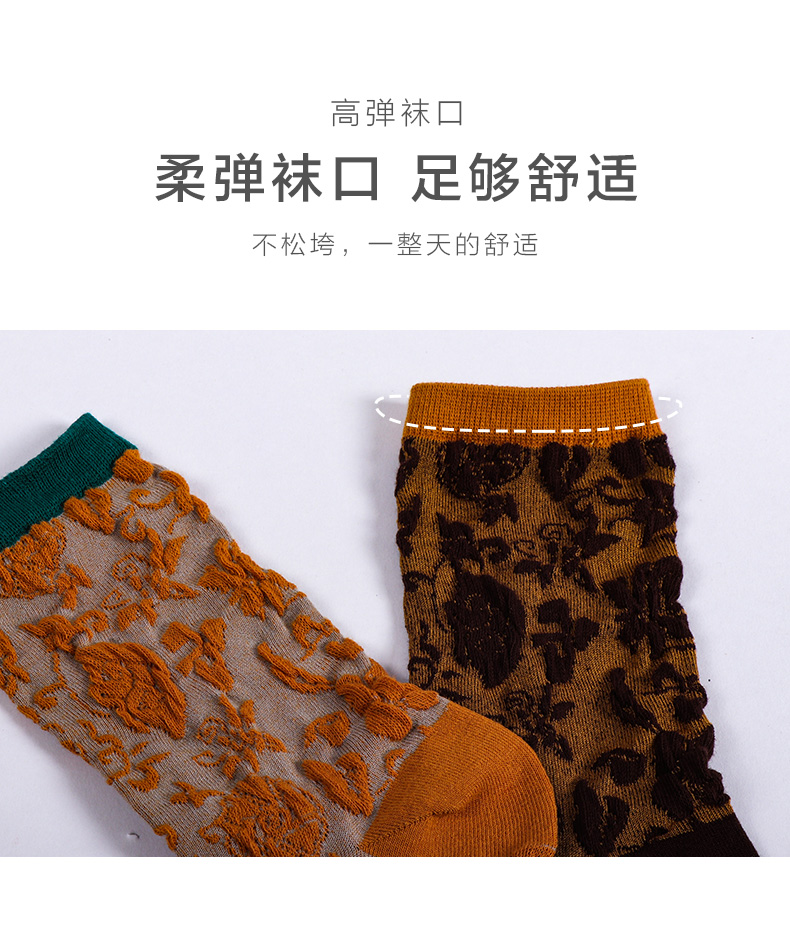 【任选6双99.5】秋冬女款棉质玫瑰浮雕反织提花民族风冬季中邦女袜