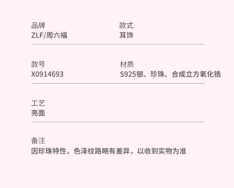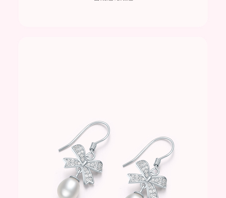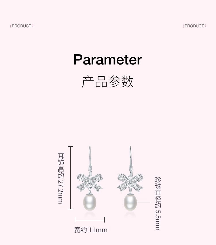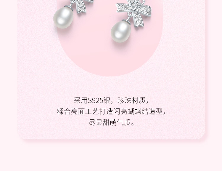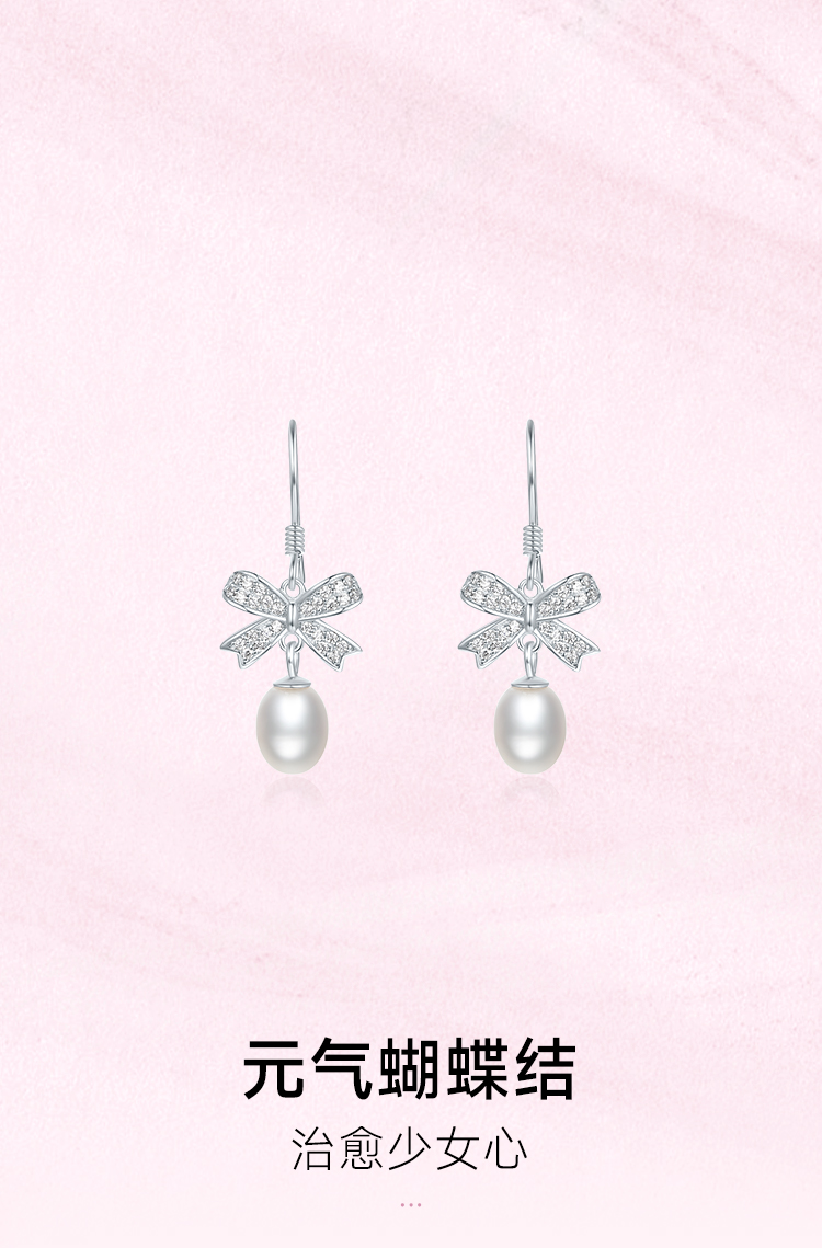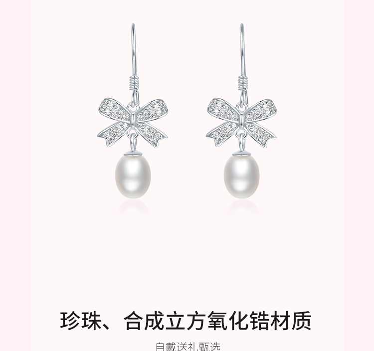 周六福淡水珍珠耳钉女蝴蝶结耳饰S925银优雅送女友送女友礼物