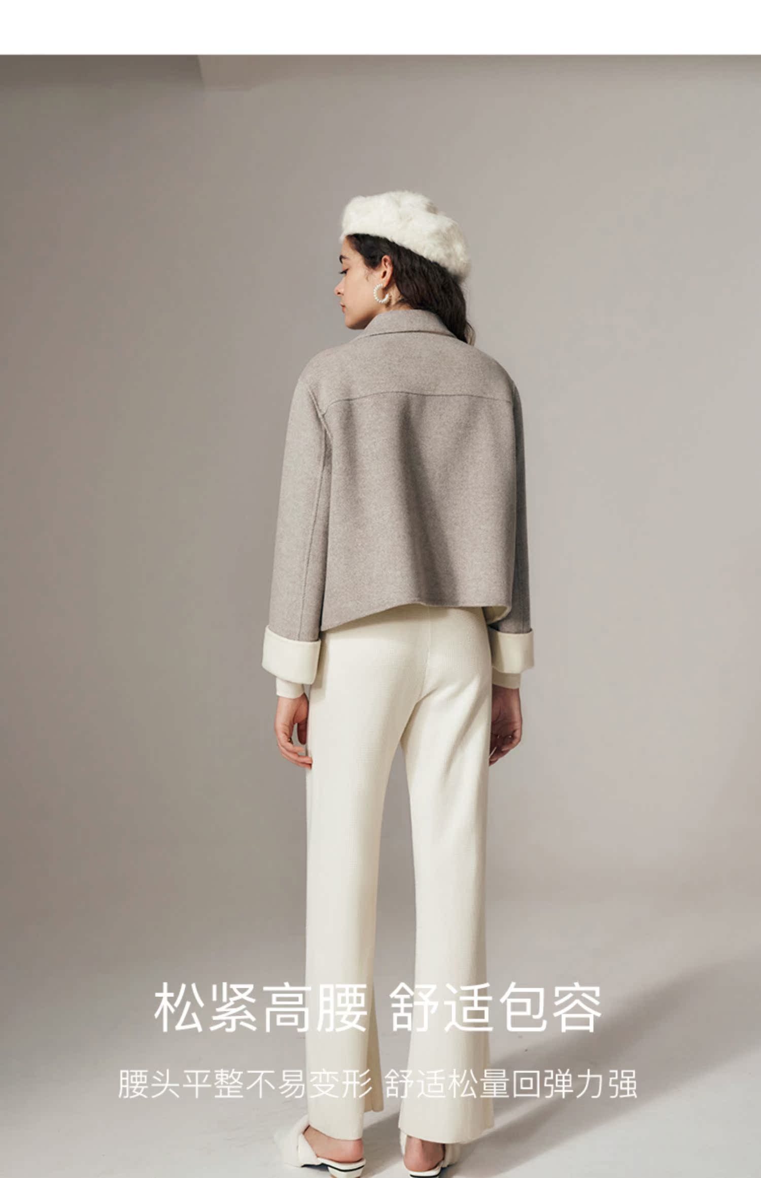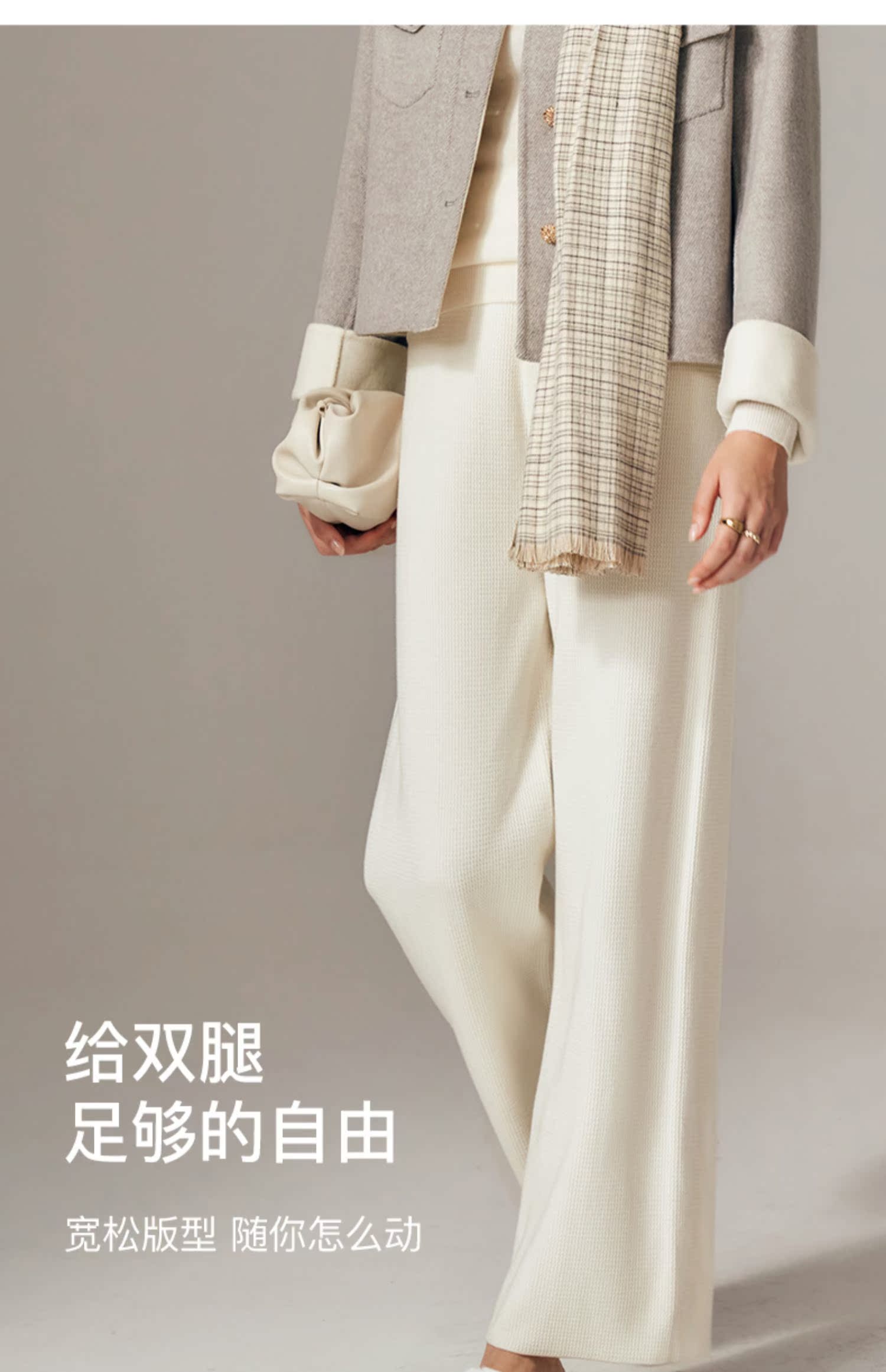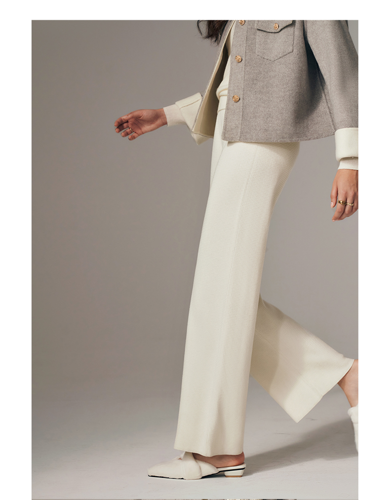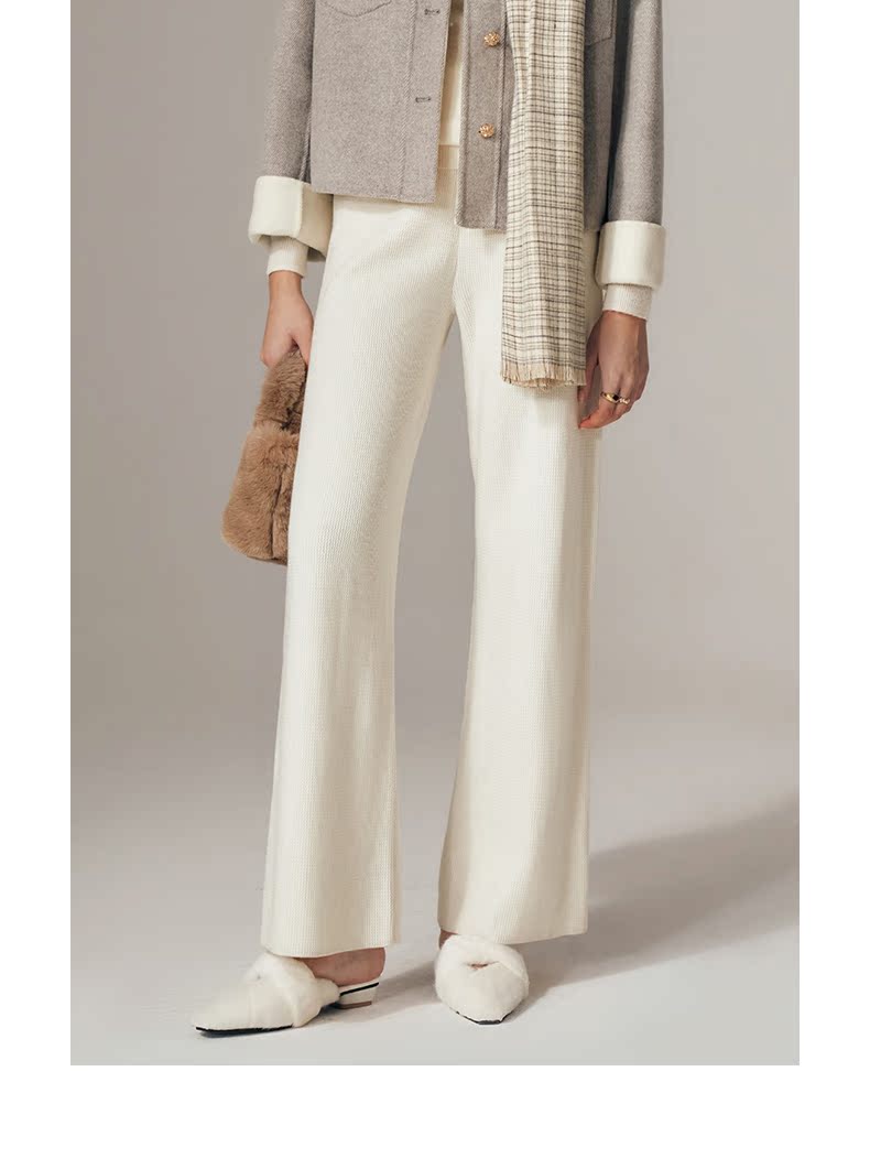 OLrain欧芮儿法式杏色休闲裤女初秋2023年新款宽松针织直筒长裤