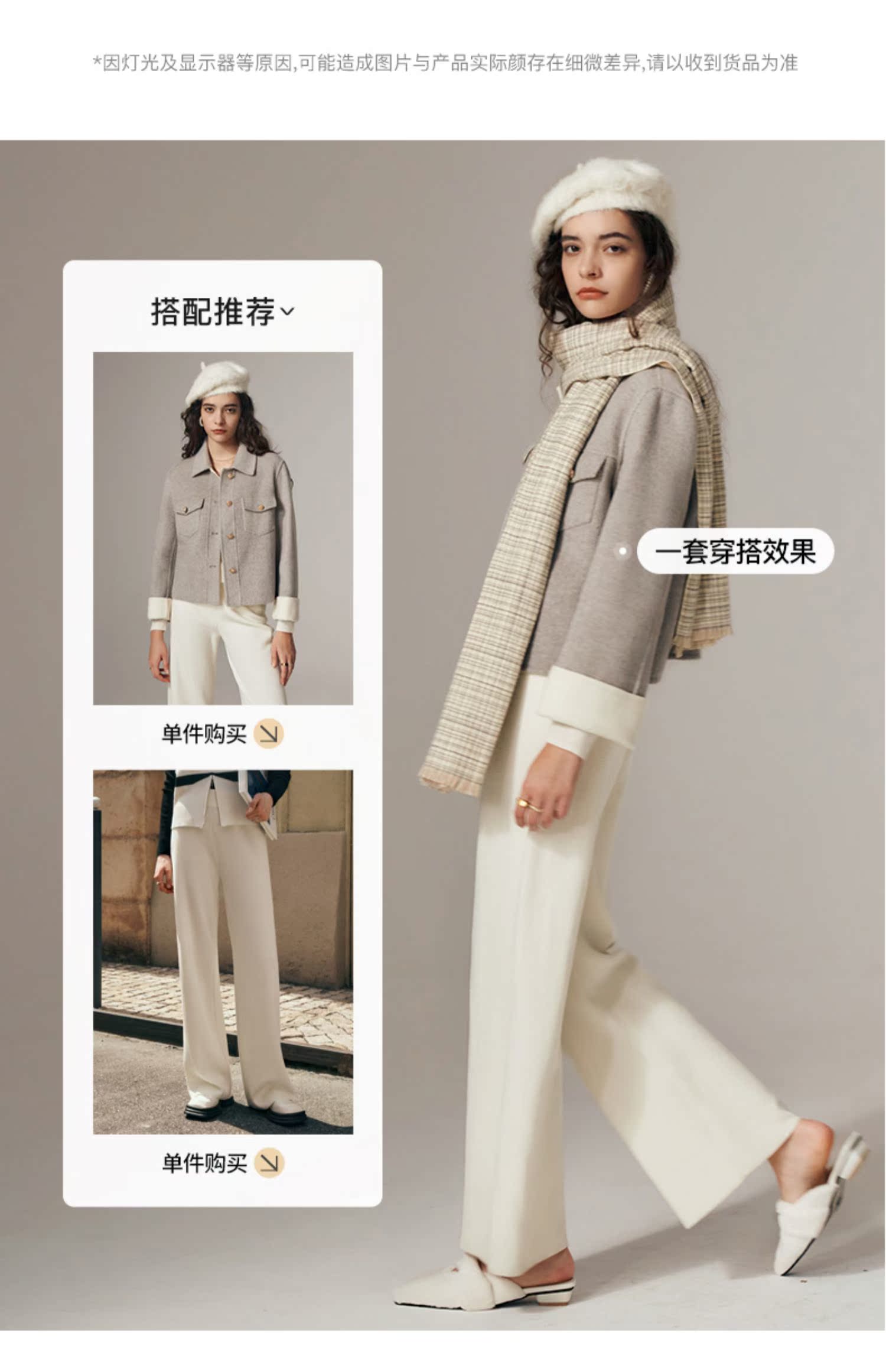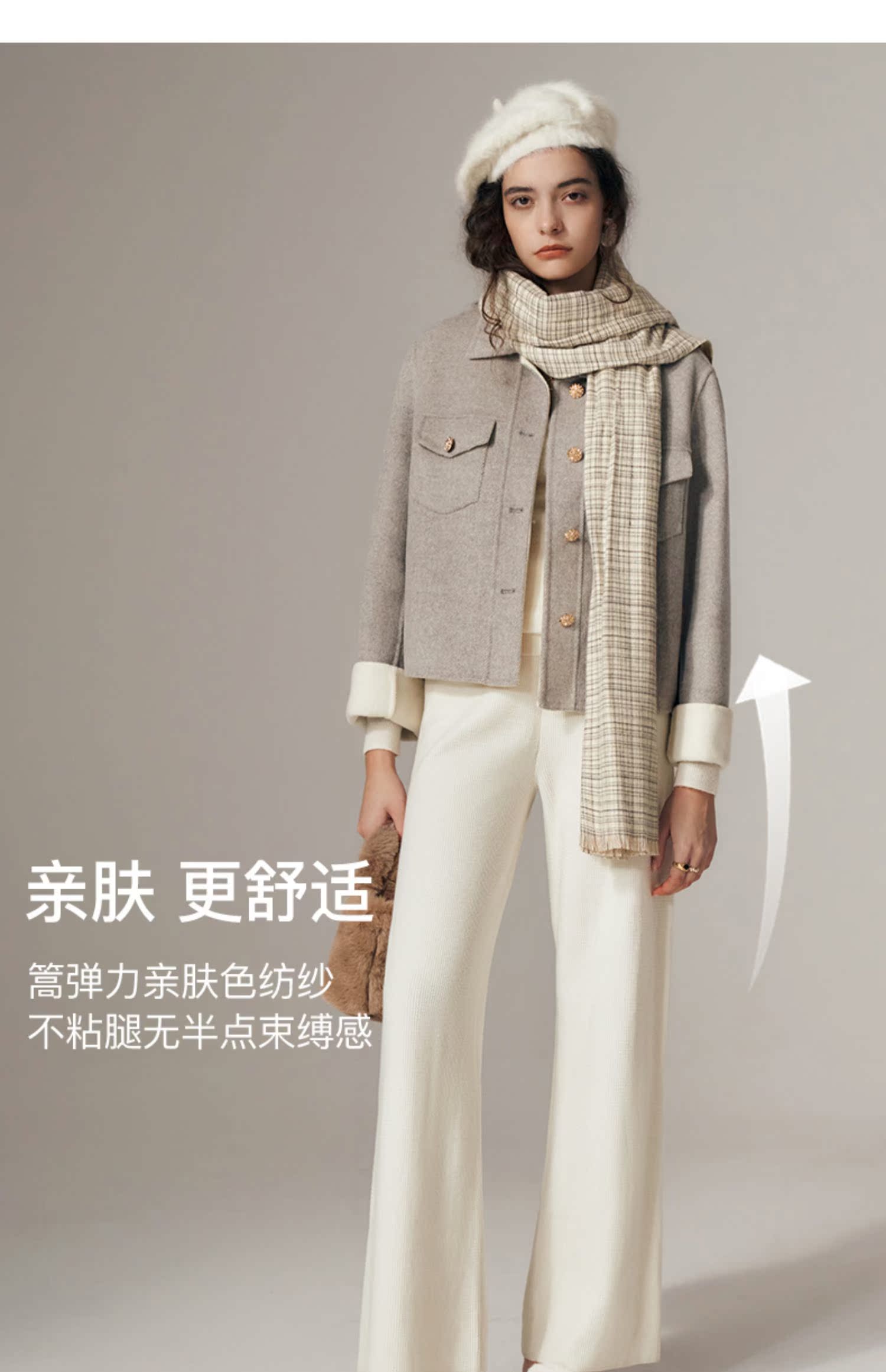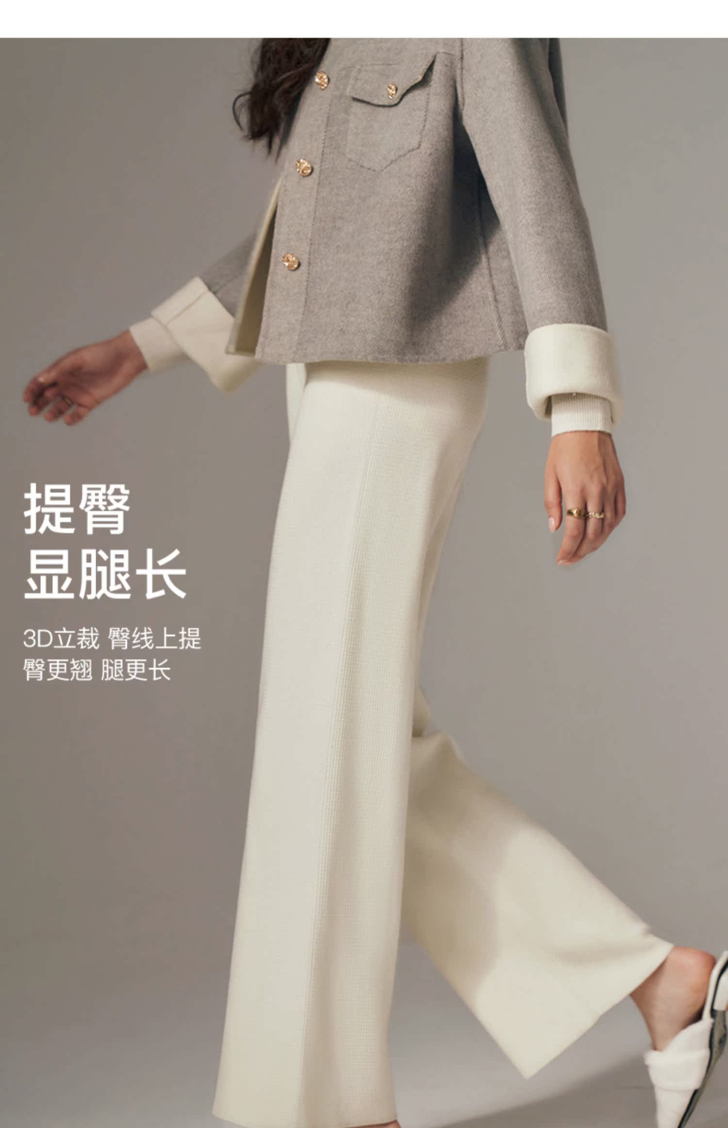 OLrain欧芮儿法式杏色休闲裤女初秋2023年新款宽松针织直筒长裤