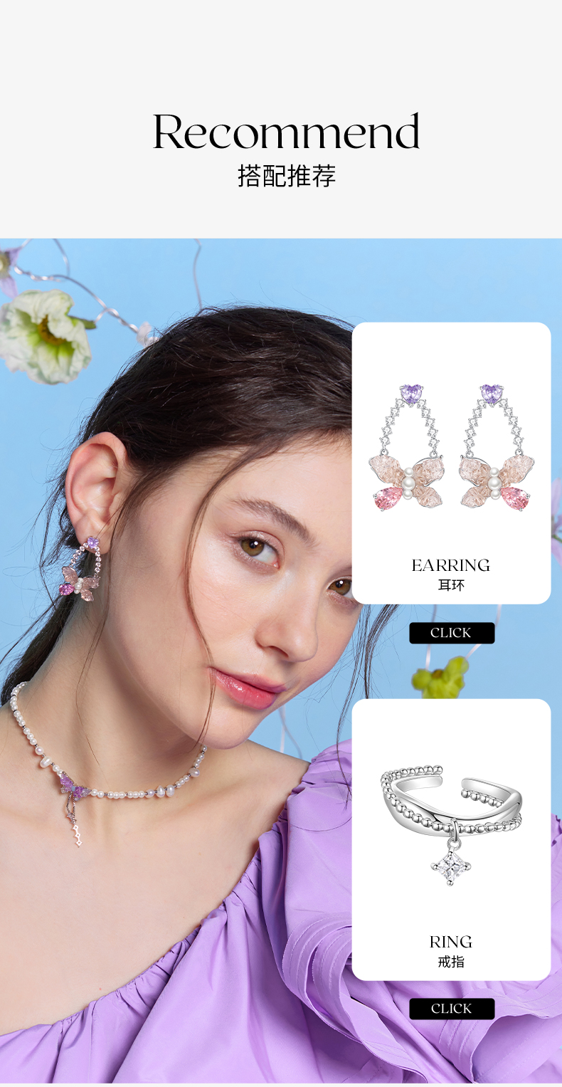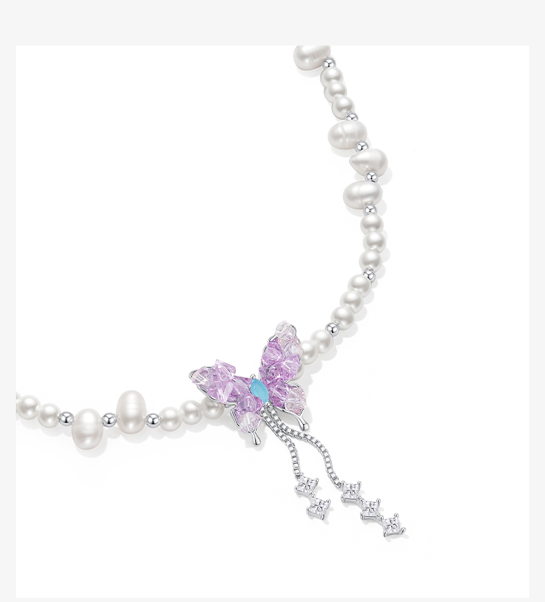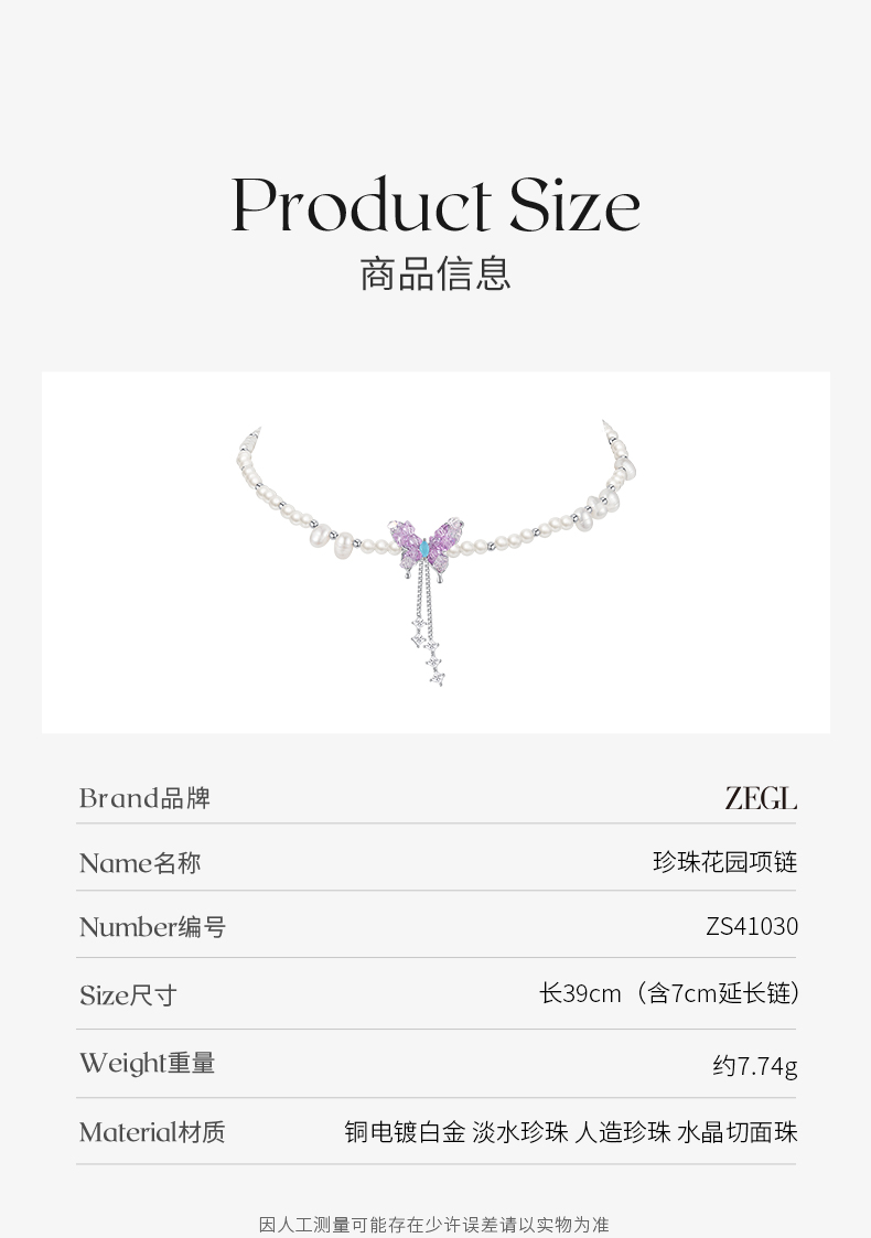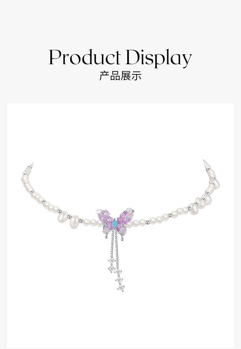 ZEGL设计师花园系列蝴蝶串珠项链女生轻奢高级感人造珍珠锁骨颈链