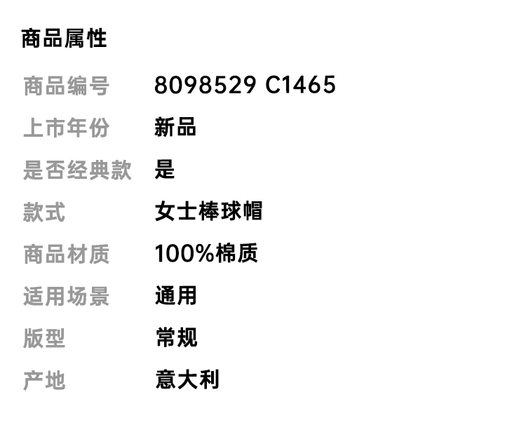 【一】BURBERRY 巴宝莉 女士格纹棉质棒球帽 格子色 8098529 C1465