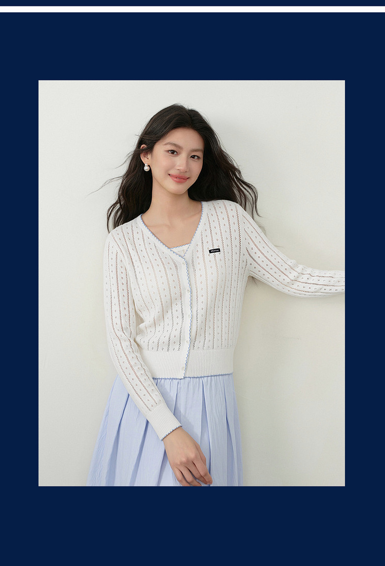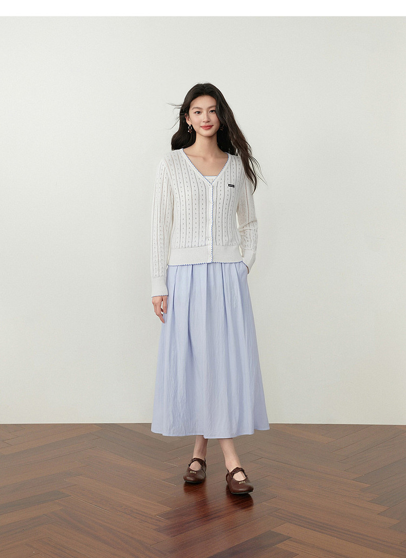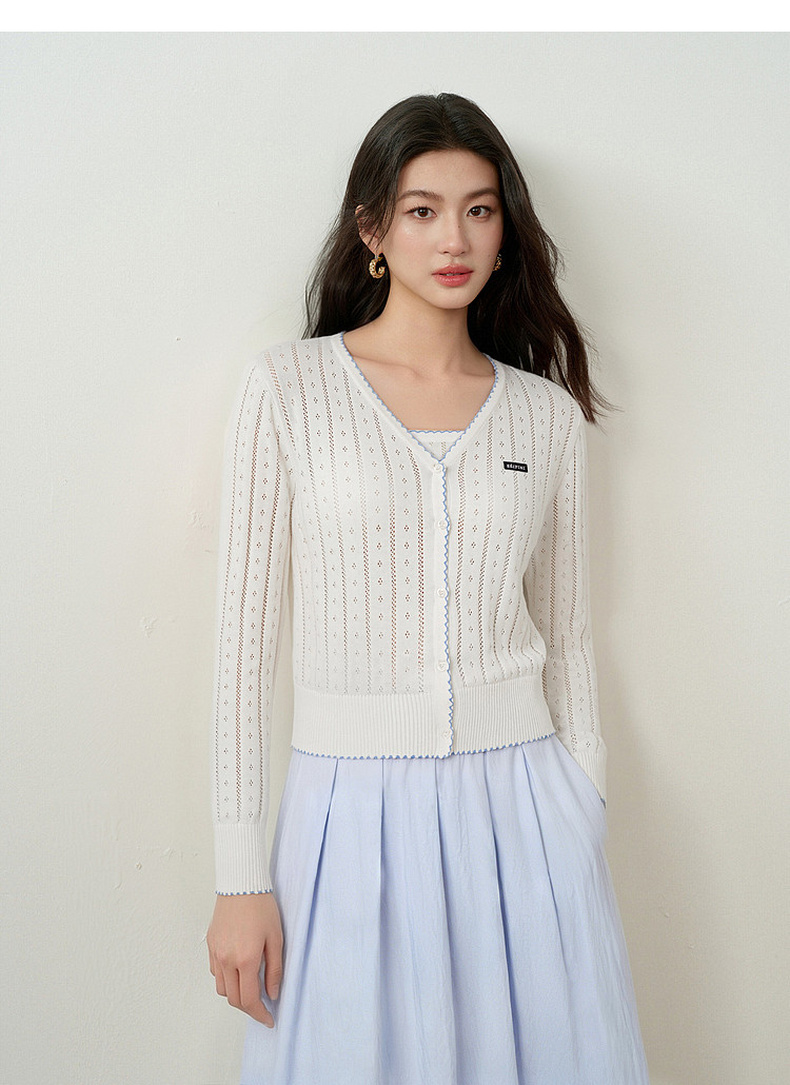 【严选】诗凡黎撞色花边镂空针织开衫吊带两件套千金风优雅26春新款7H3431341