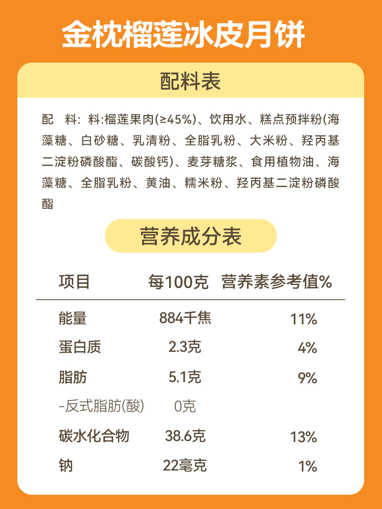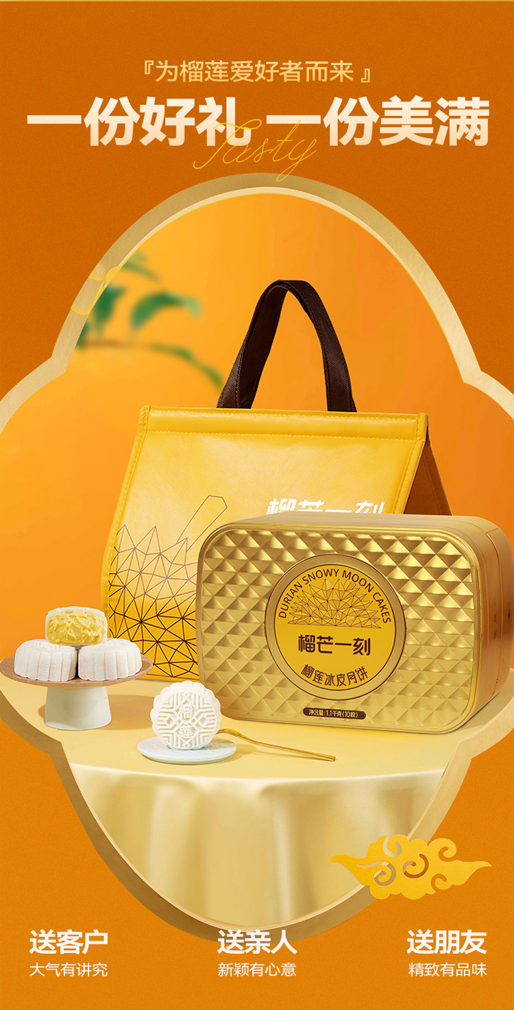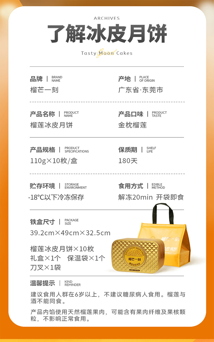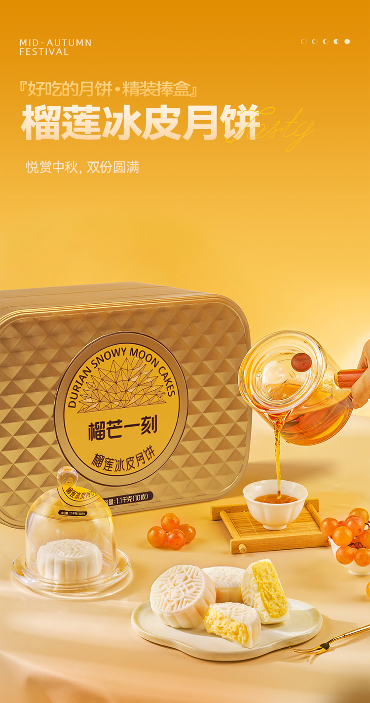 2025年中秋榴芒一刻 金枕榴莲冰皮月饼110g*10枚*1盒【含礼品袋】
