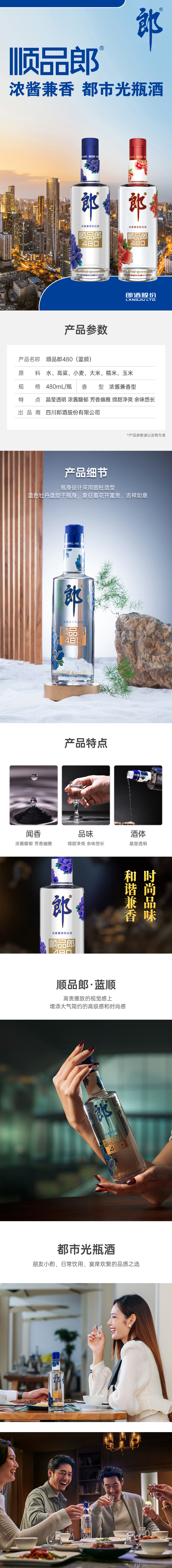 郎酒顺品郎蓝顺480 浓酱兼香纯粮白酒45° 480mL/瓶
