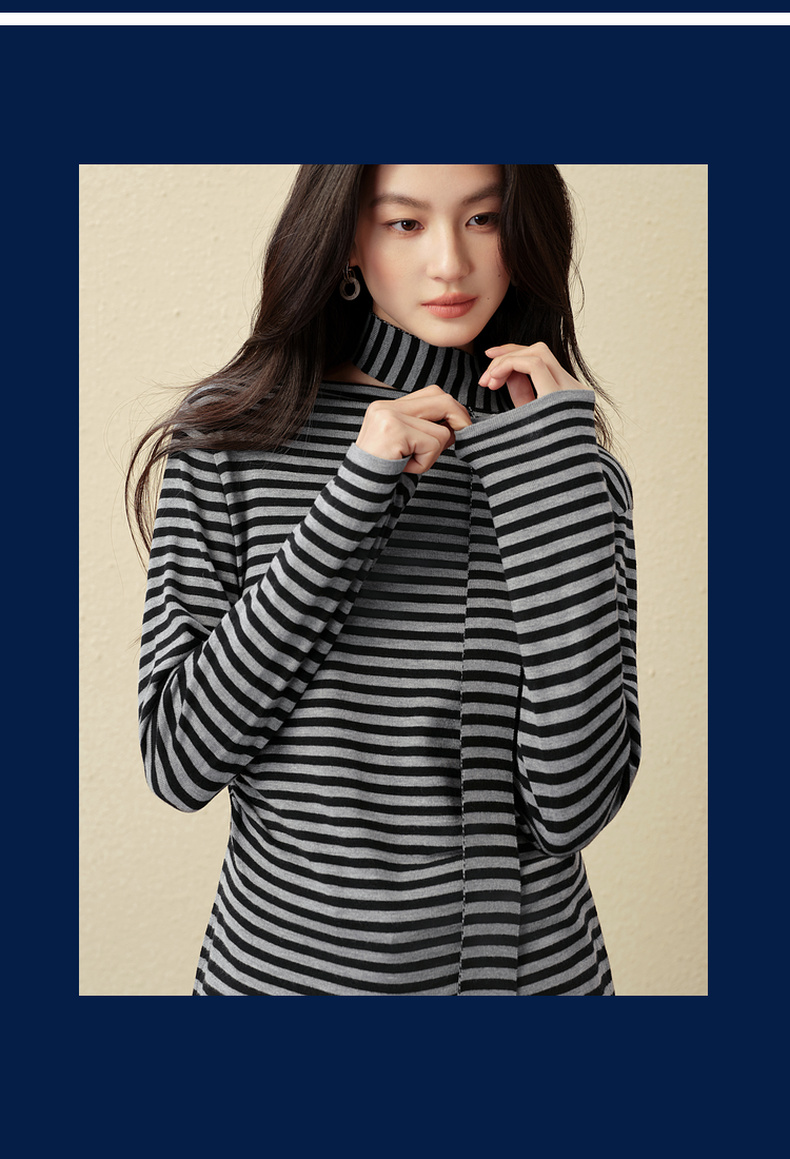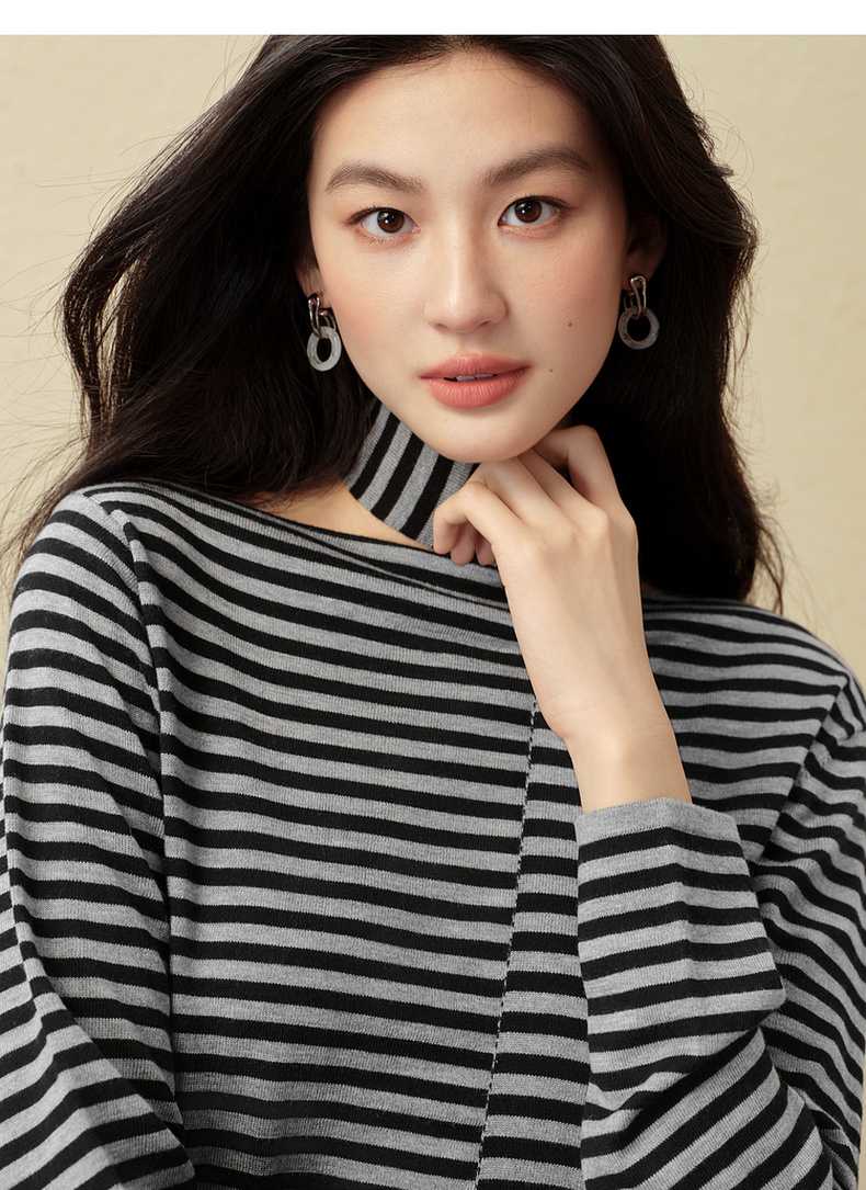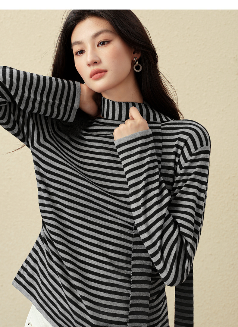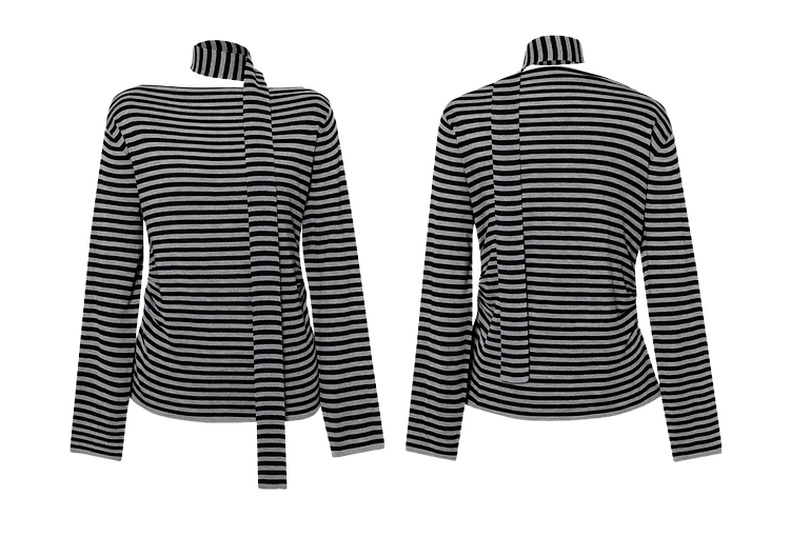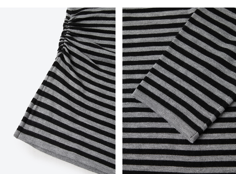 【严选】诗凡黎经典条纹飘带针织衫2025秋新款收腰修身显瘦百搭长袖打底衫7G8131021-1