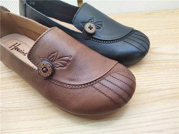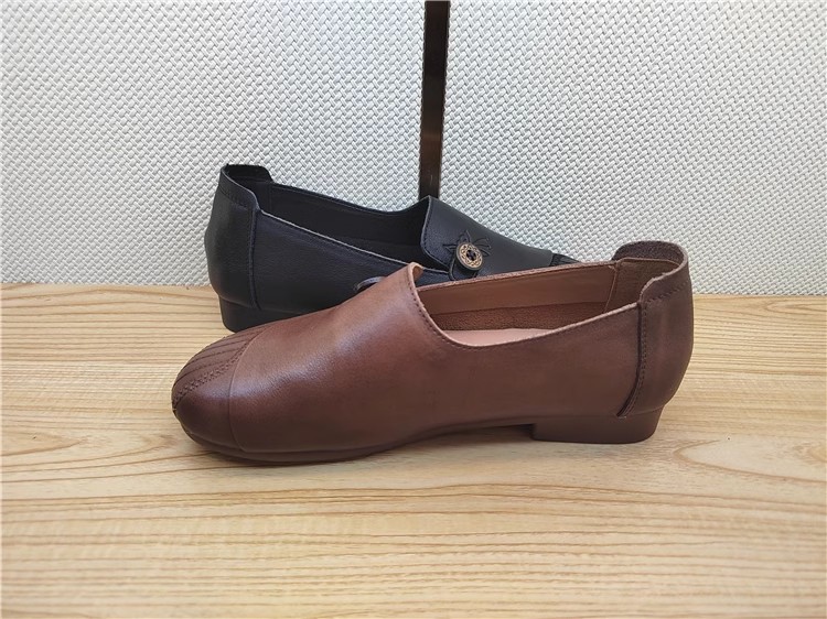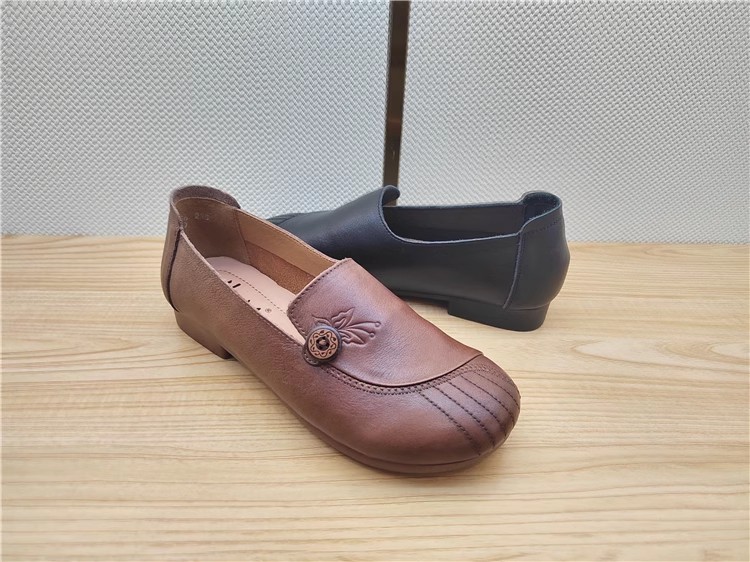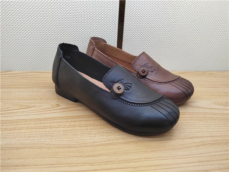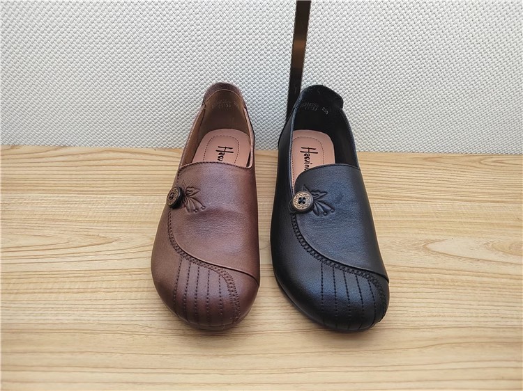 豪行女鞋22373839软牛皮舒适低跟休闲皮鞋女单鞋浅口