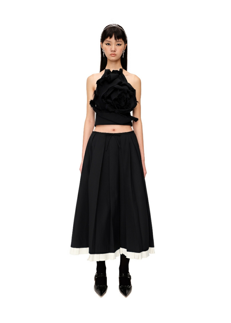【SHUSHUTONG】蕾虎简约裙边装饰百褶中长伞裙经典款半裙 商品图0