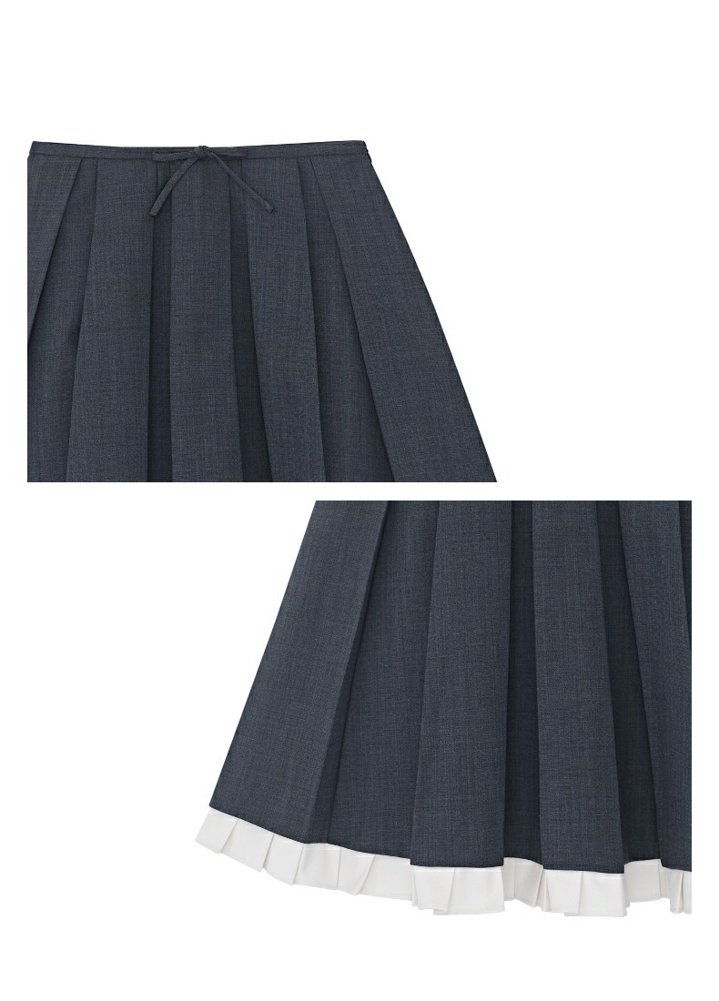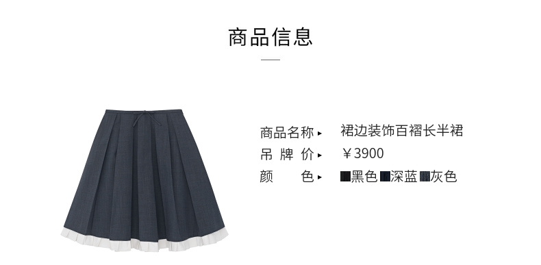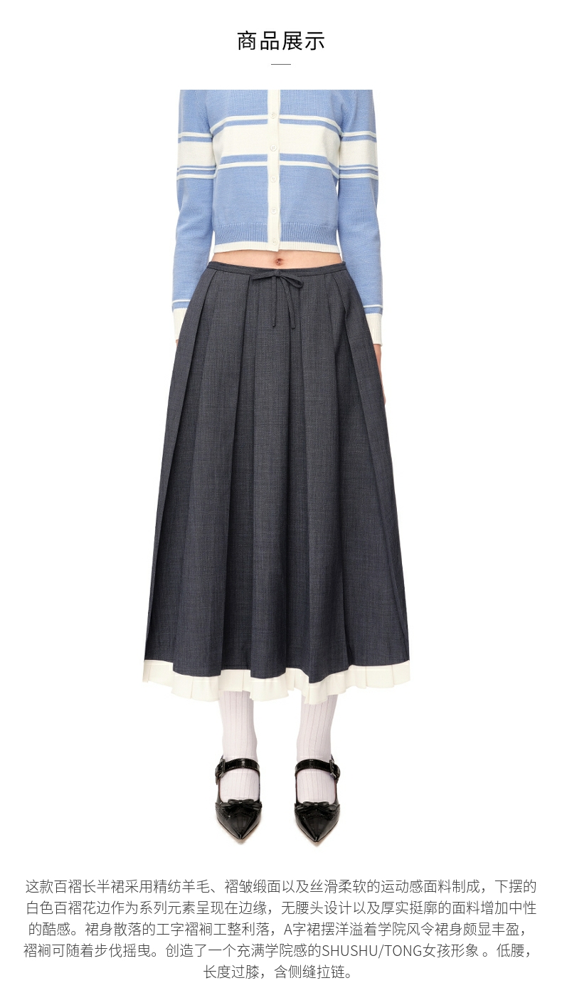 【SHUSHUTONG】蕾虎简约裙边装饰百褶中长伞裙经典款半裙 商品图4