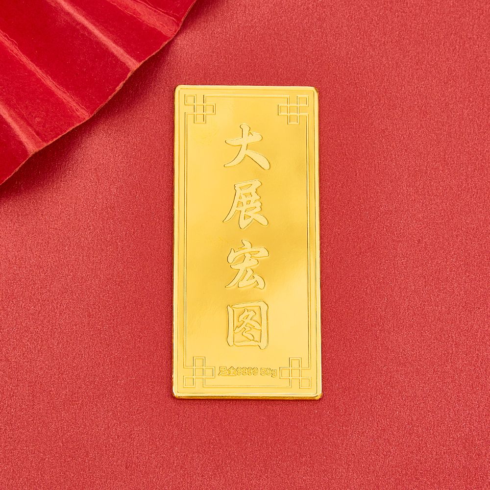 【限时克减150元】【50克】足金999.9 大展宏图50g金条(配亚克力盒)(YDJT00042-02)(预售产品下单后不退款不退货不换货不补差价)