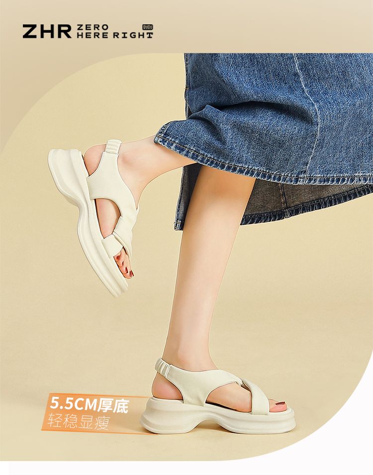 ZHR则则简约厚底凉鞋女2024夏新款时尚百搭轻盈透气耐磨凉鞋显高