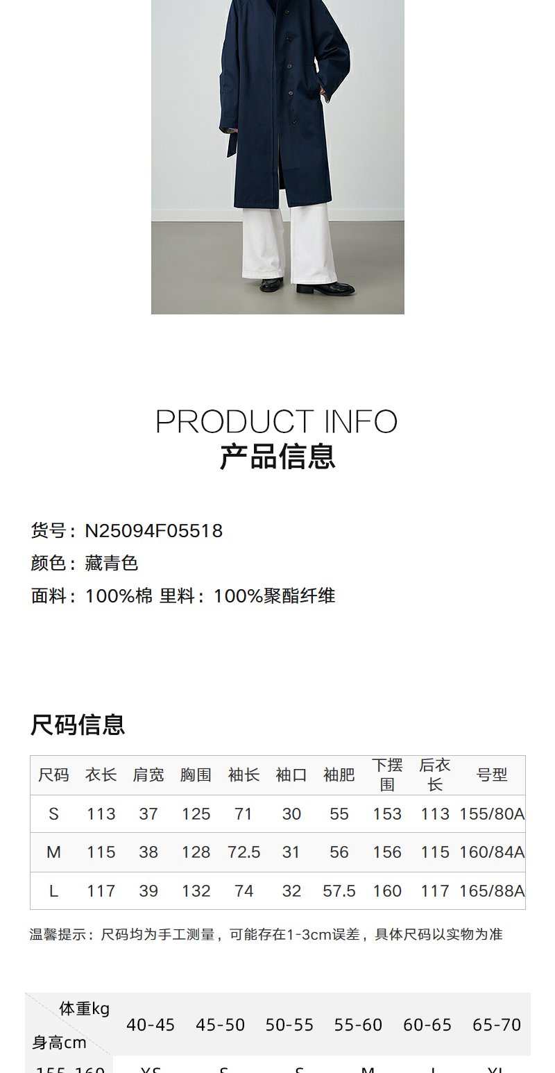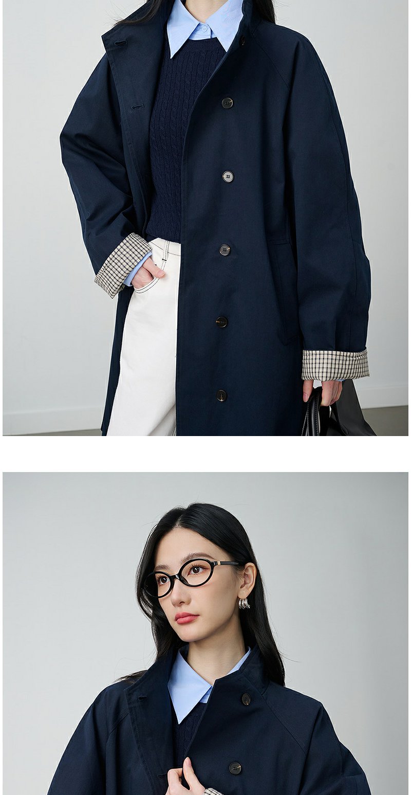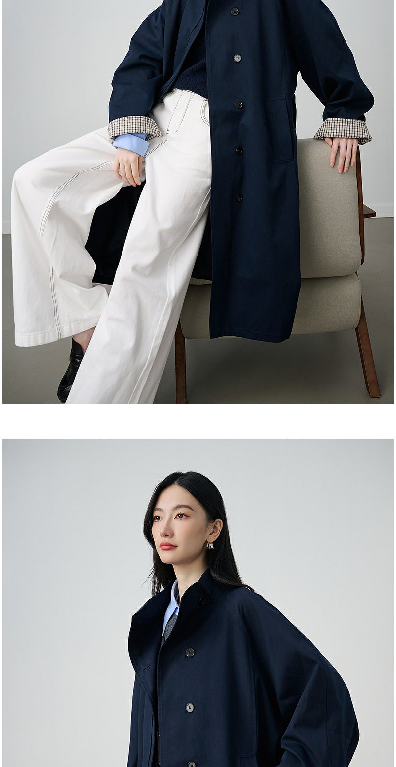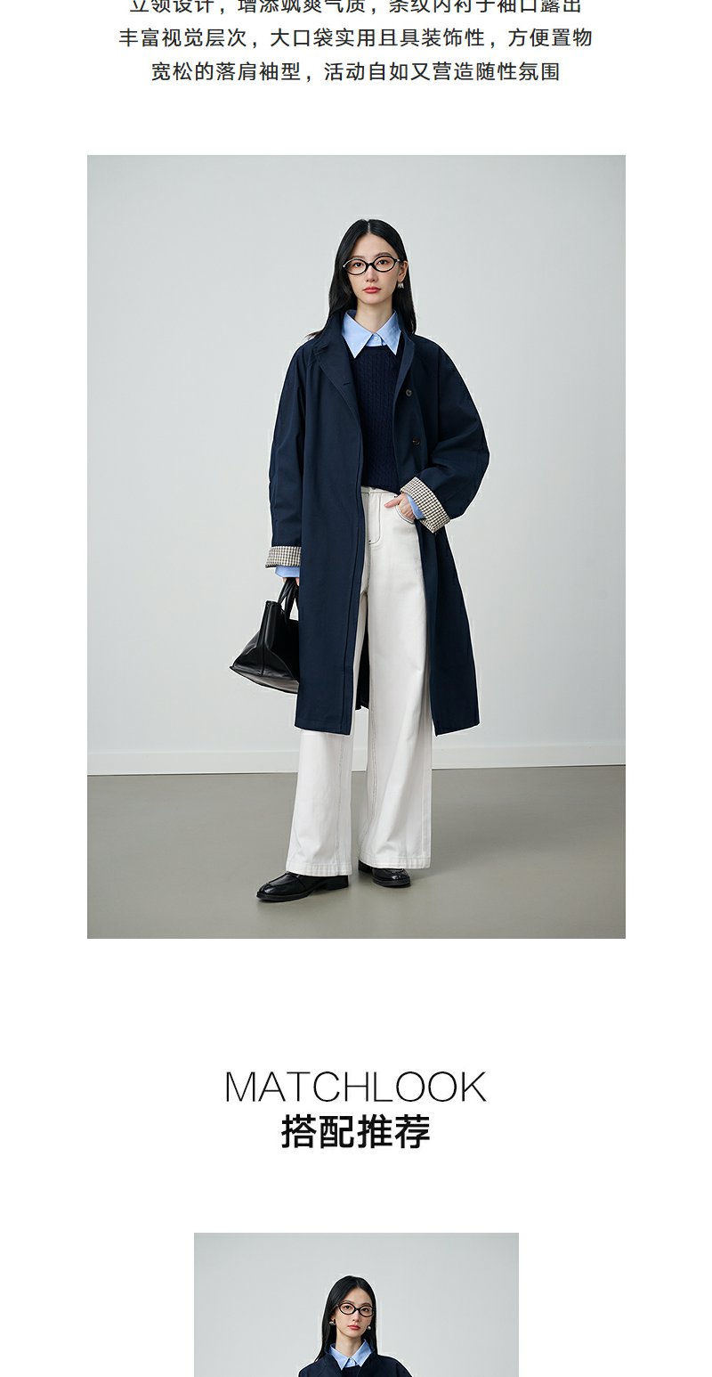 NEELLY纳俪商场同款秋冬新款条纹撞色休闲长风衣女时尚百搭外套N25094F05518