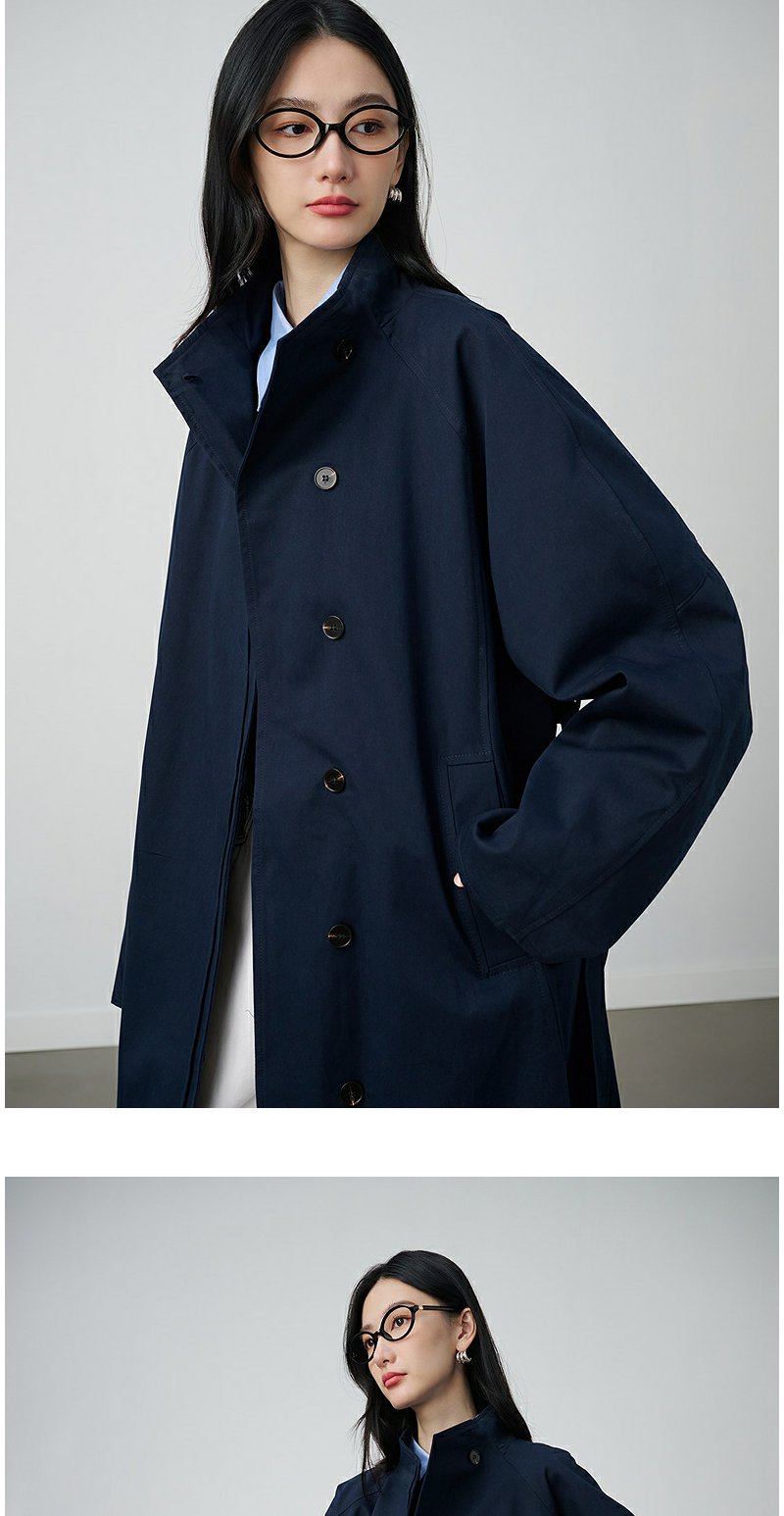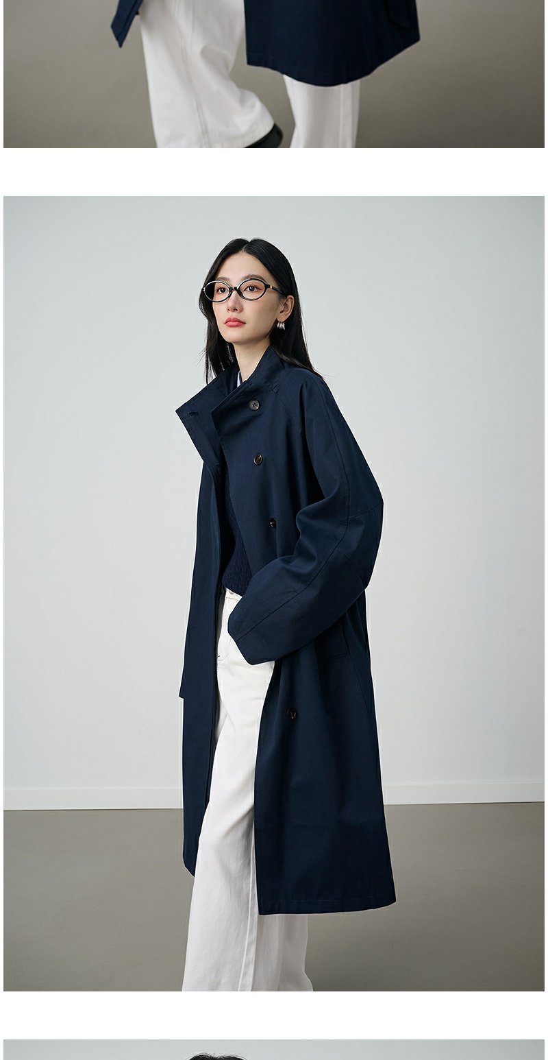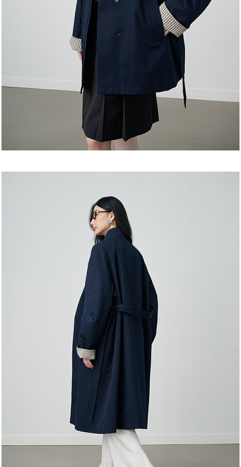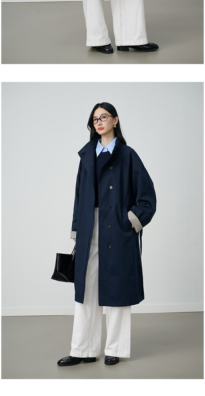 NEELLY纳俪商场同款秋冬新款条纹撞色休闲长风衣女时尚百搭外套N25094F05518
