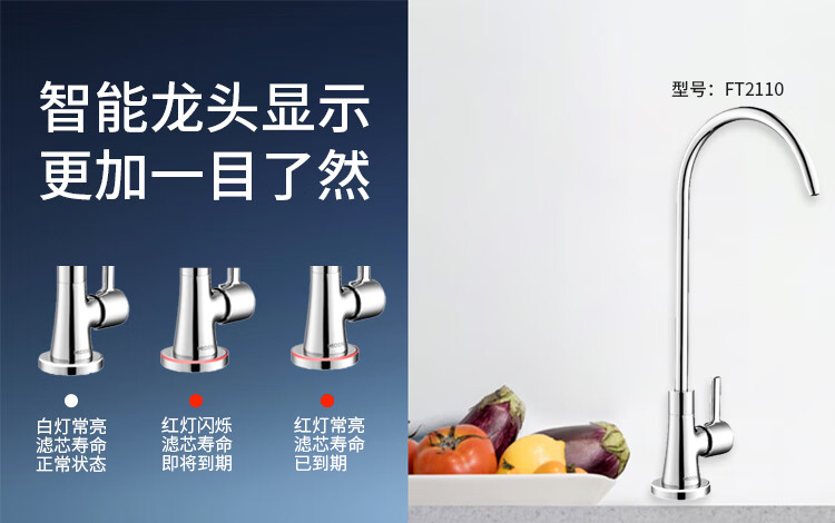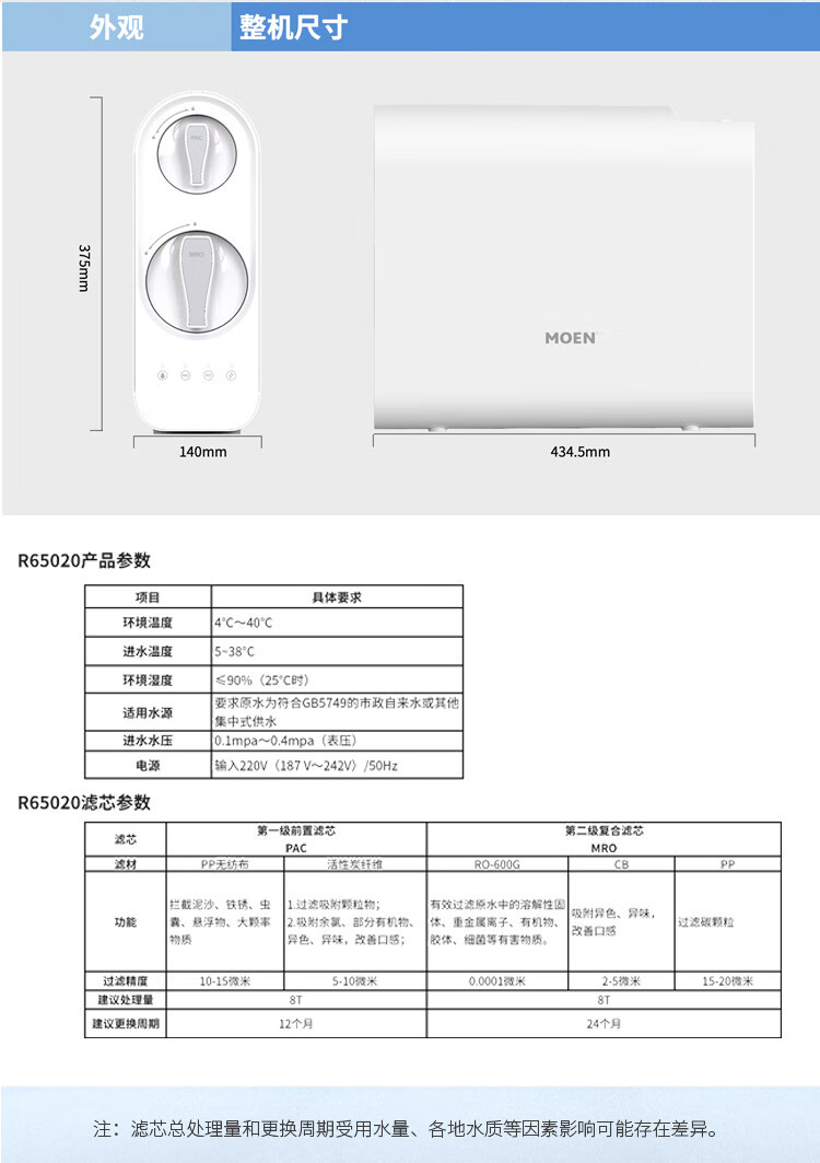 摩恩(MOEN)厨下家用RO反渗透直饮净水器自来水厨房过滤器R45020(400加仑)+FT1010