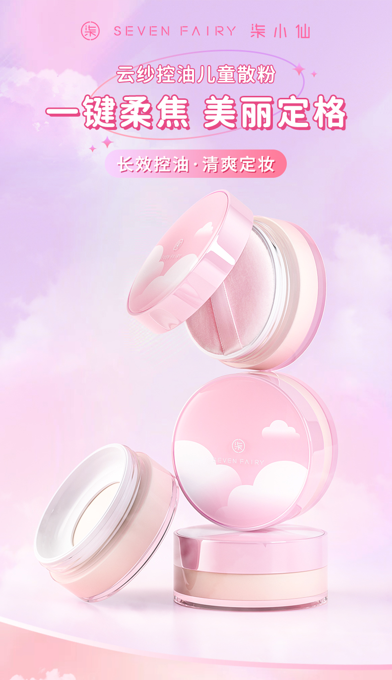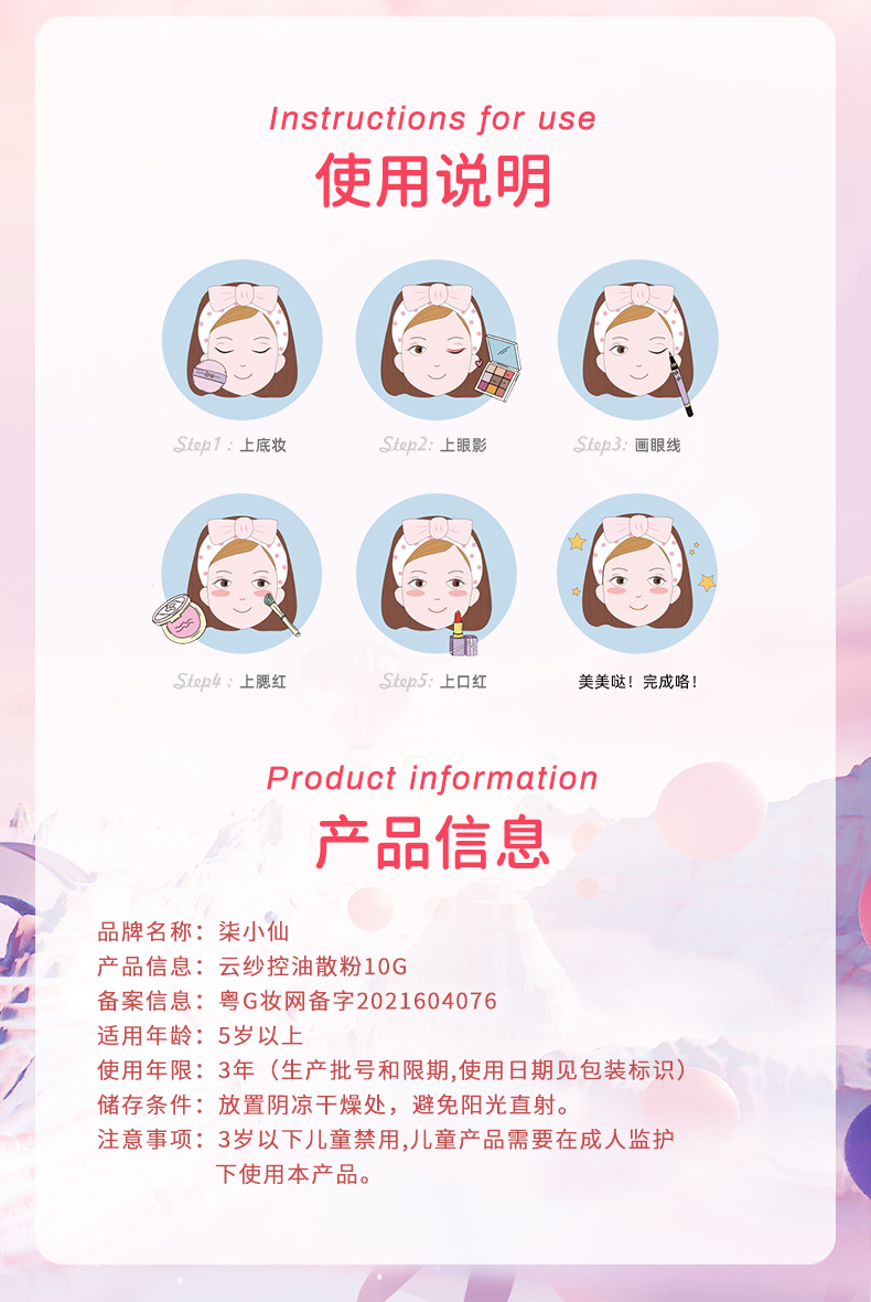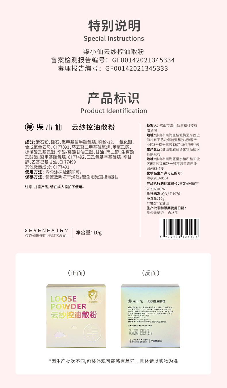 柒小仙 云纱控油散粉10g 5岁以上 油皮小朋友彩妆舞台表演专用