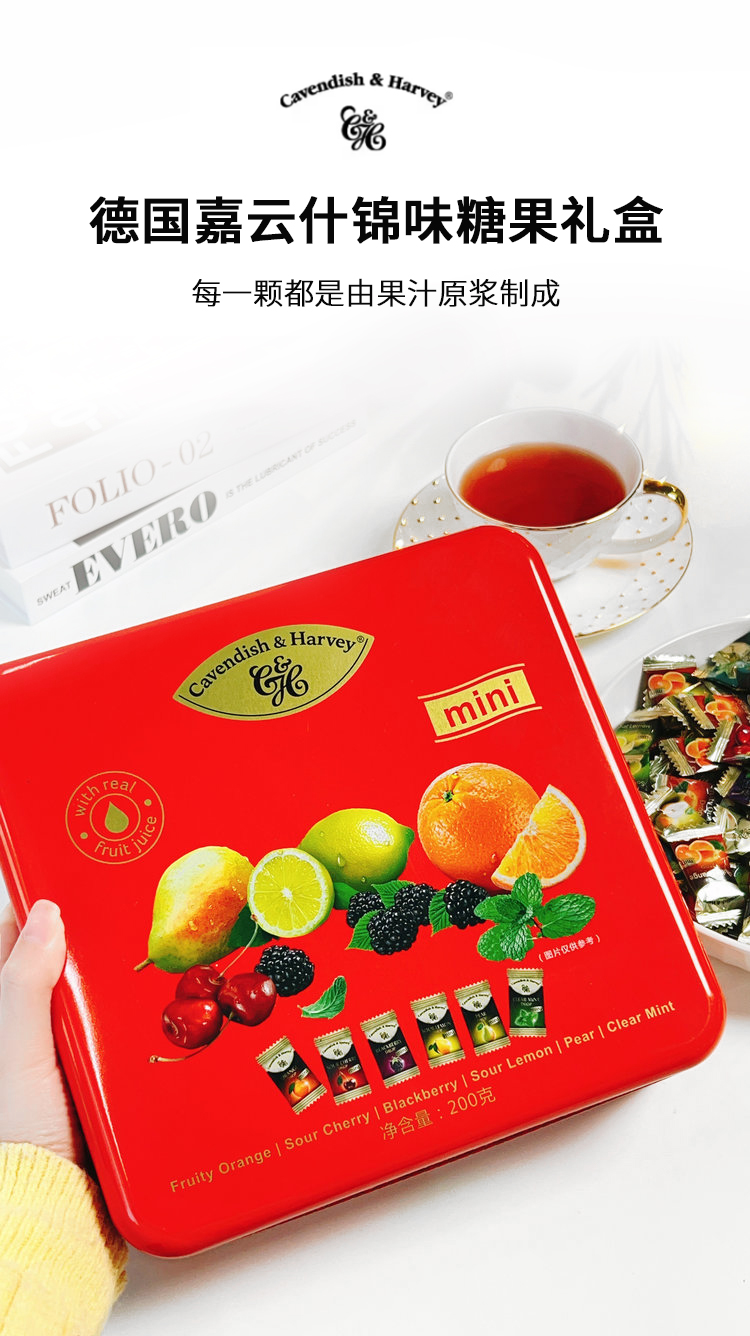 【德国嘉云什锦糖果礼盒】 缤纷水果口味 每一颗都是由果汁原浆制成