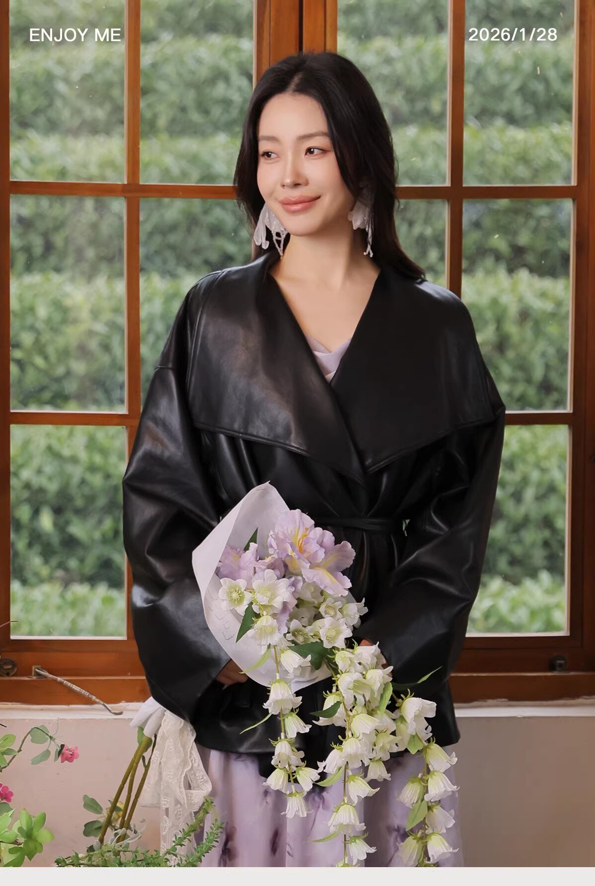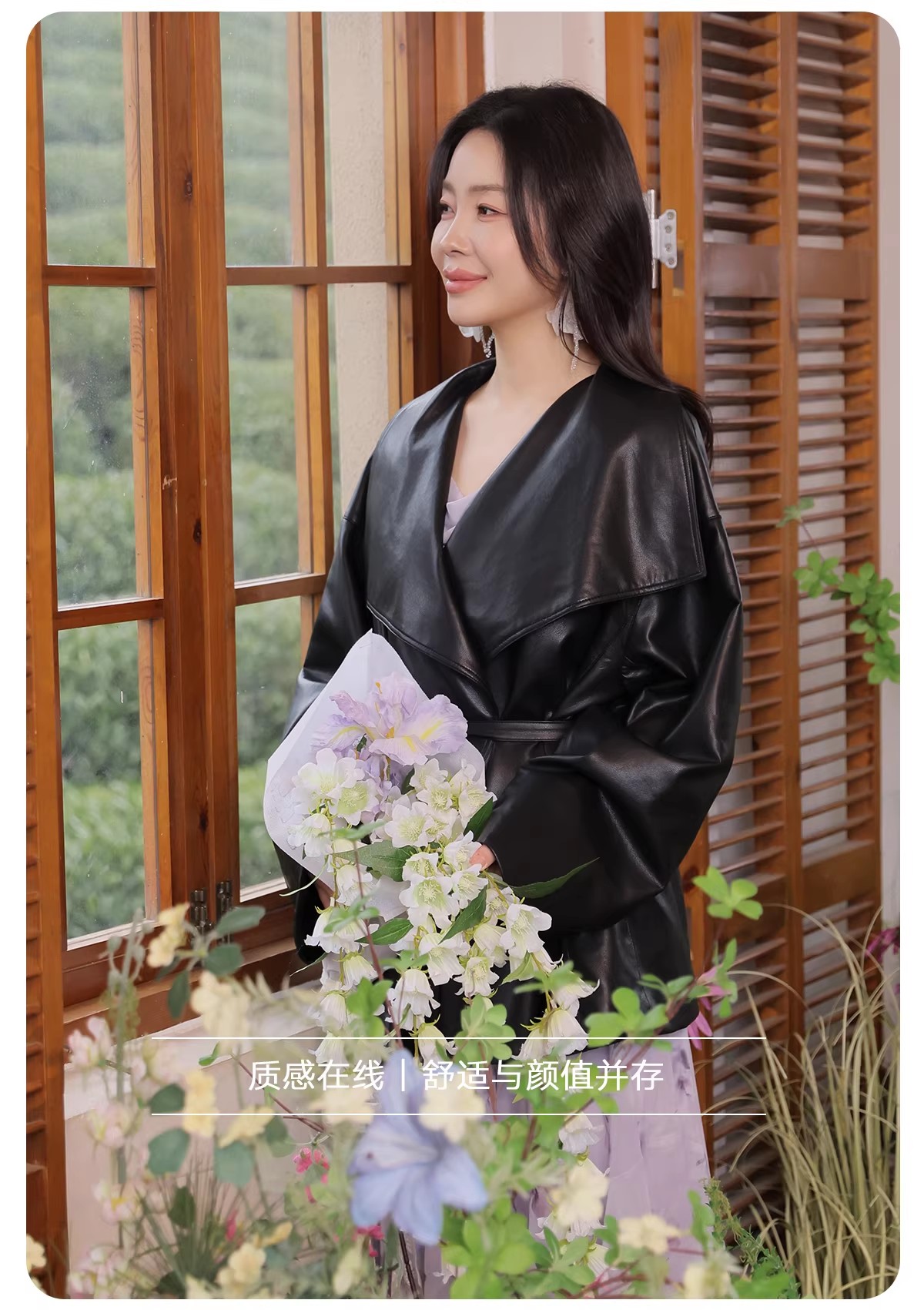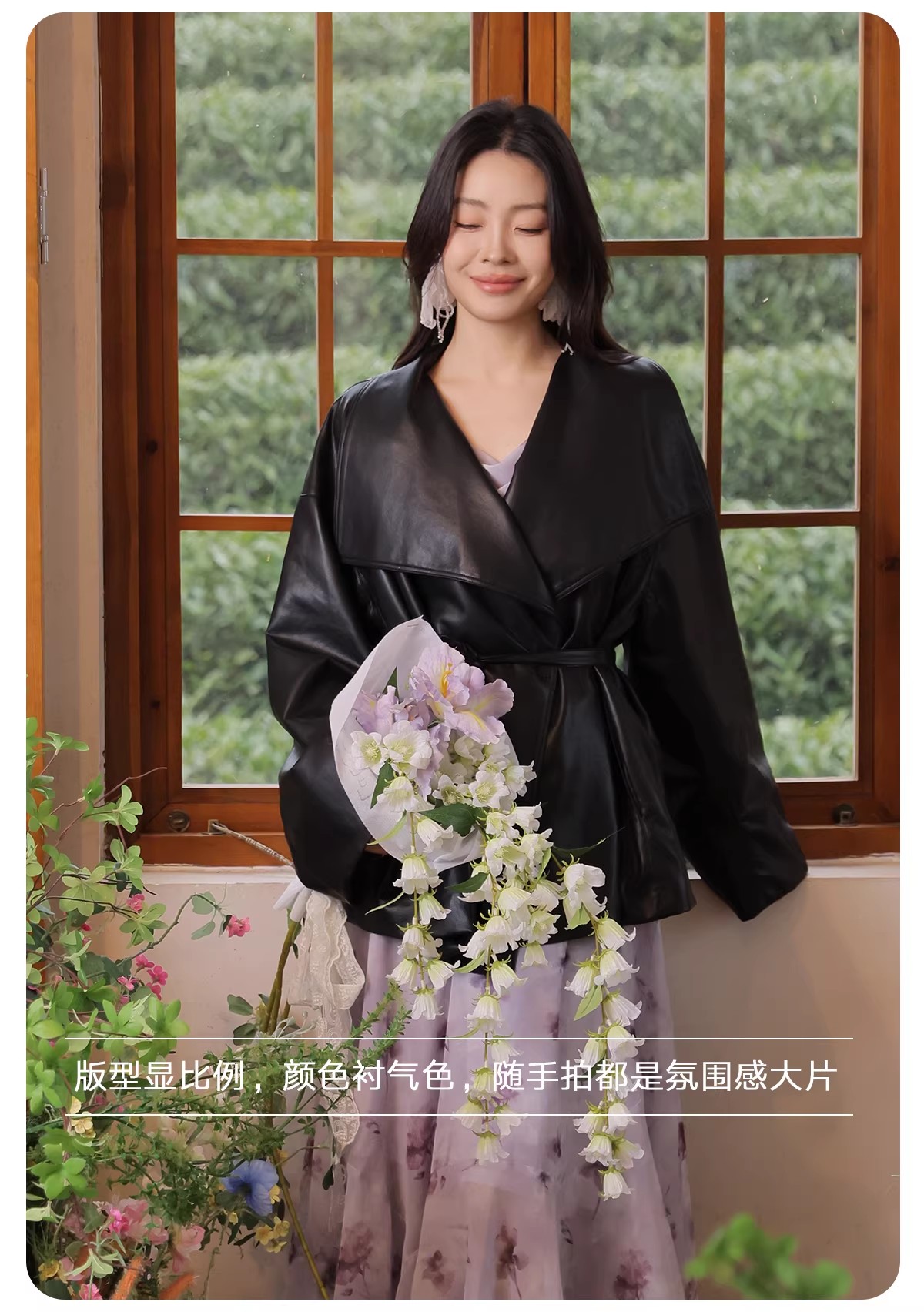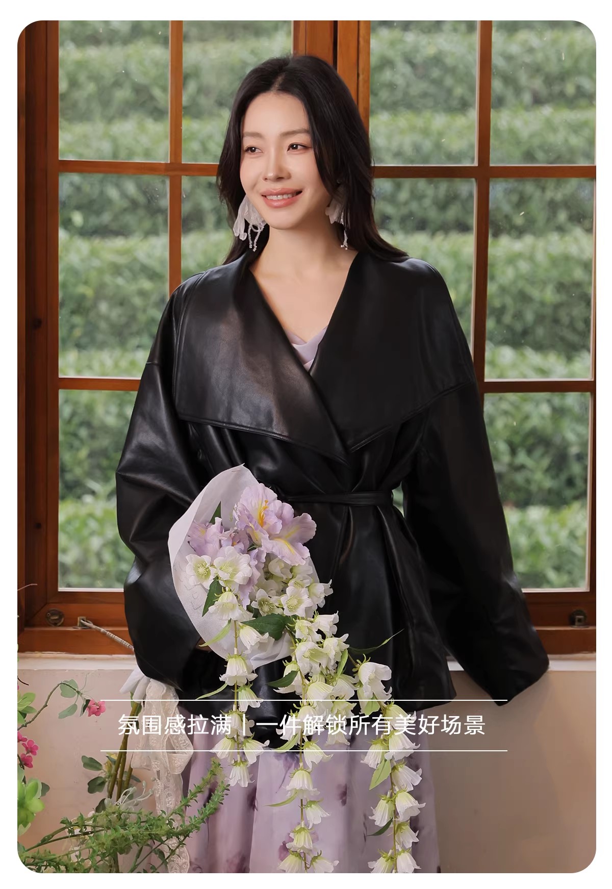 【门店同款】ENJOY春季“柔光芳序”大翻领收腰皮衣 169649631