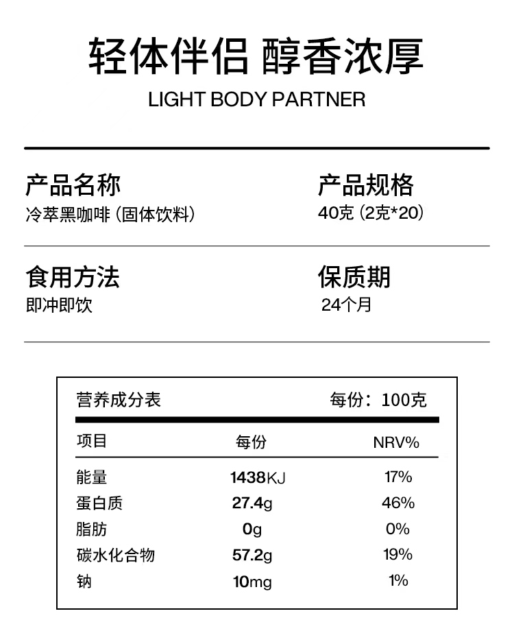 【黄袋咖啡】轻食兽冷萃黑咖啡 2g*20条/袋