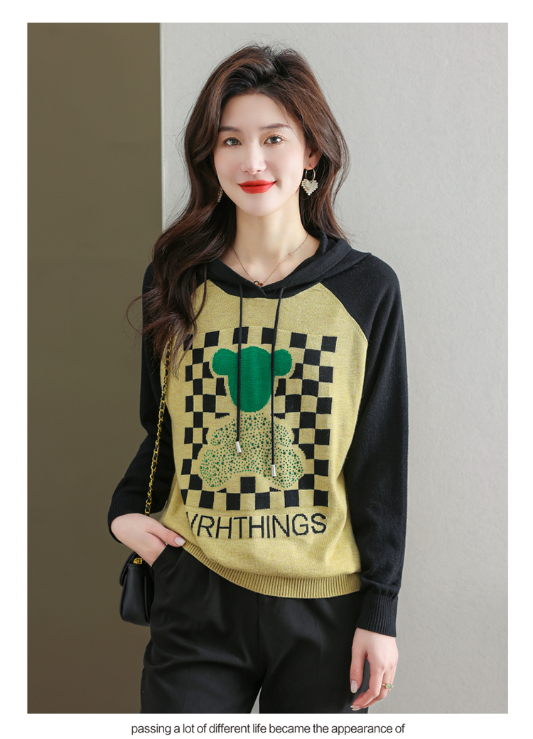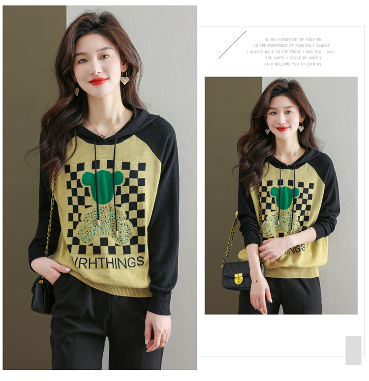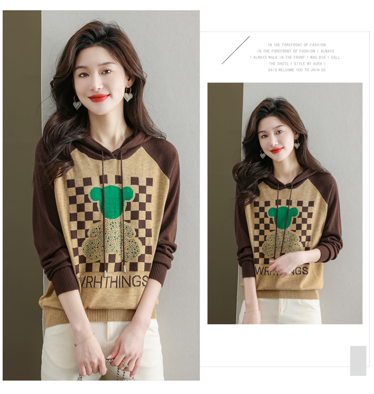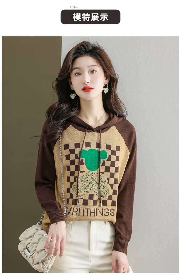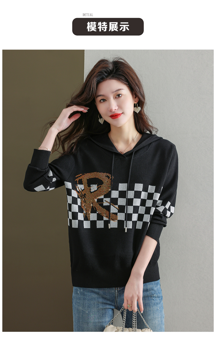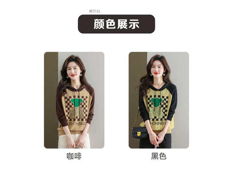 连帽冰丝针织衫卫衣宽松外穿洋气带帽时尚打底衫CC-465