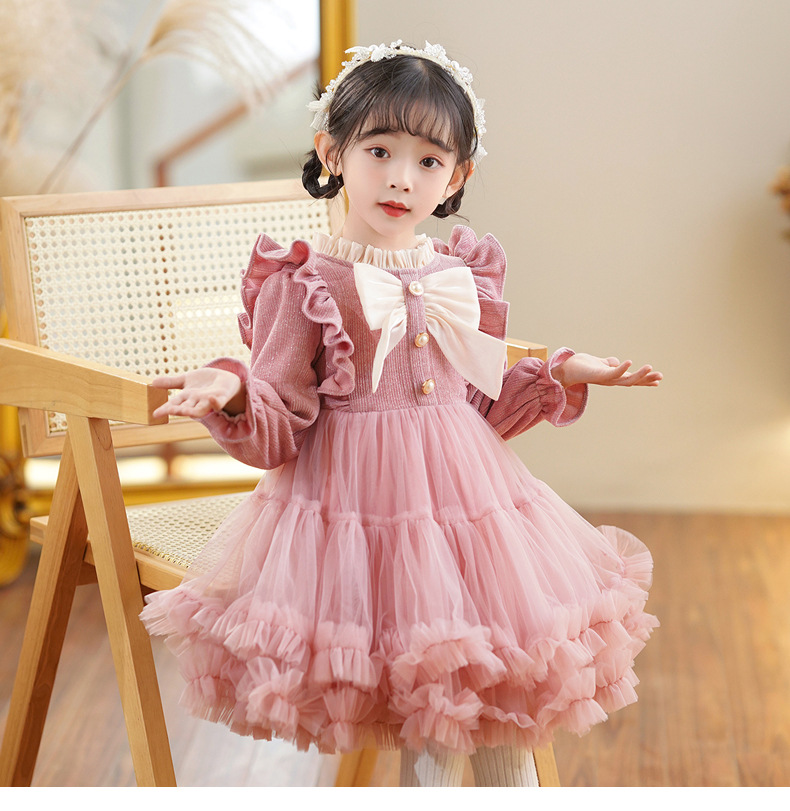 女童优雅拜年网纱蓬蓬裙,气质演出服主持人DKAF-A078