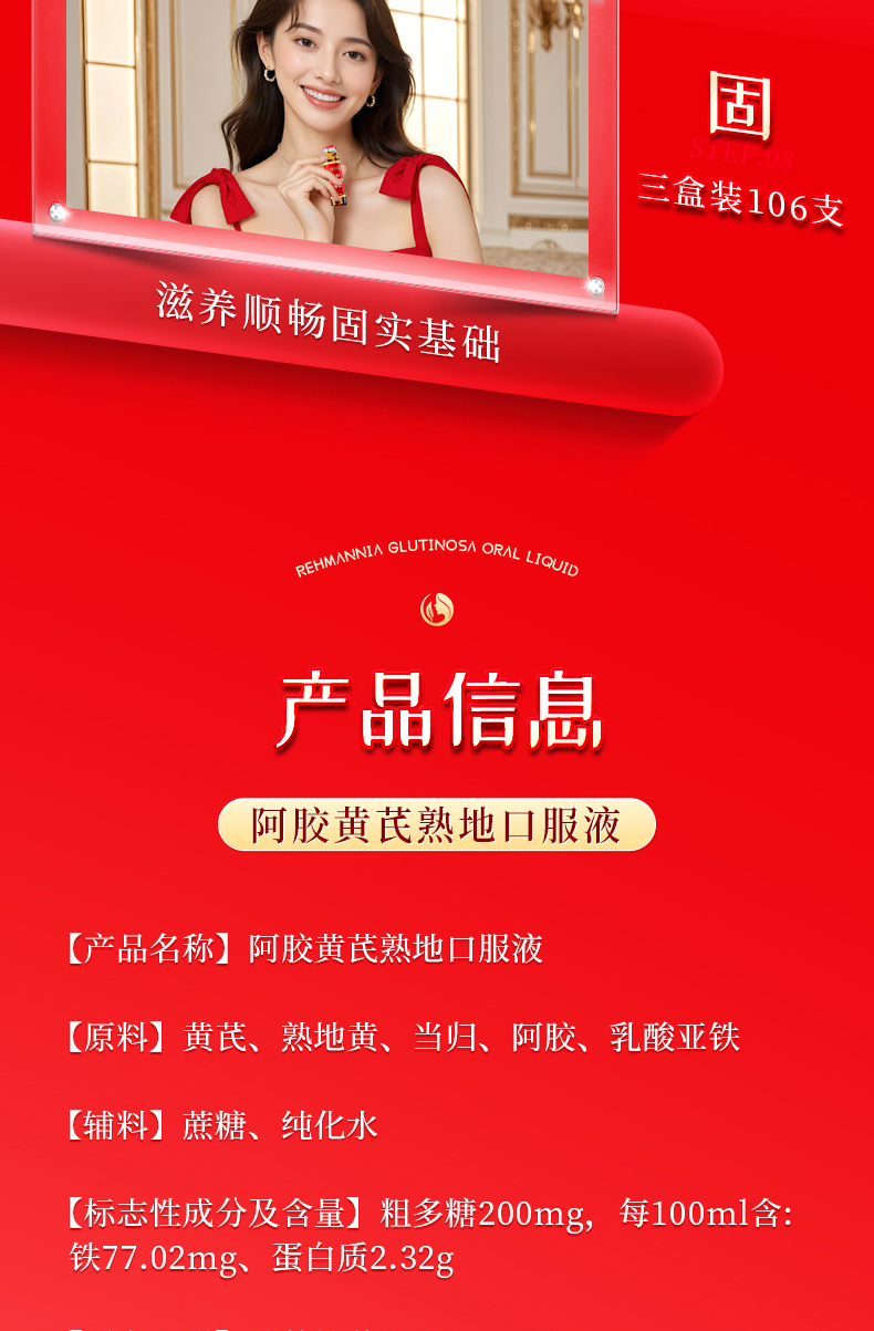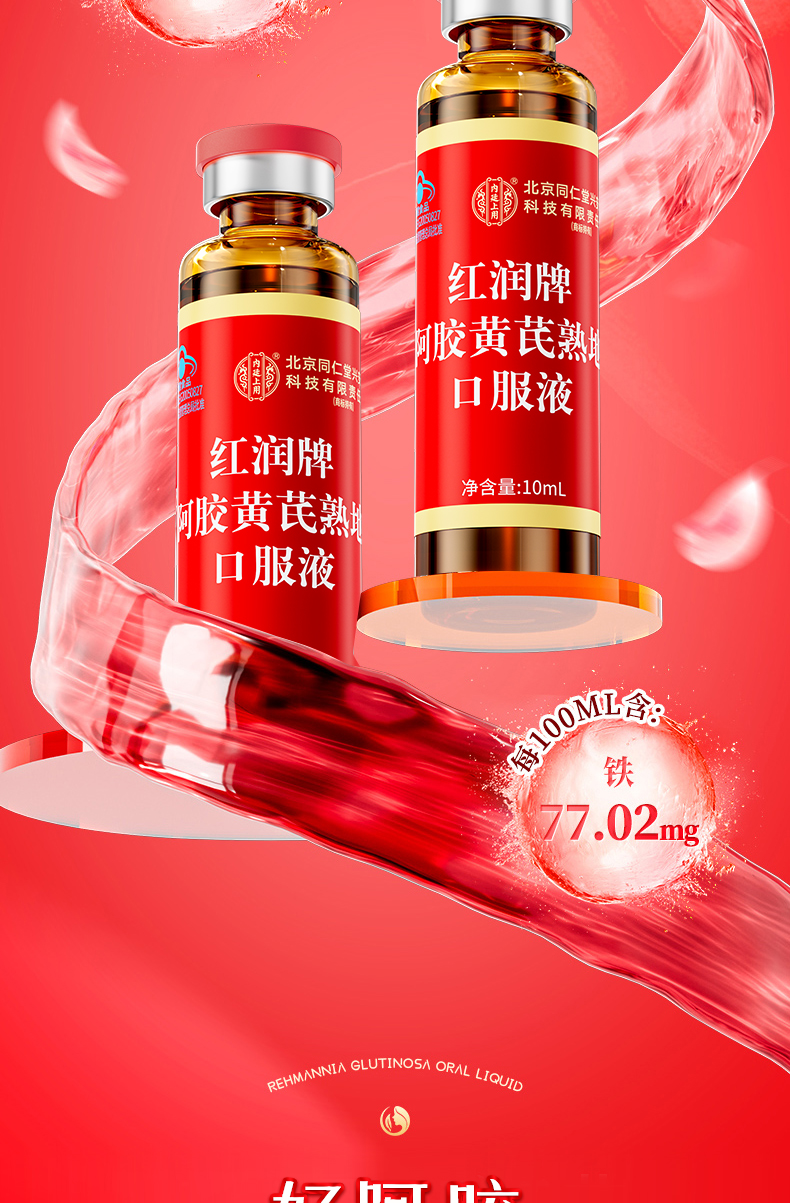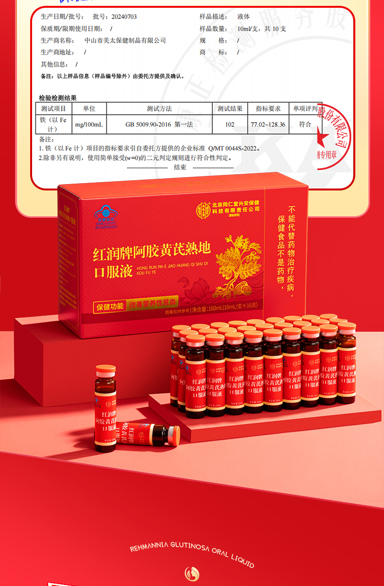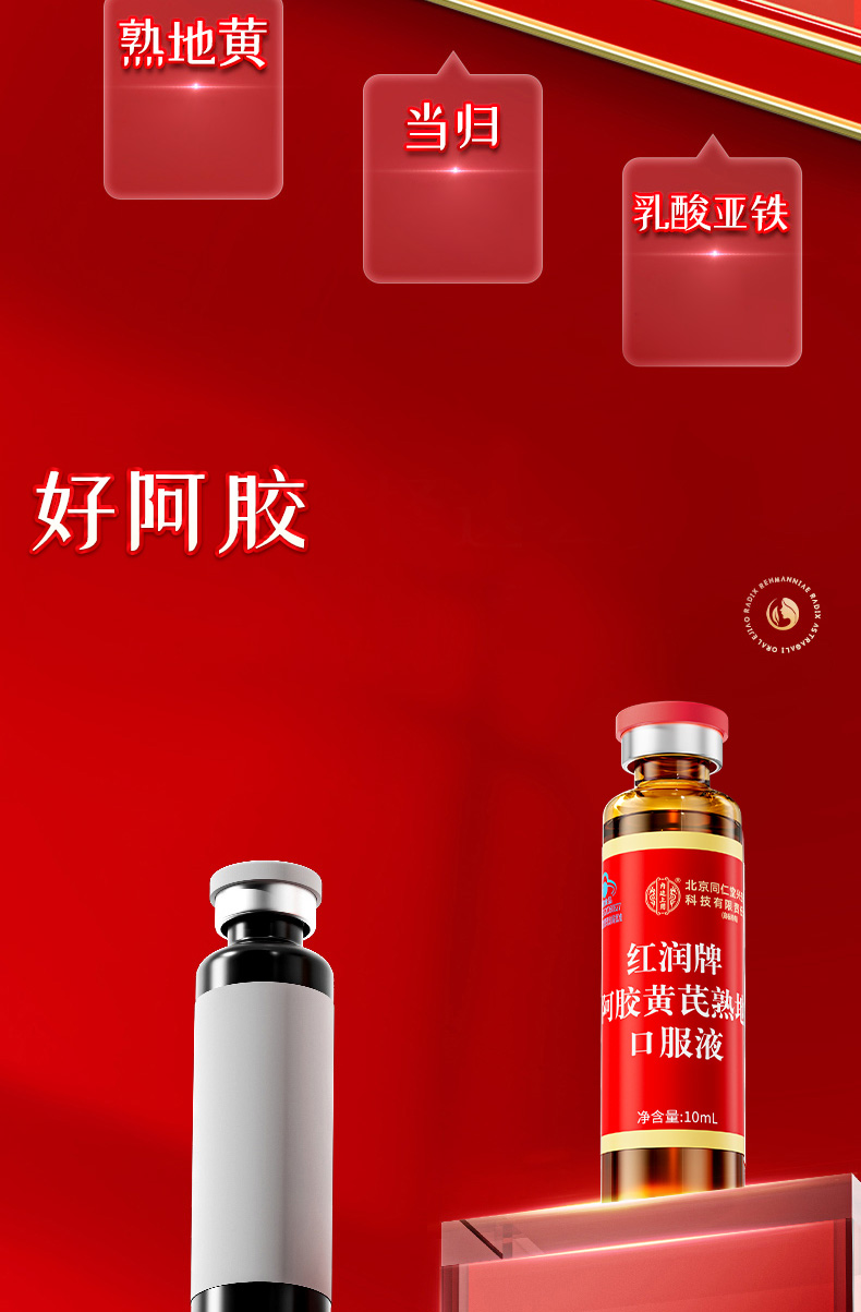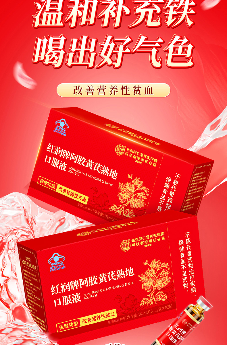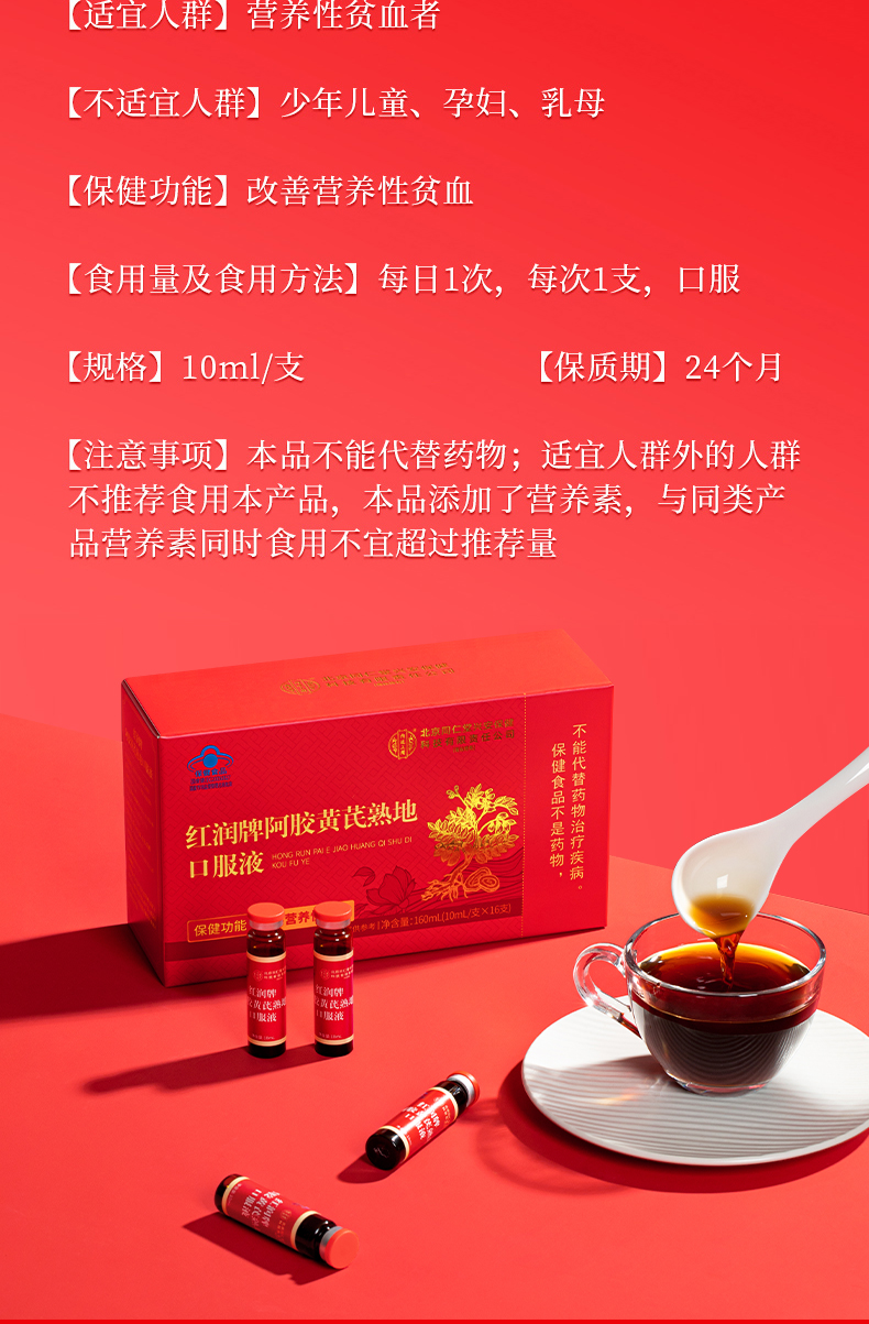 北京同仁堂 内廷上用 红润牌阿胶黄芪熟地口服液 160ml(10ml*16支)