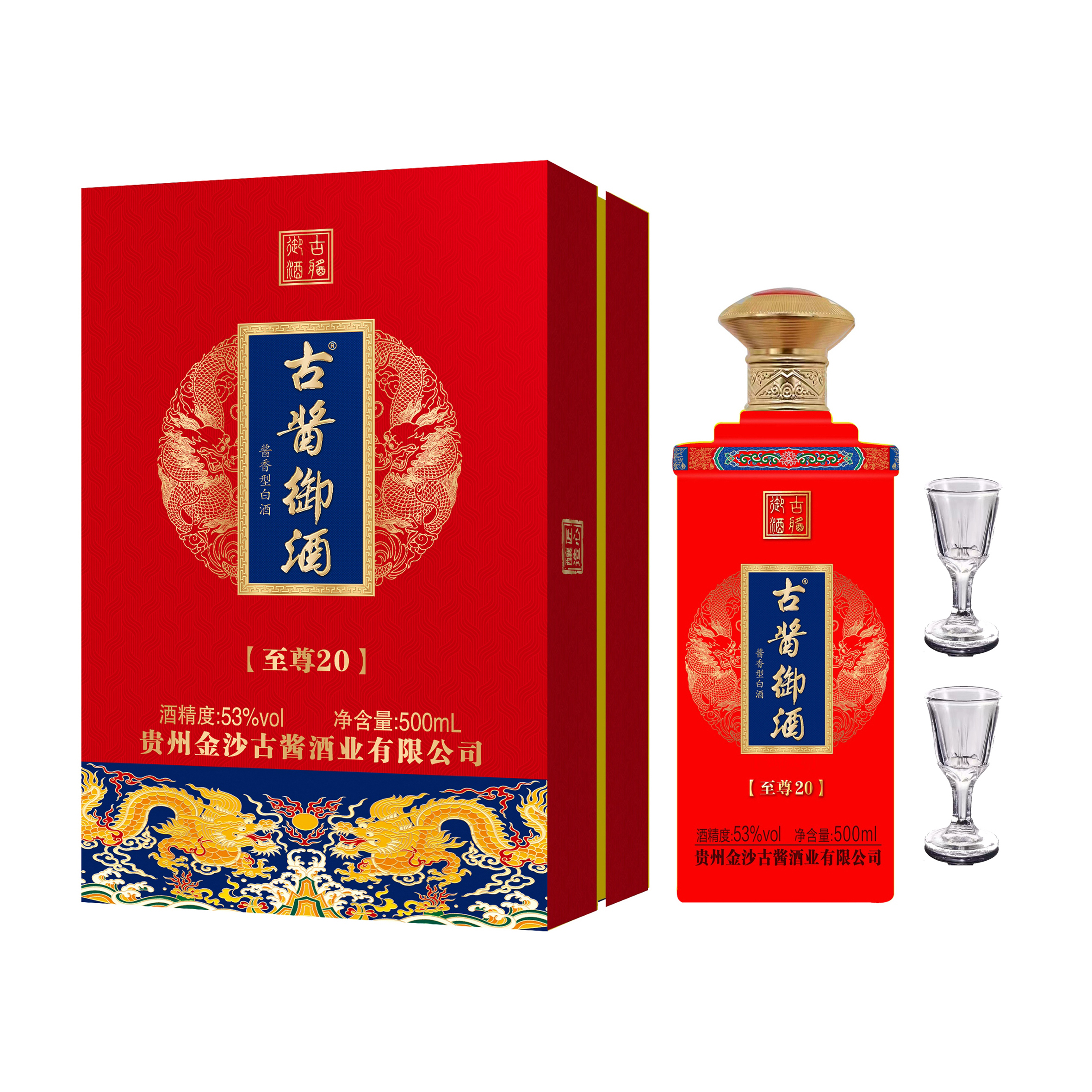 贵州金沙古酱御酒 至尊20 红礼盒带酒杯 53度 500ml*2盒