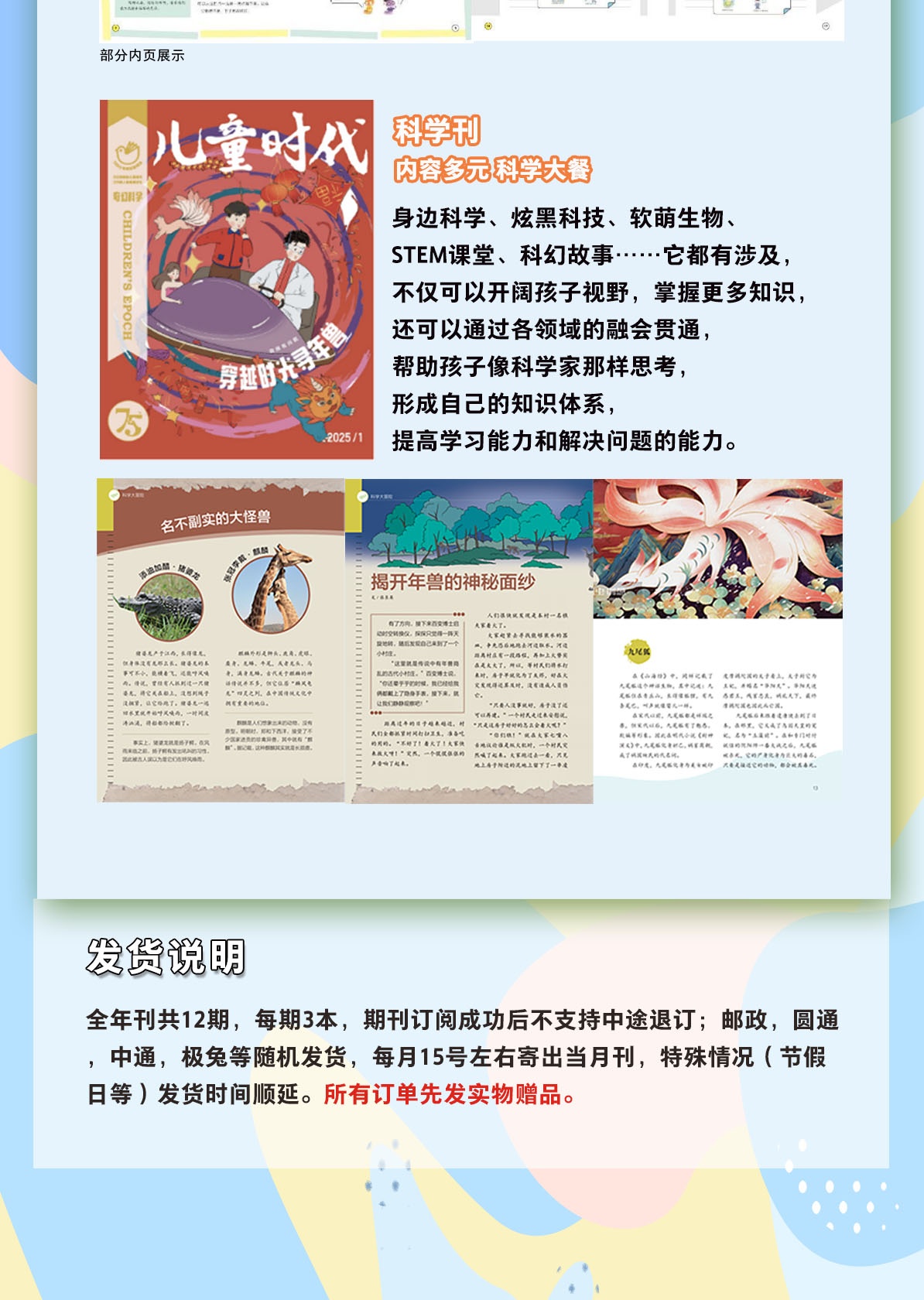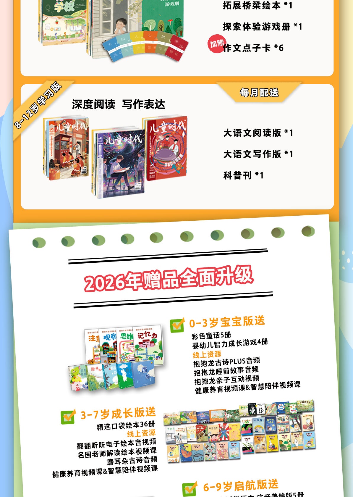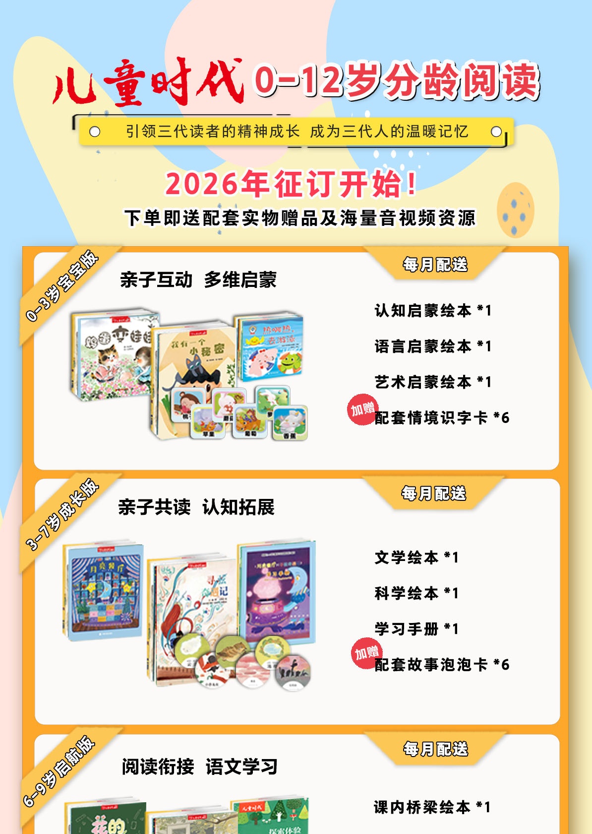 2026年征订|《儿童时代》0-3岁、3-7岁、6-9岁、8-12岁 共12期+赠品 宋庆龄创办的国民级刊物! 承包0-12岁全年阅读,赠品超值