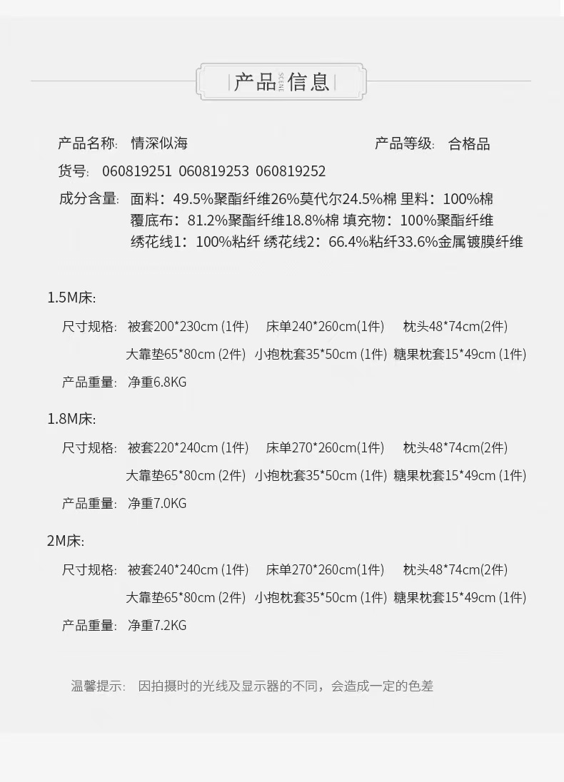 3、规格、尺码等;