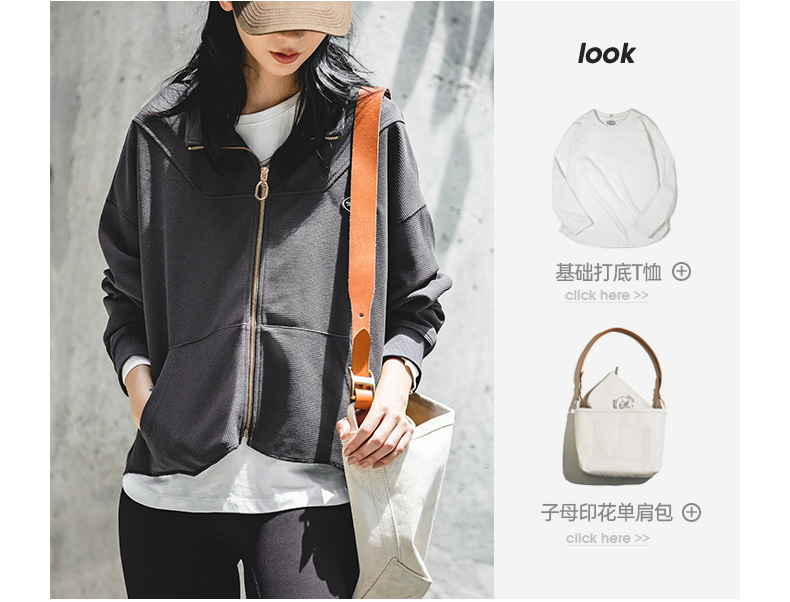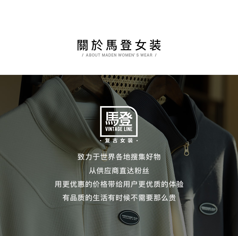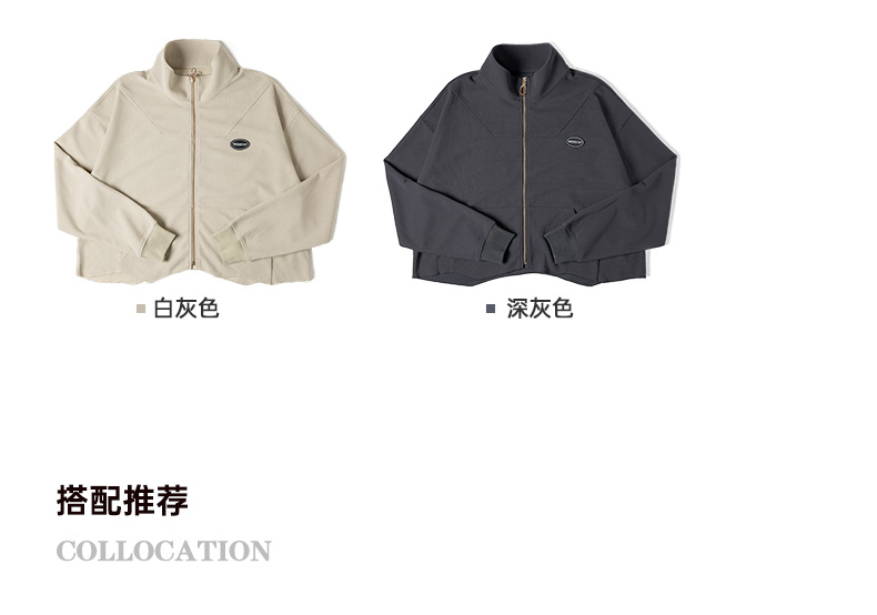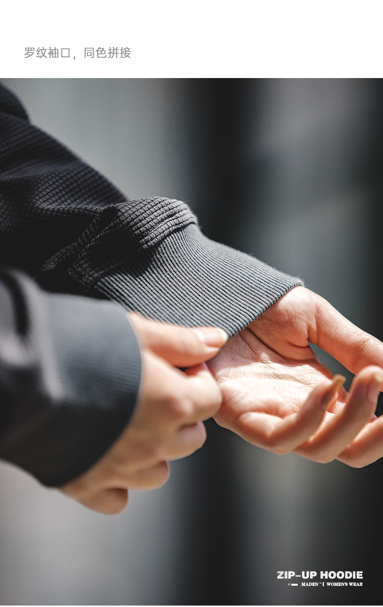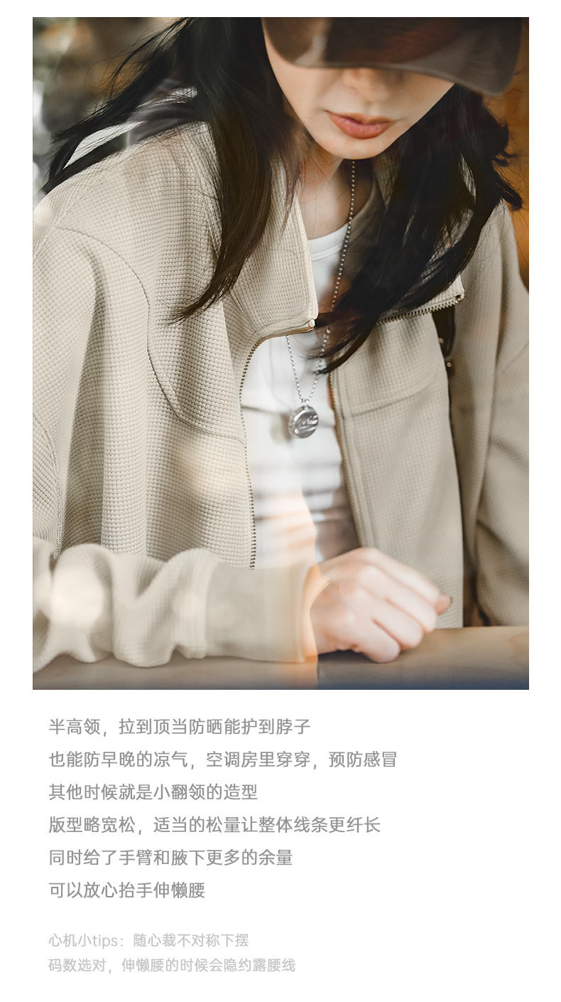 马登女装盐系氛围感半高立领拉链卫衣华夫格罗纹袖口休闲外套早秋