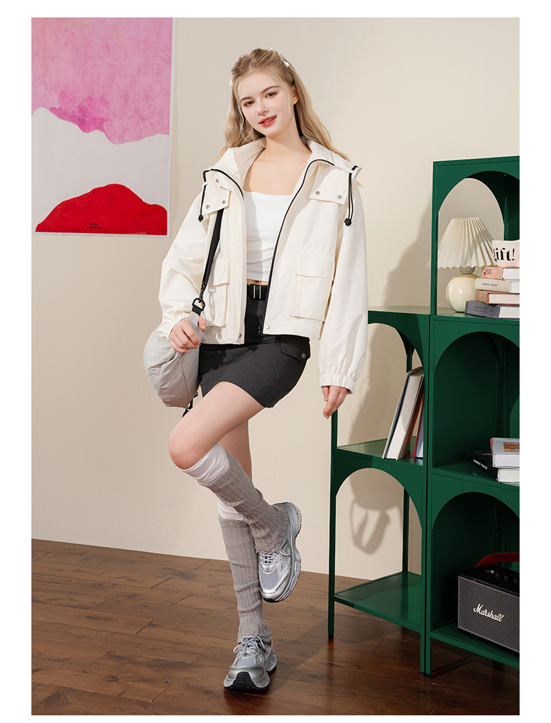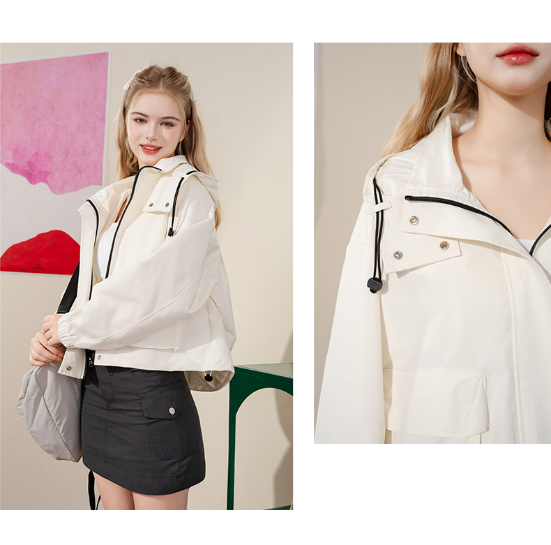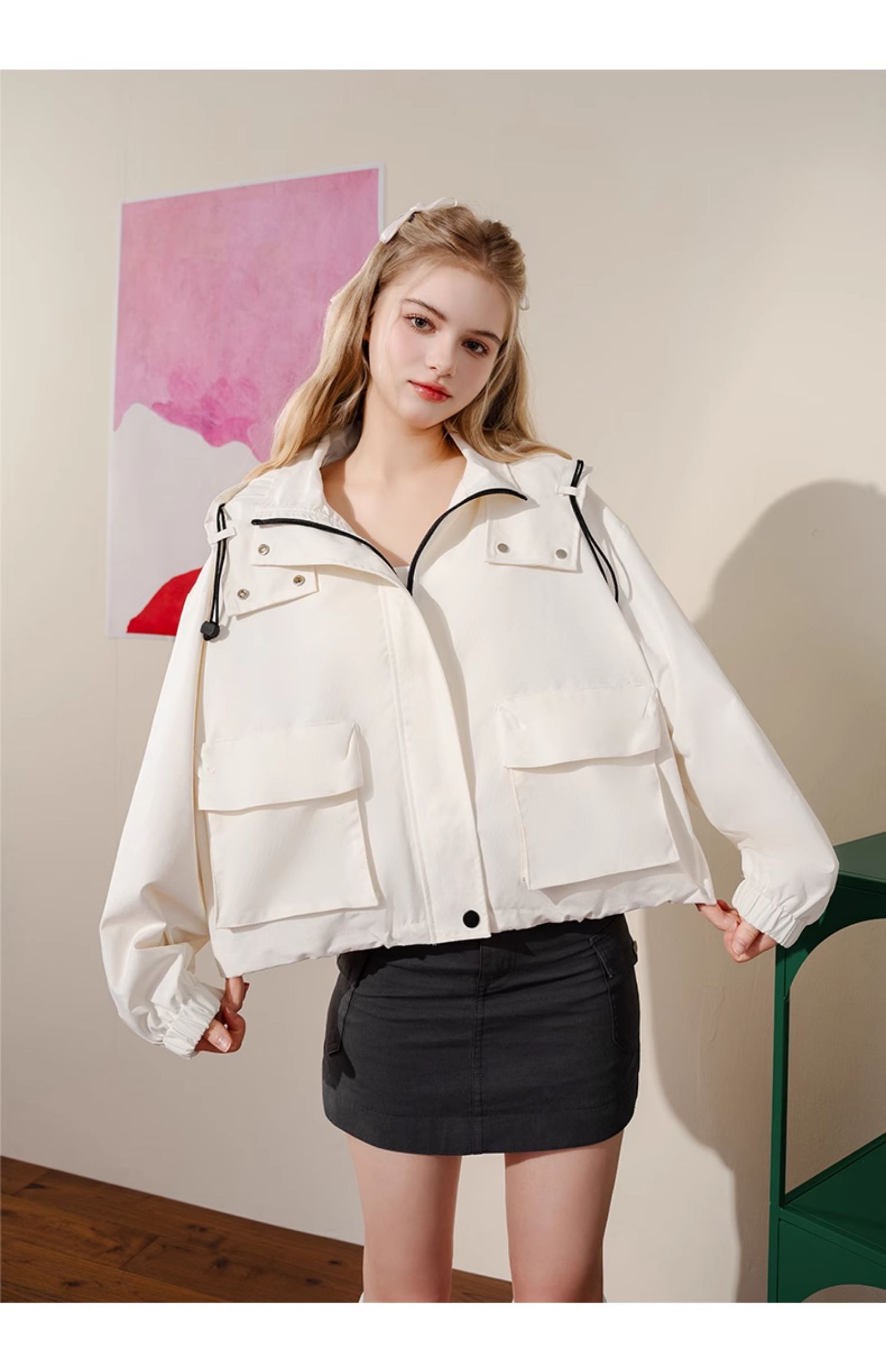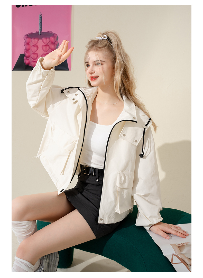 女装连帽封闭拉链大口袋短款外套-7007J4232201