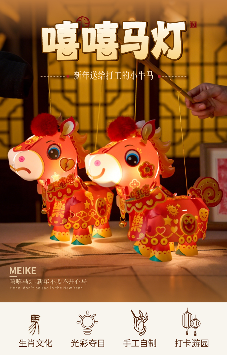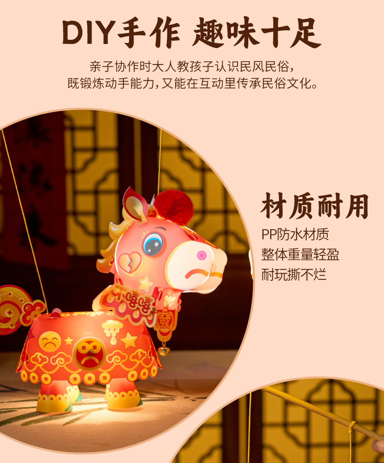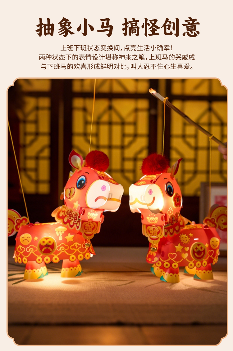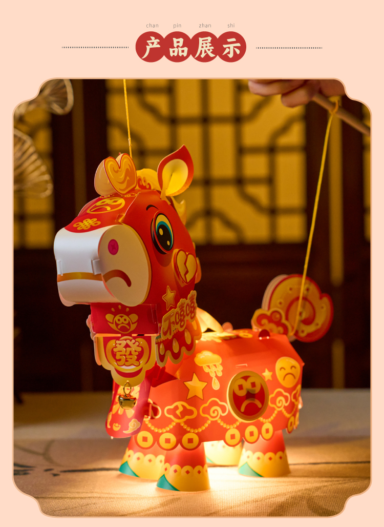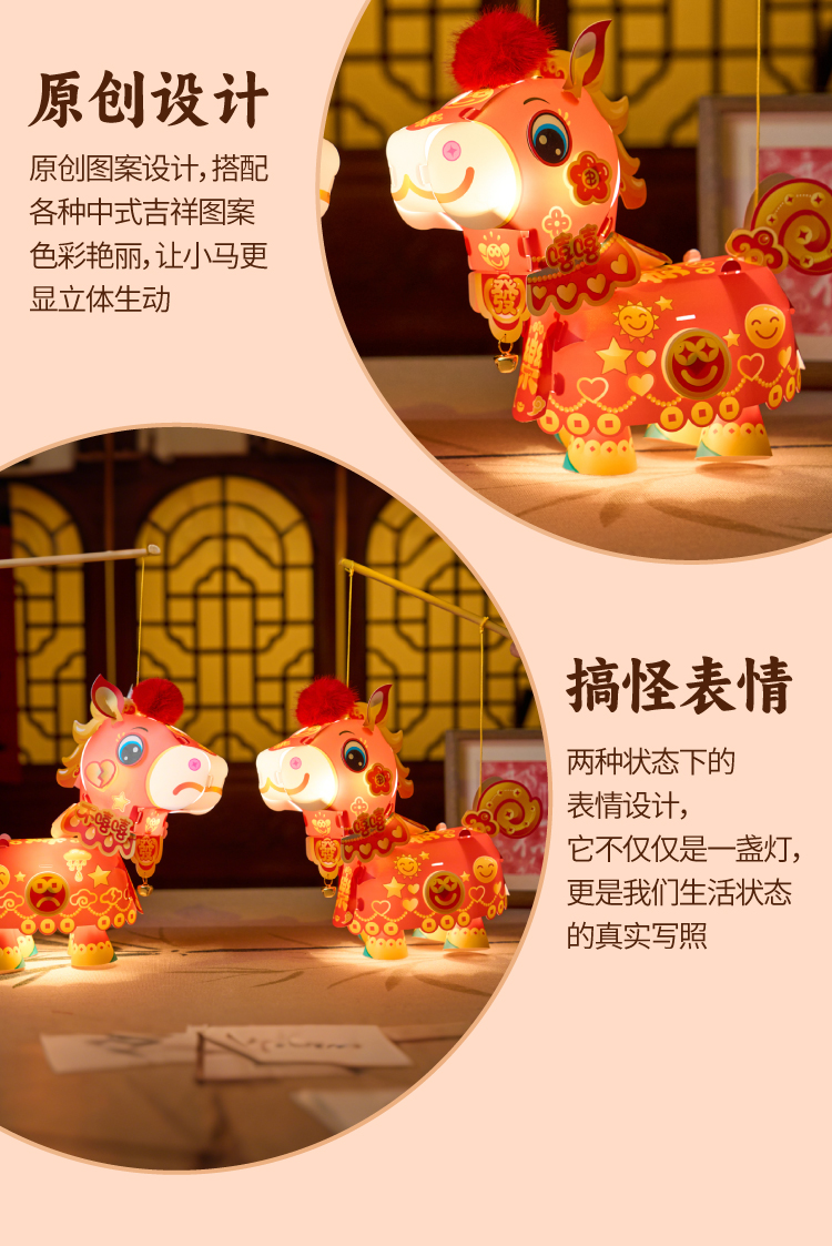 新年春节元宵马年嘻嘻马灯手工diy儿童灯笼材料手提小马花灯醒狮