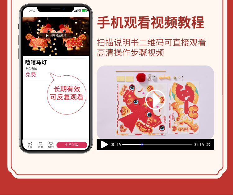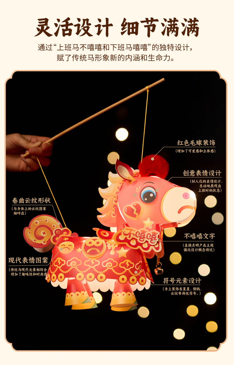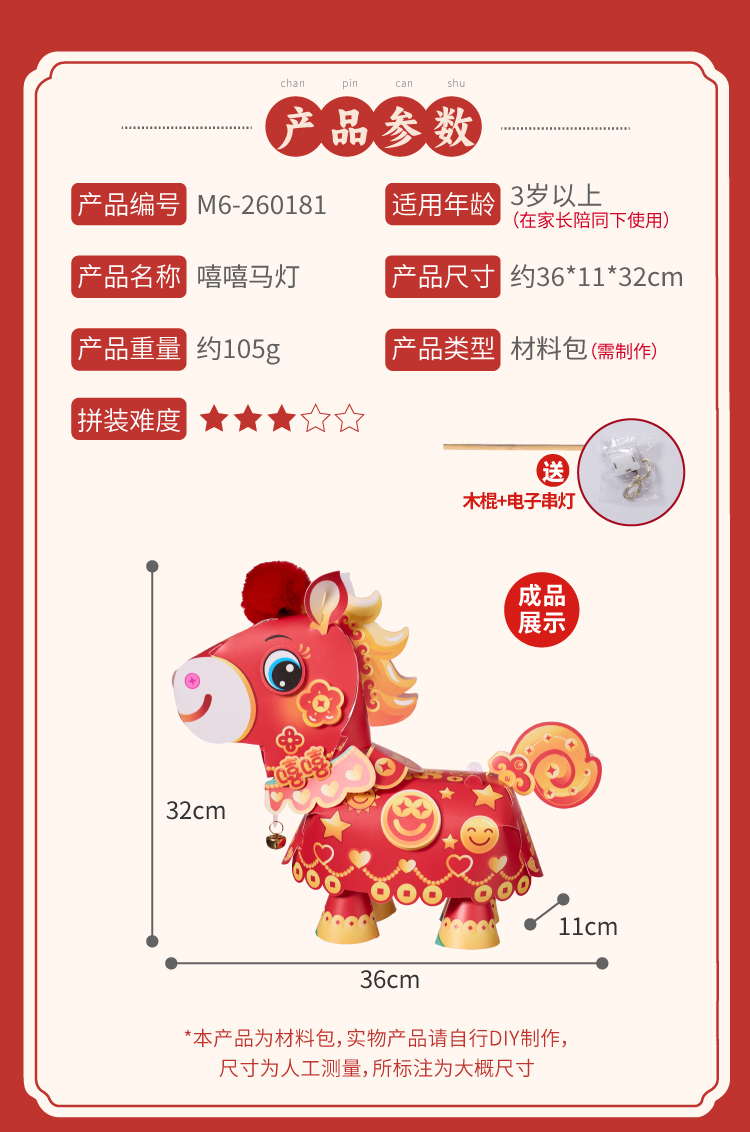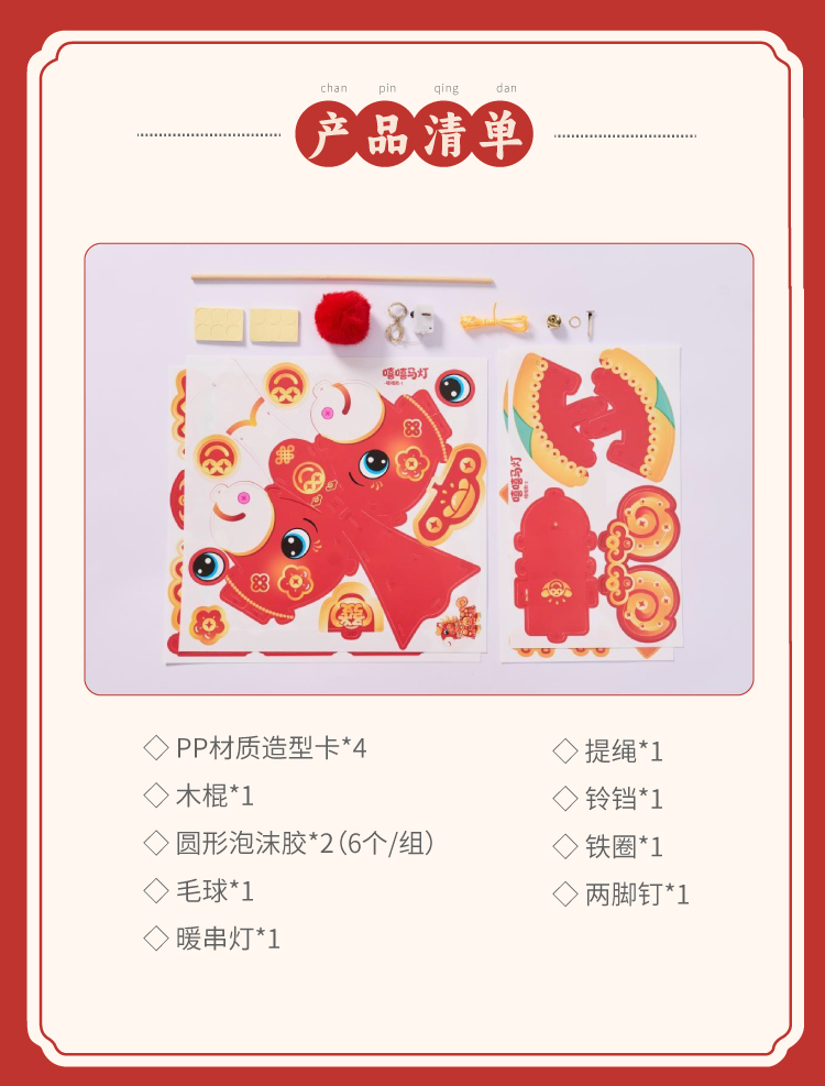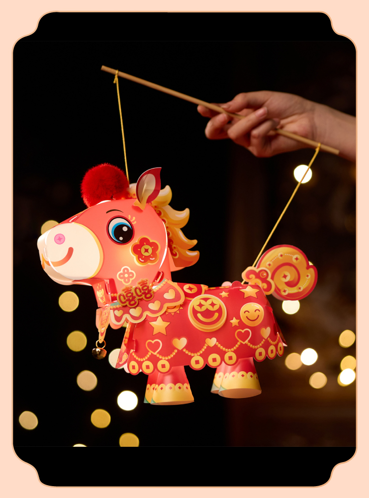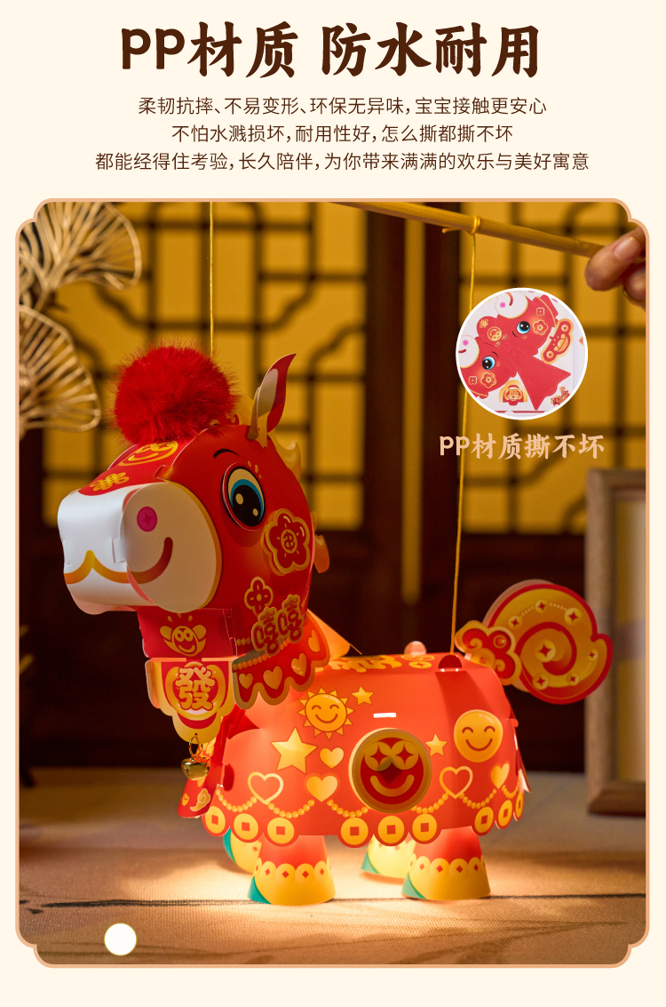 新年春节元宵马年嘻嘻马灯手工diy儿童灯笼材料手提小马花灯醒狮