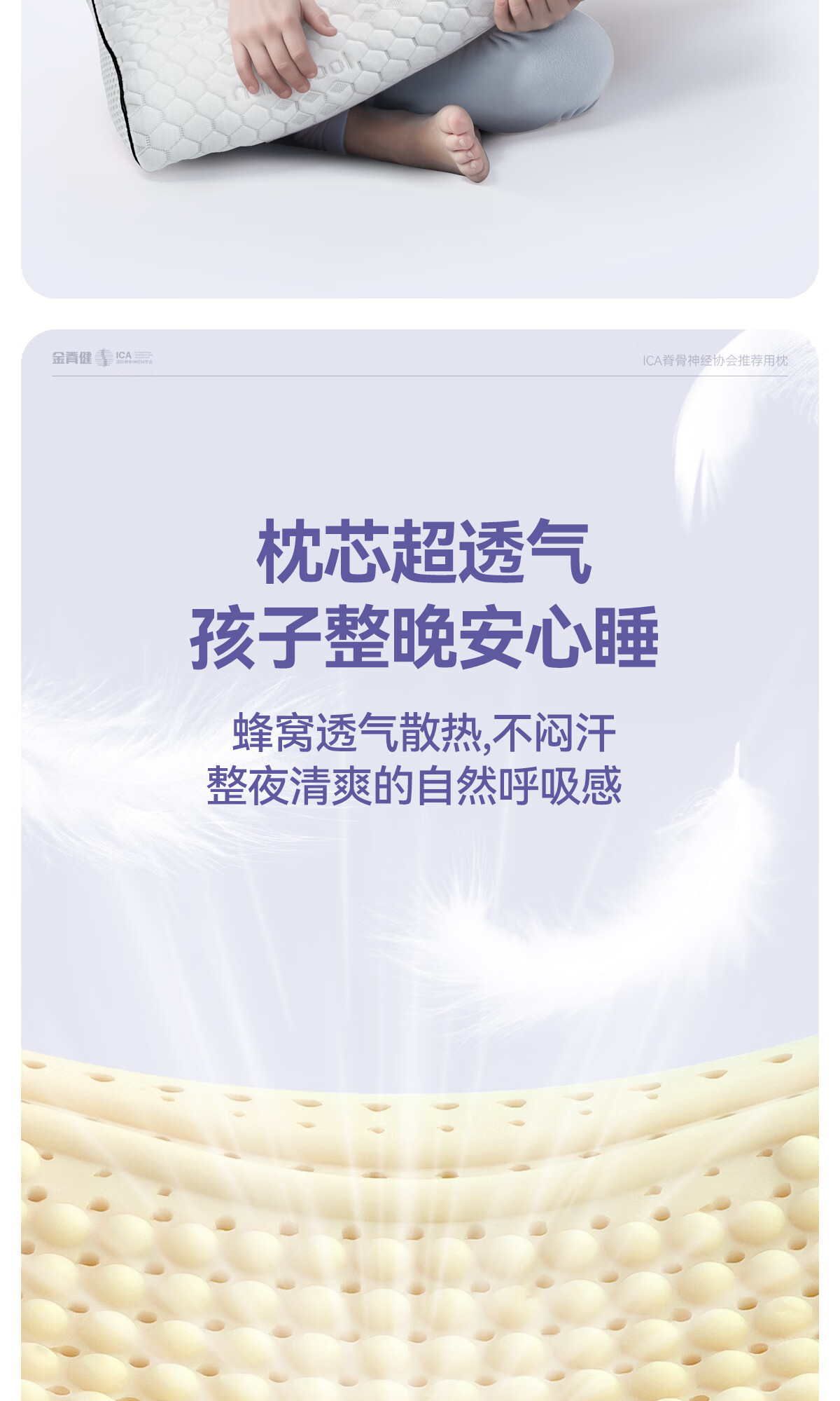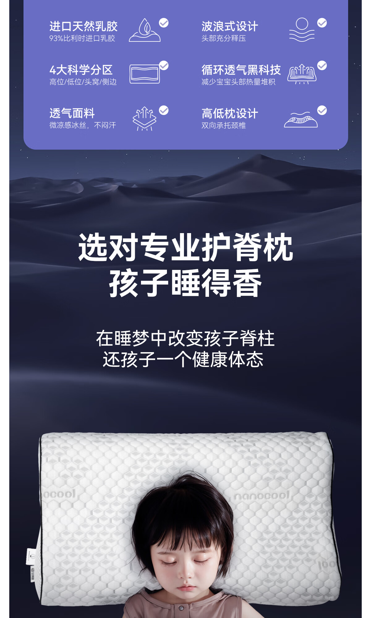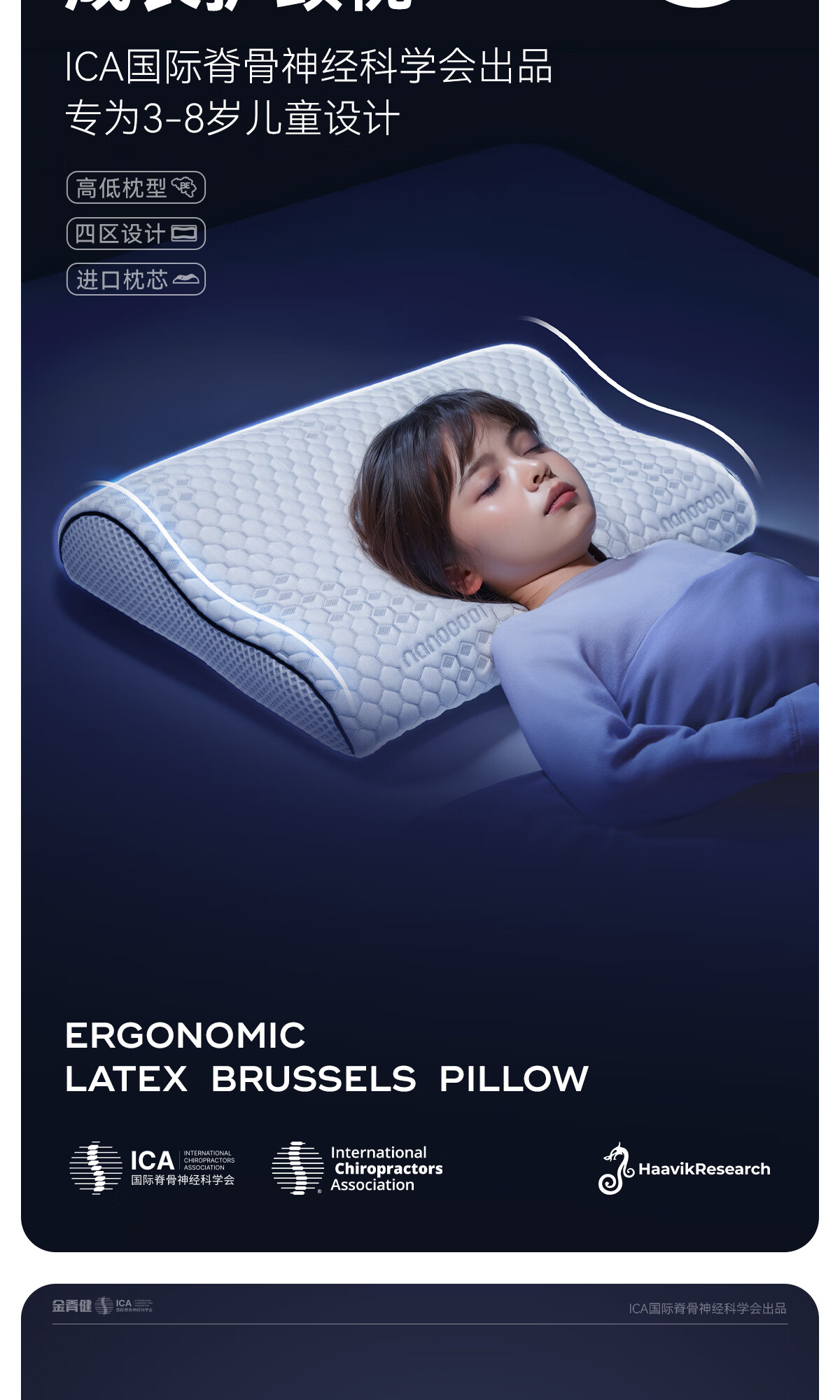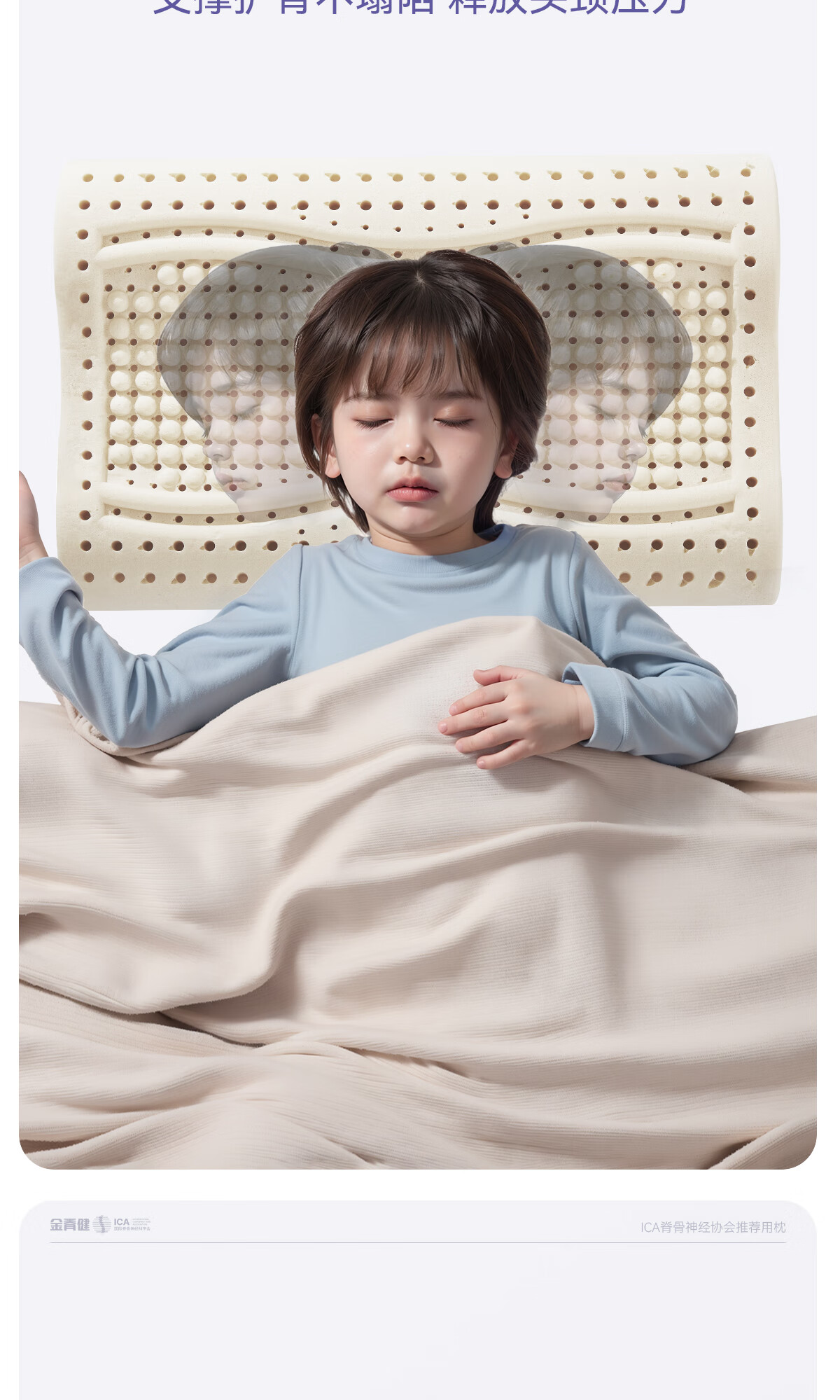 儿童成长护颈【儿童枕】专业护脊枕,适合3-8岁,比利时进口乳胶,亲肤透气不闷汗,枕芯透气,整晚安睡,有颈椎支撑区域