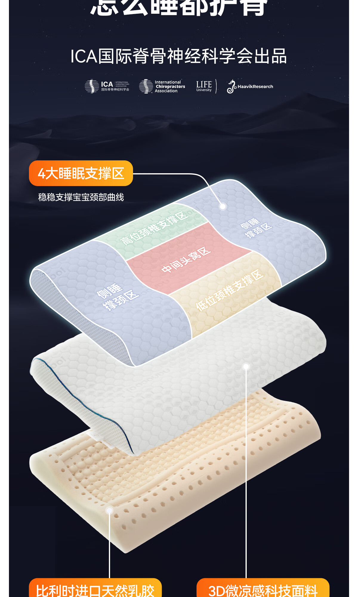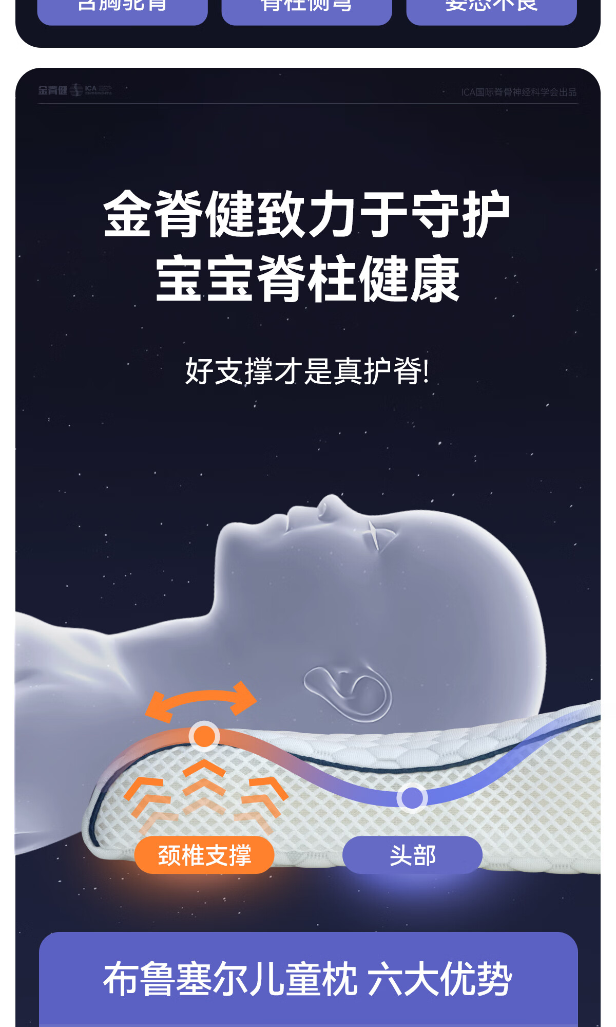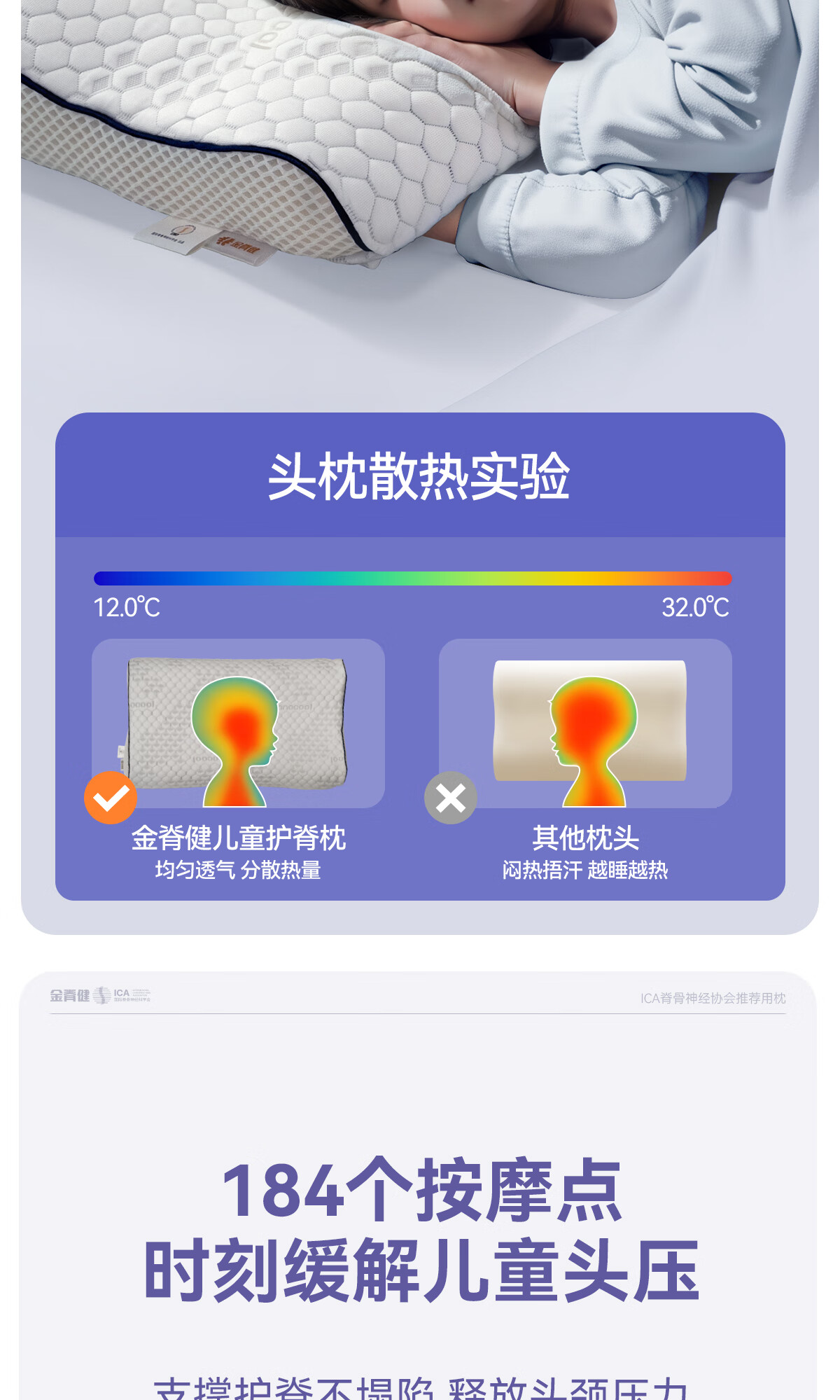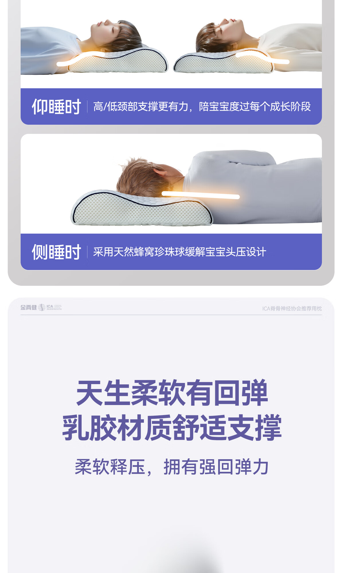 儿童成长护颈【儿童枕】专业护脊枕,适合3-8岁,比利时进口乳胶,亲肤透气不闷汗,枕芯透气,整晚安睡,有颈椎支撑区域