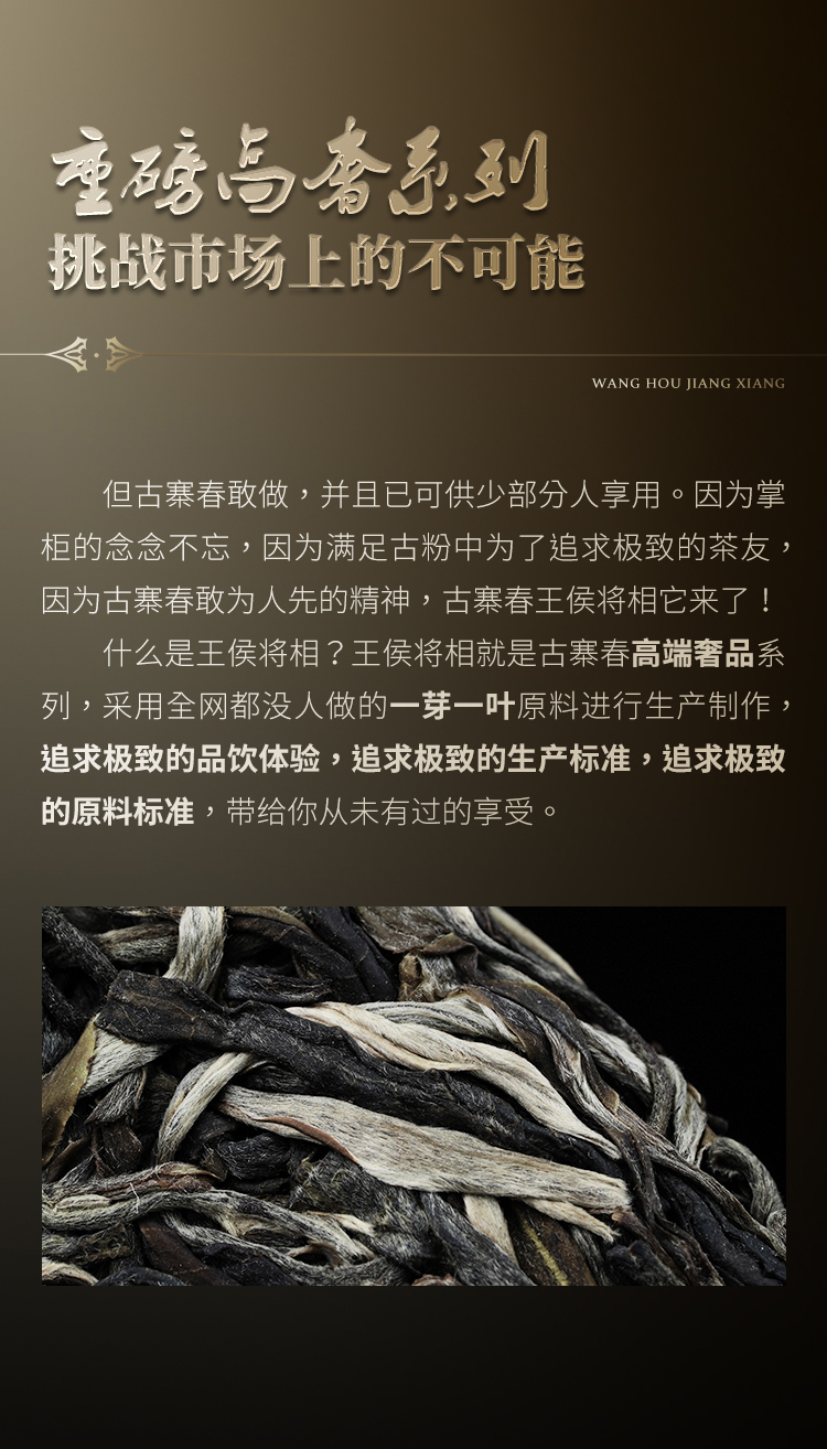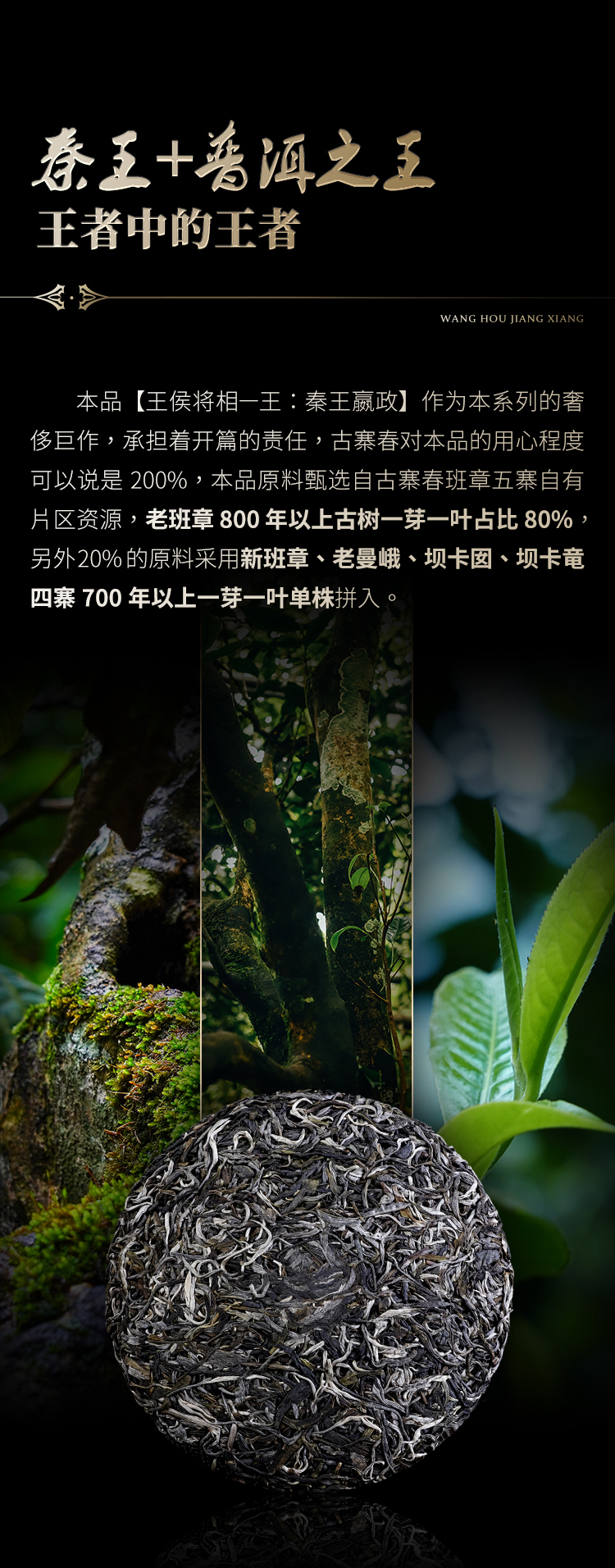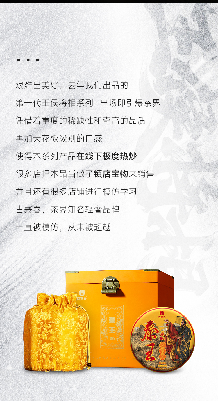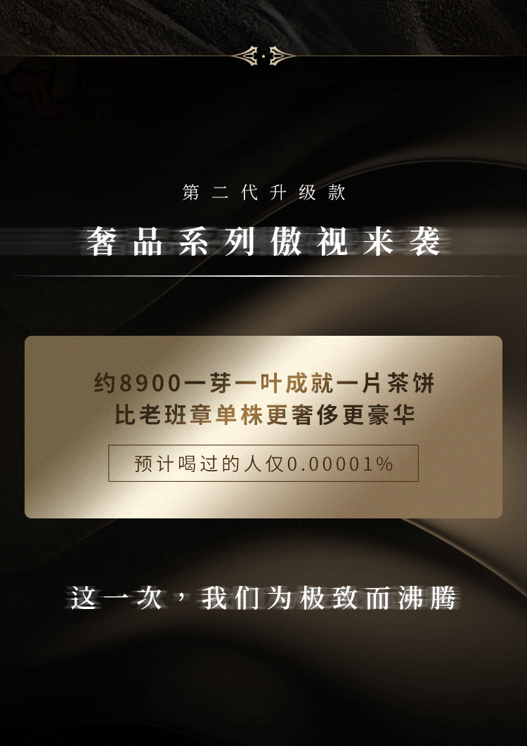 【王侯将相—秦王嬴政】【单饼装】第二代升级高奢来袭挑战市面上的不可能,约8900一芽一叶成就一片茶饼 比老班章单株更奢侈更高贵,只为追求JI致口感 357克/饼